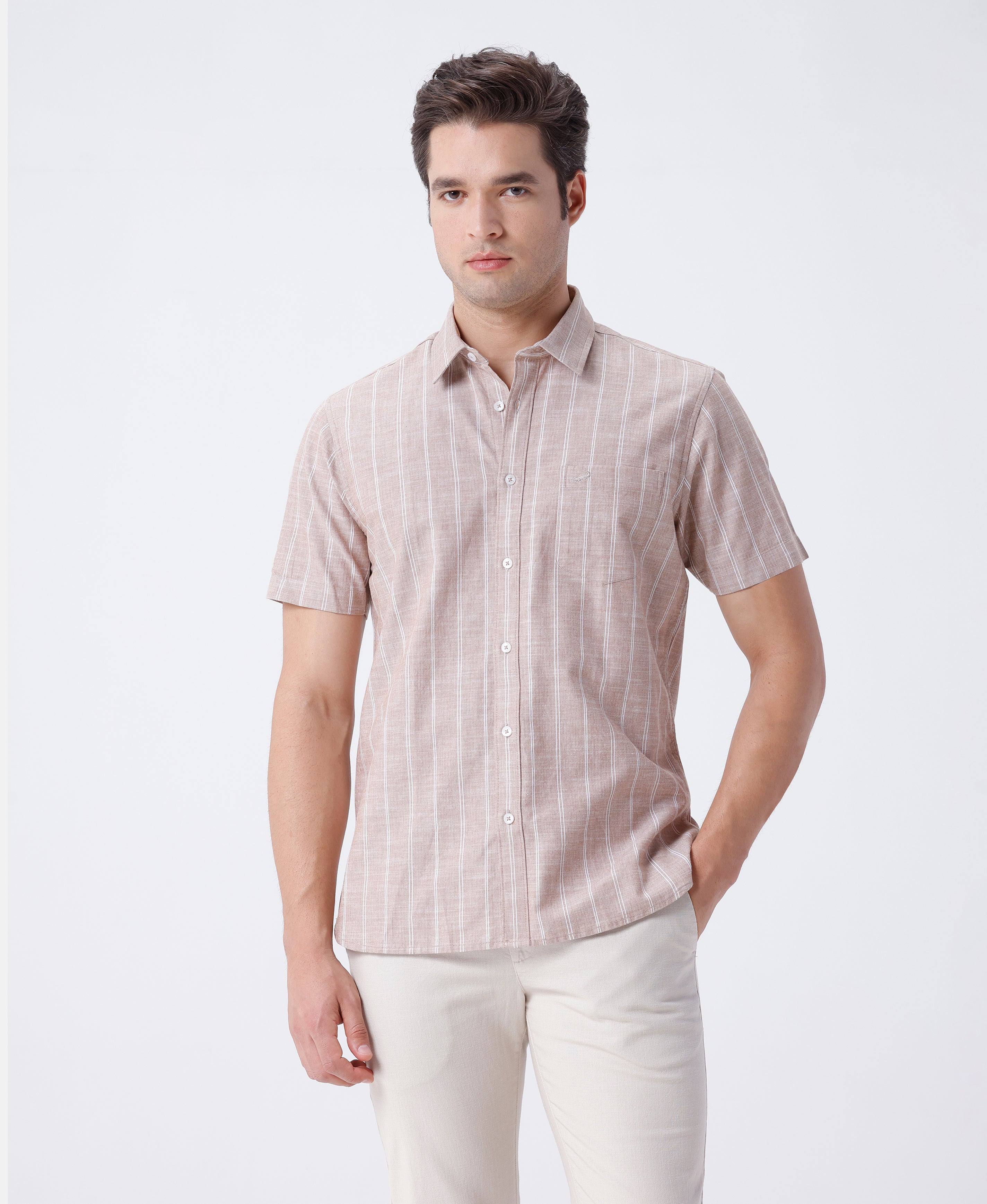 Melange Shirt Solid Beige