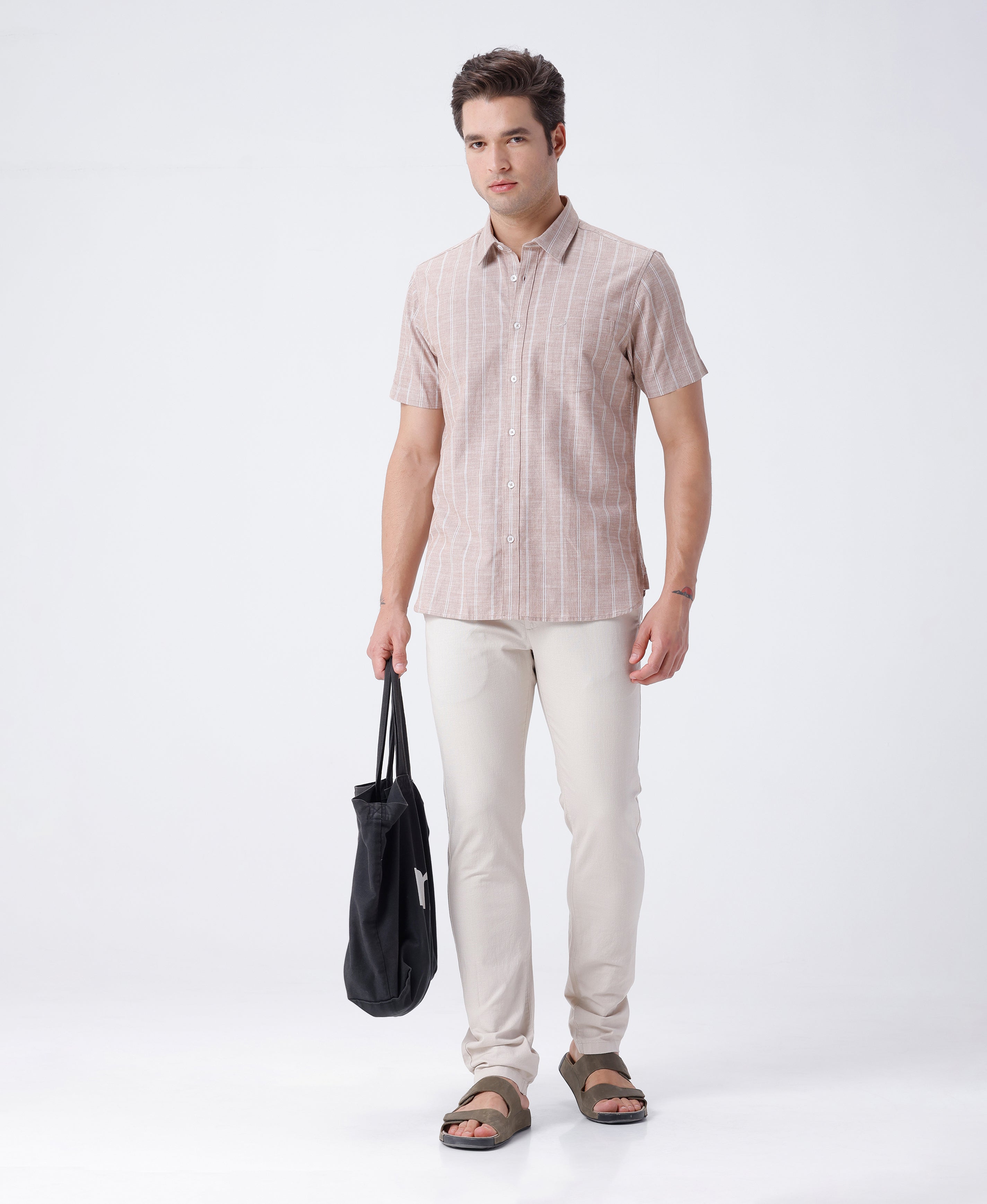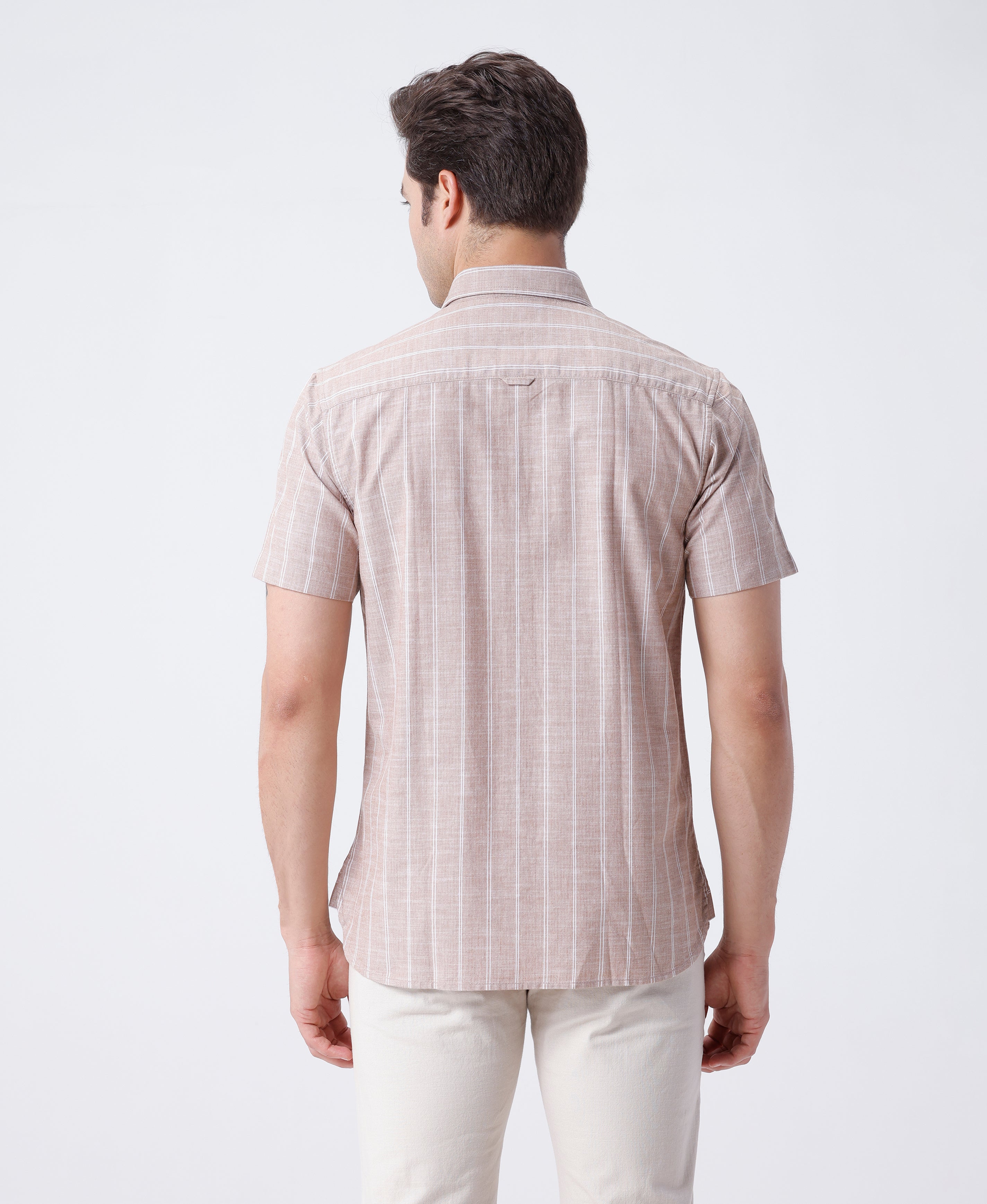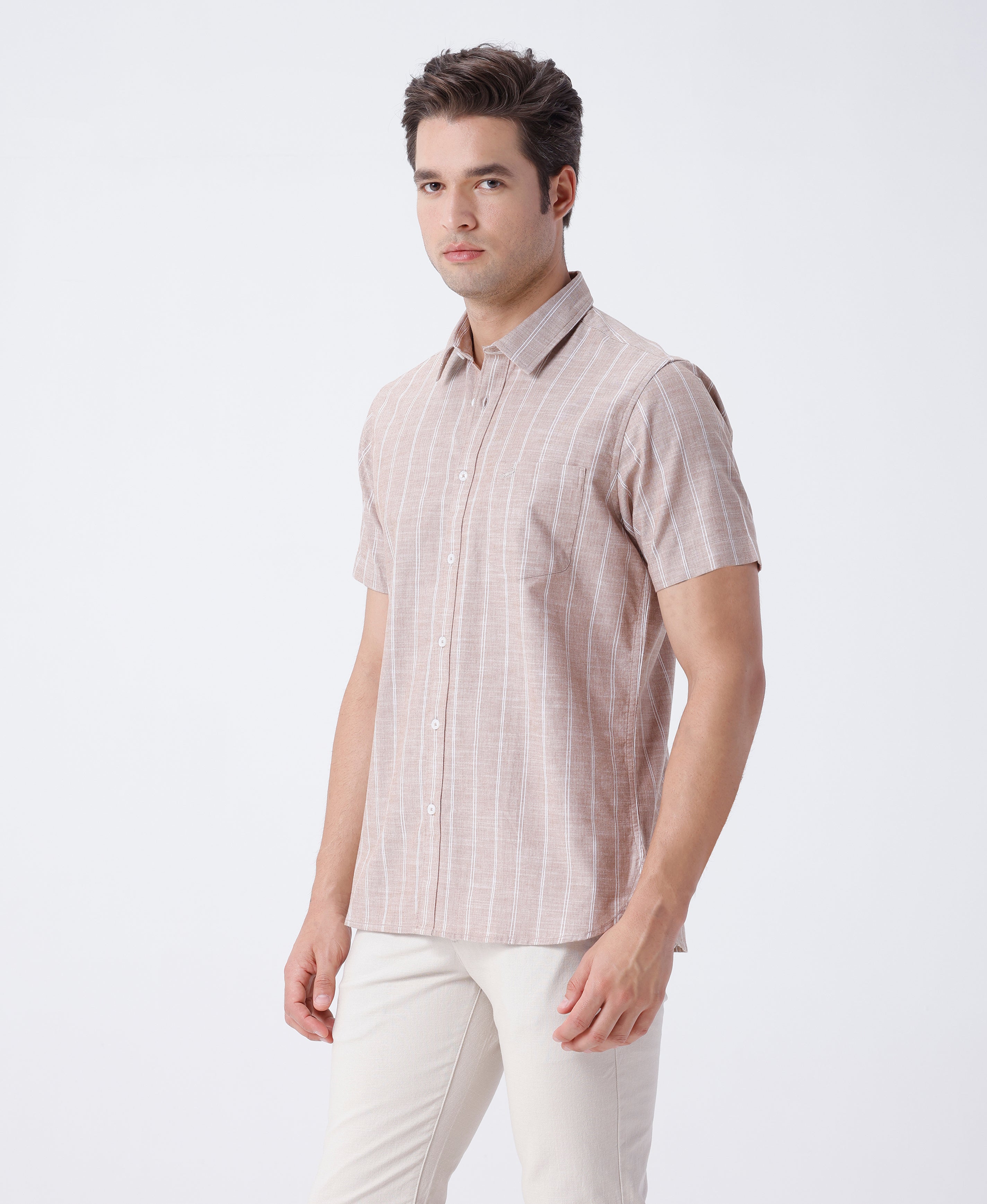 Melange Herringbone Stripe Shirt Light Brown