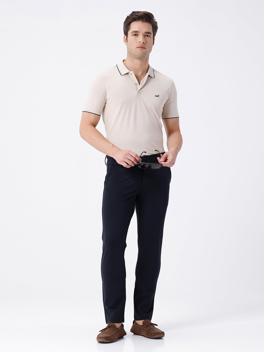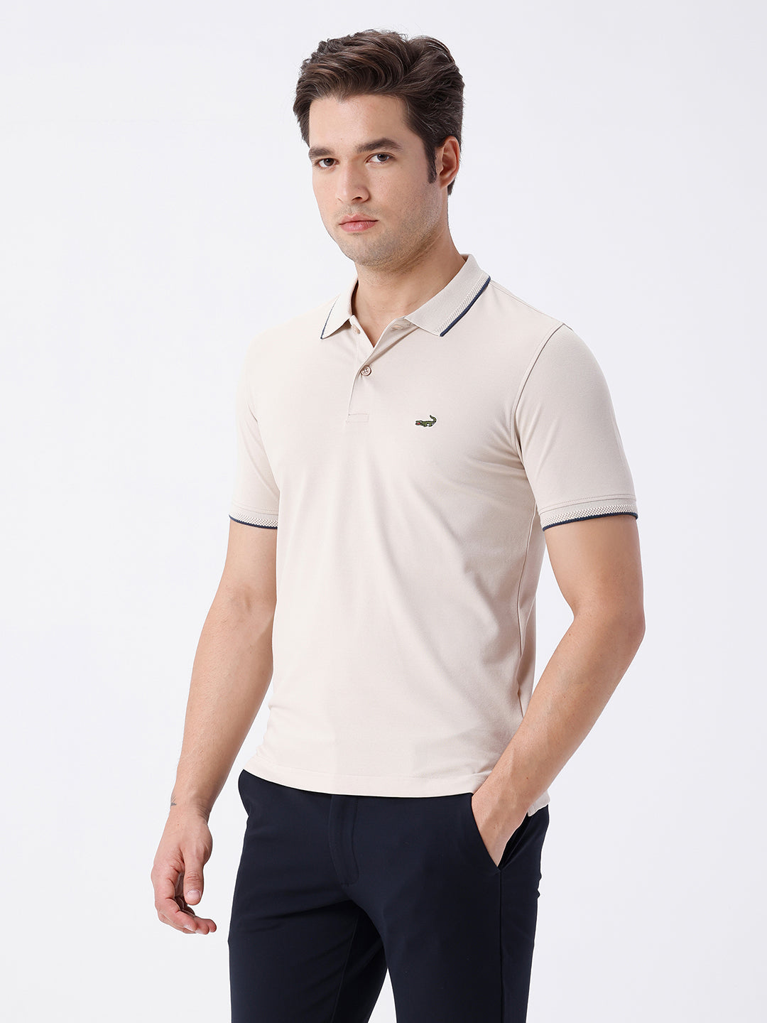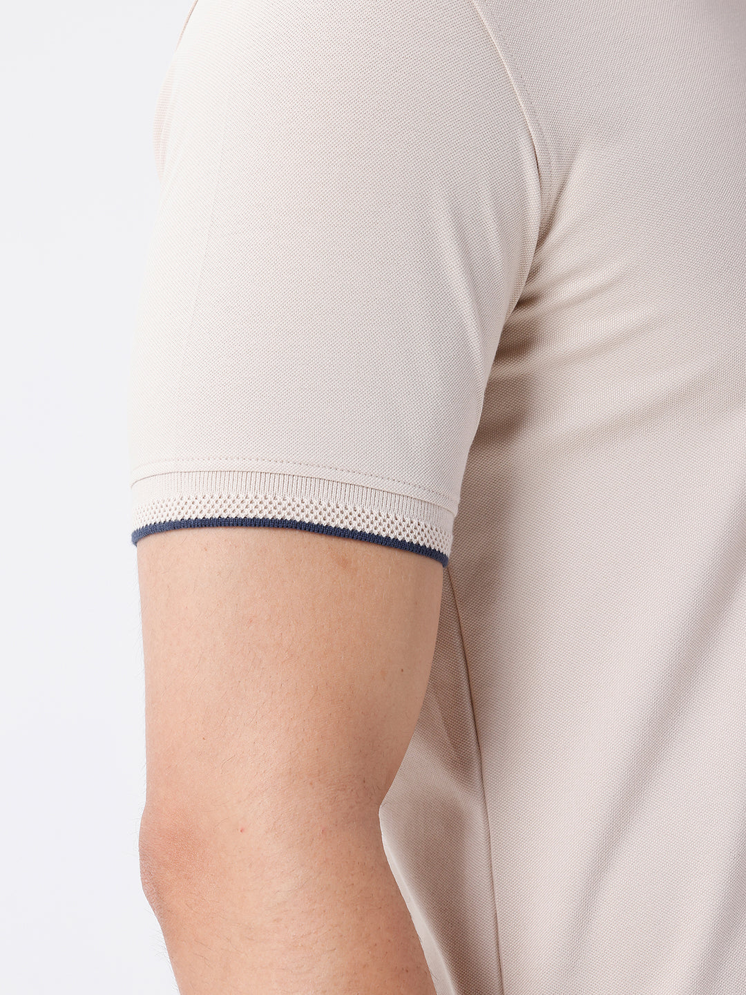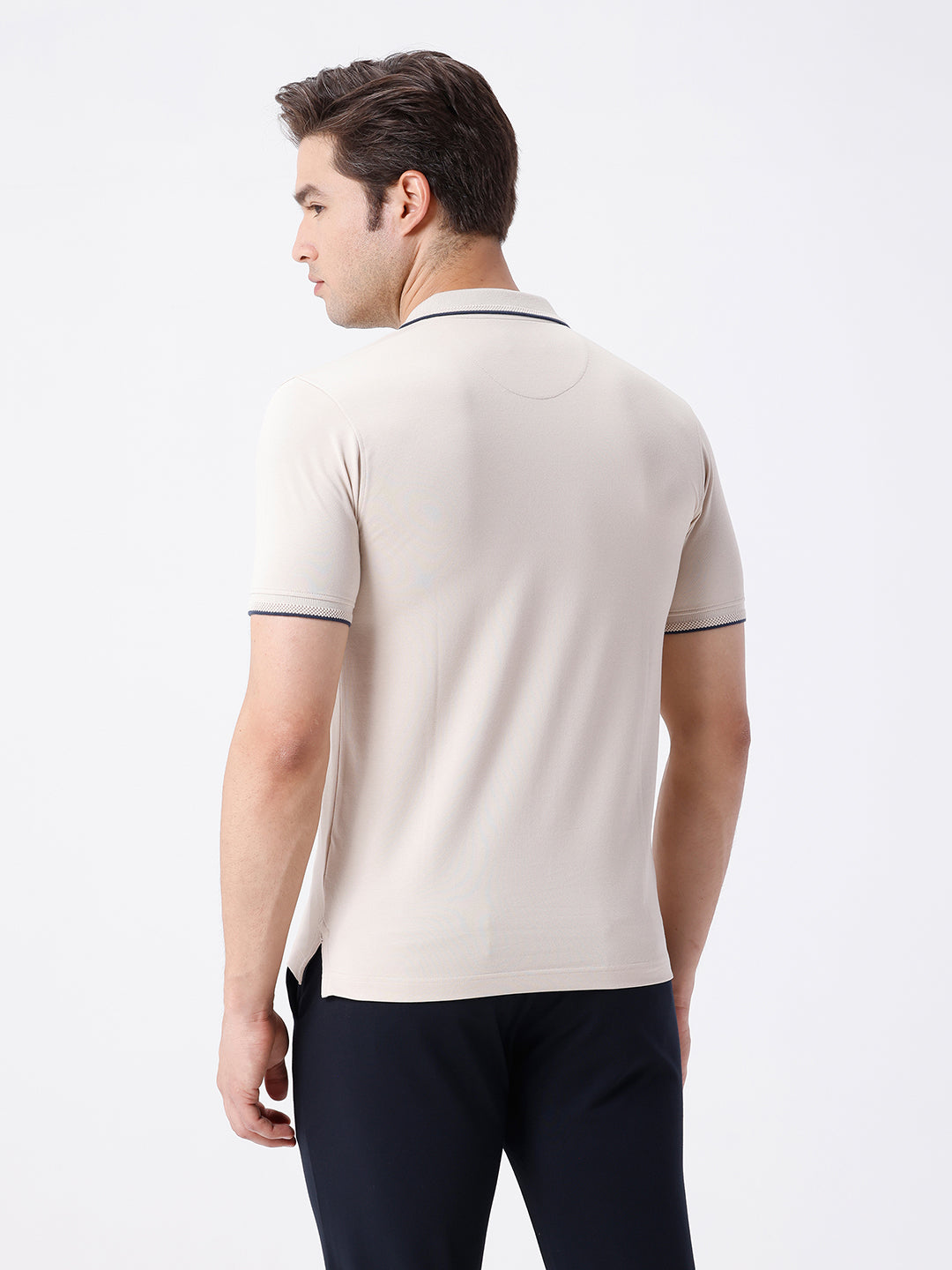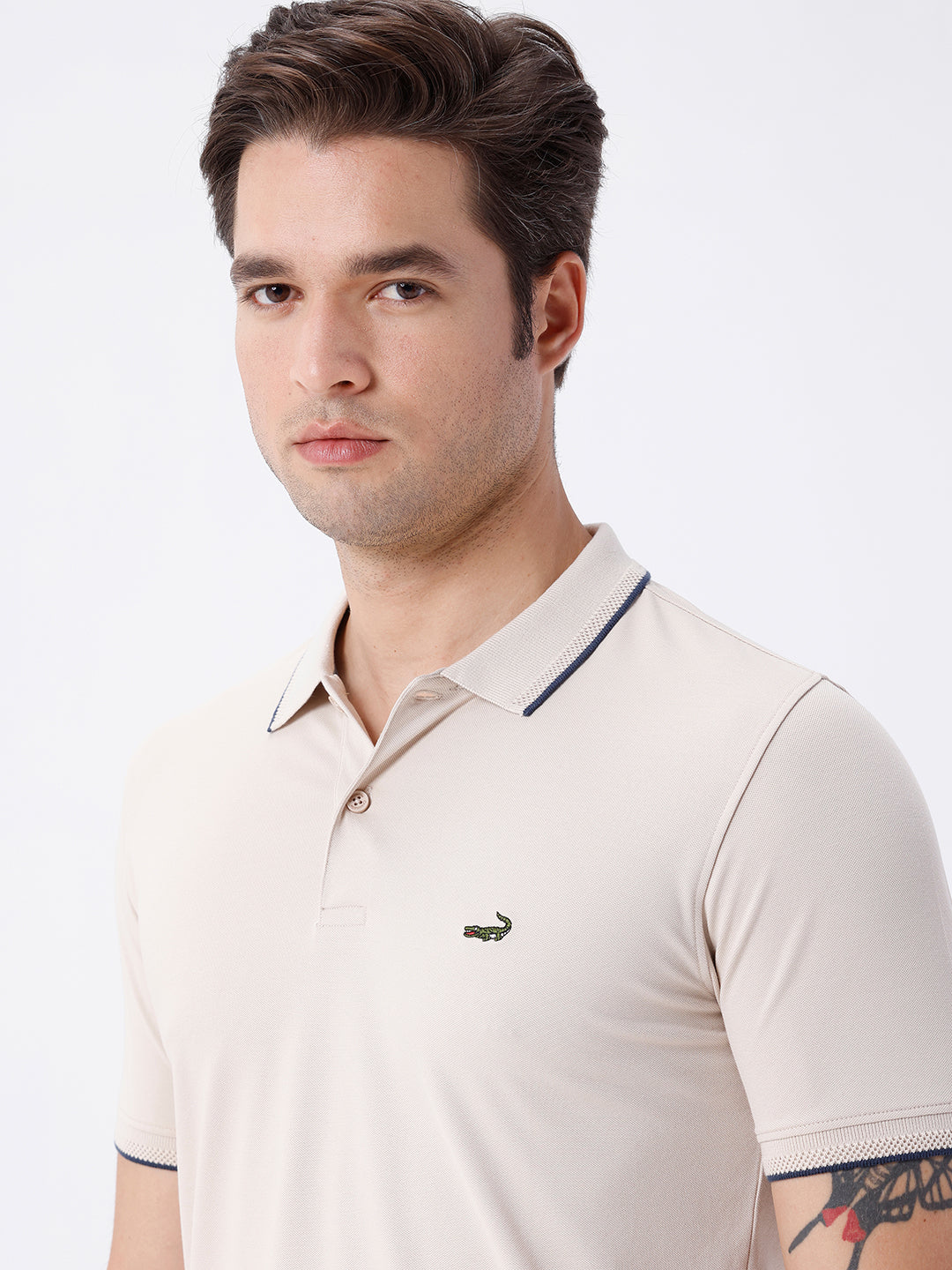 Oat Milk Beige Solid Polo T-Shirt with Pocket