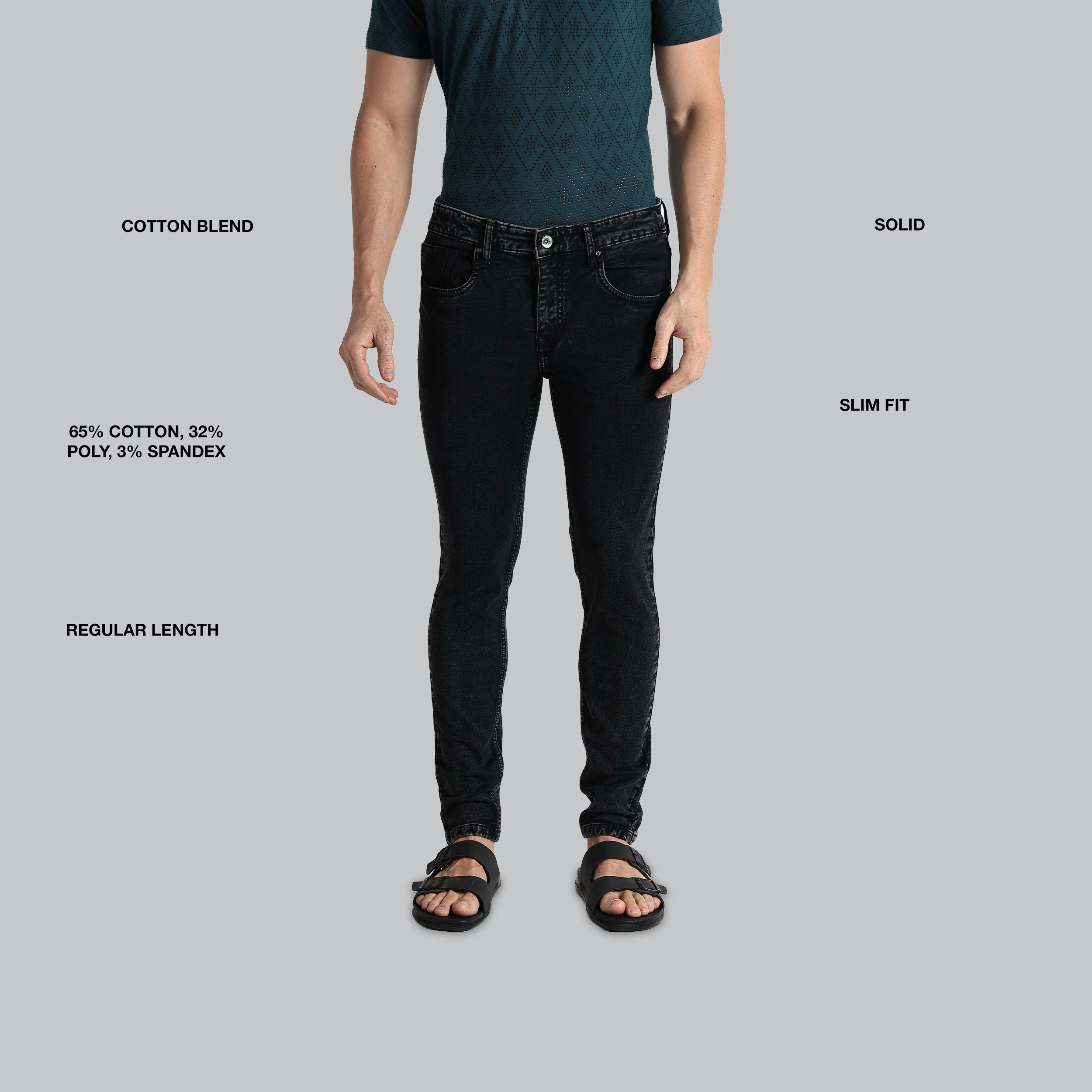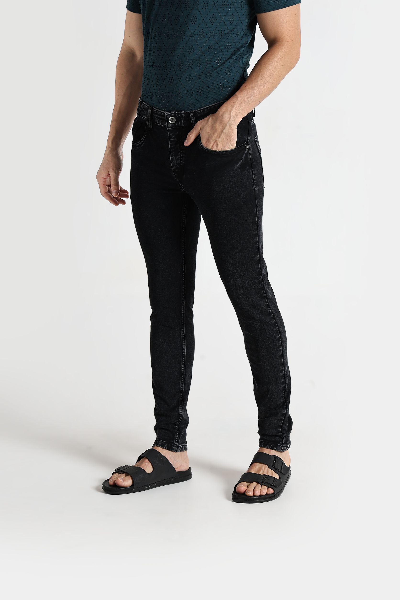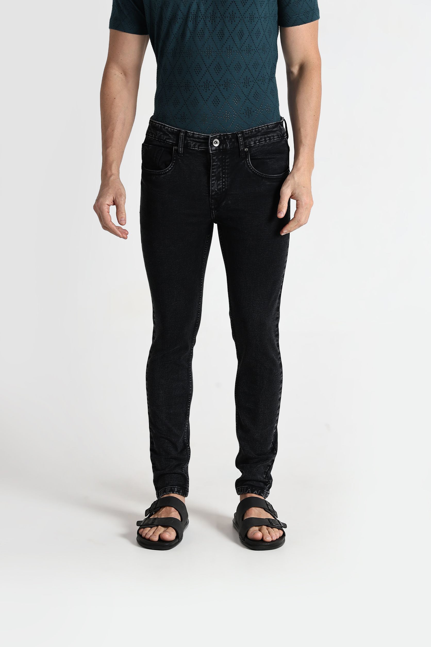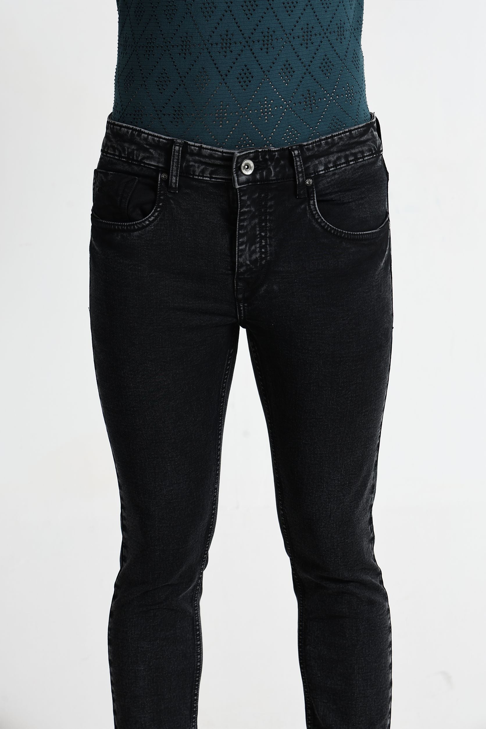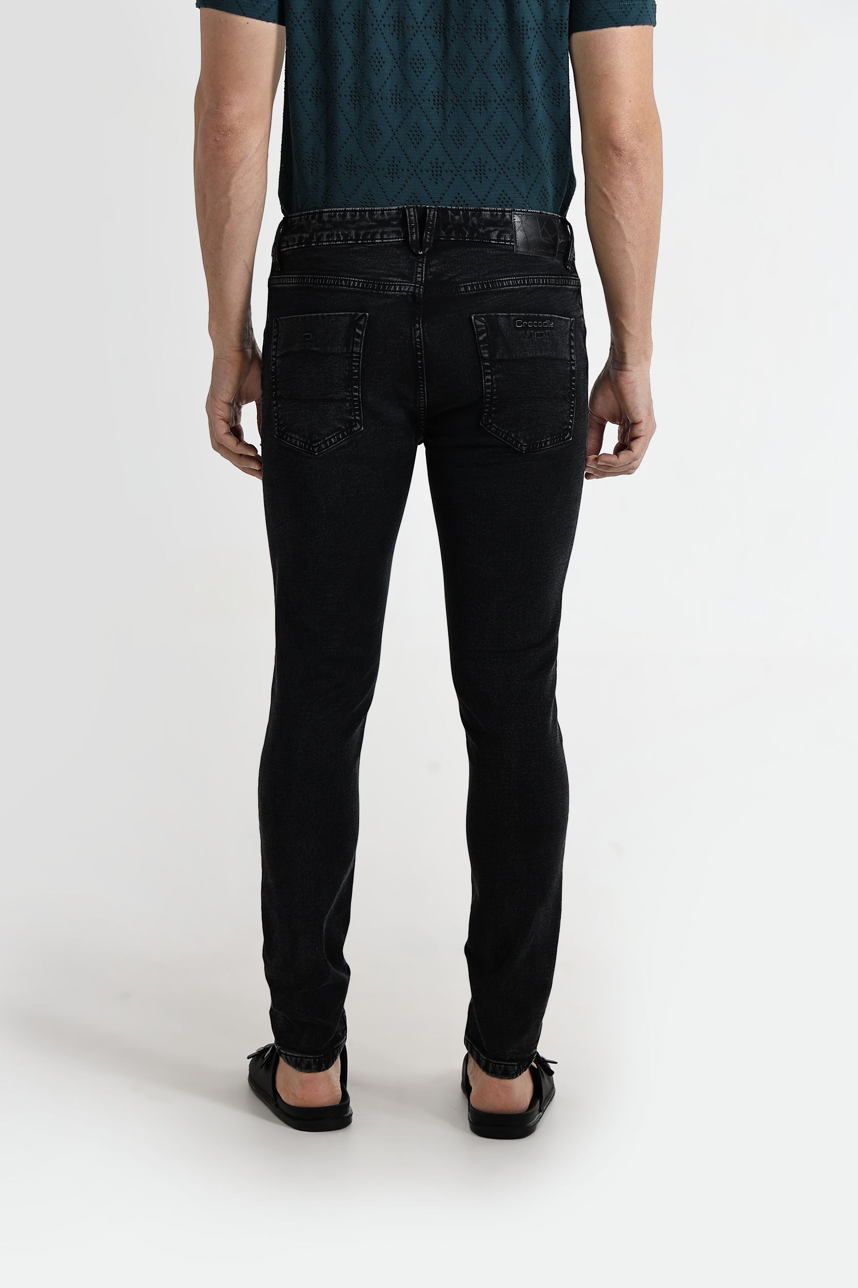 Black Stone Washed Smoky Black Denim Stretch Fabric Crocodile Slim Fit Jeans