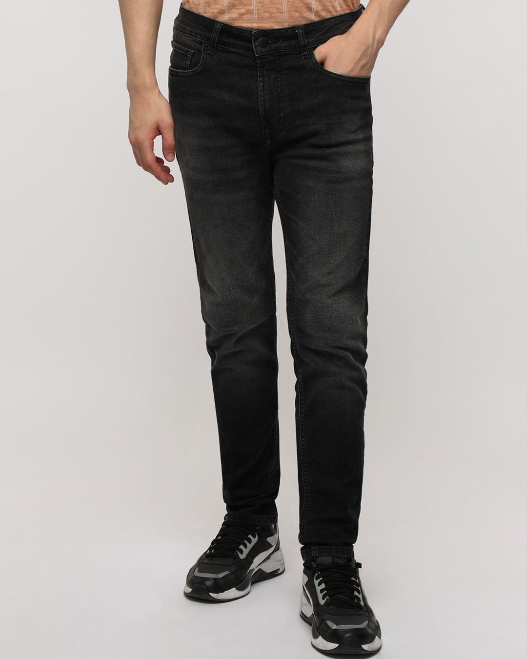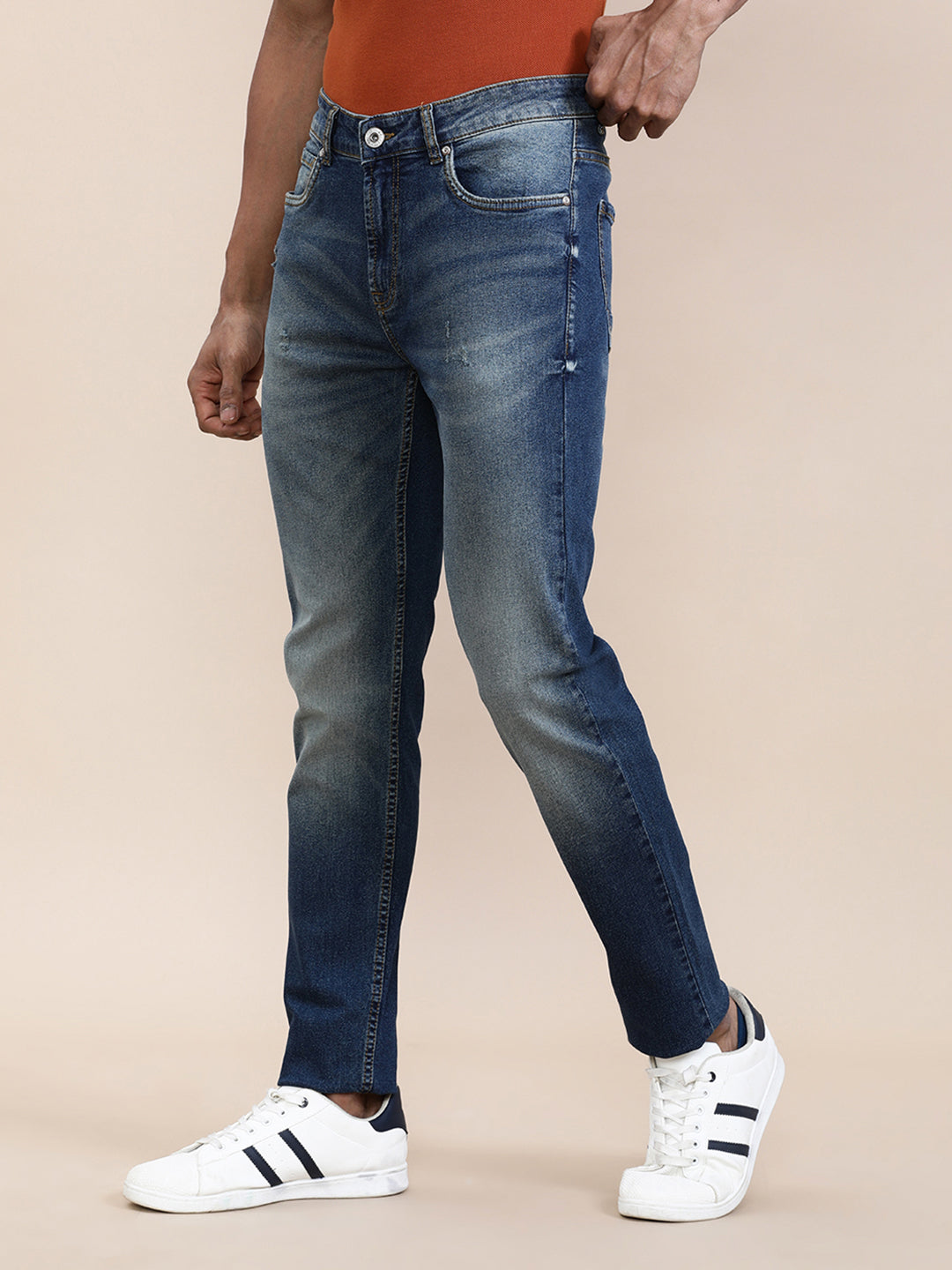 Slim Tapered Jeans: Slim taper jeans are a specific style of jeans that combine two key features: a slim fit through the thigh and a tapered leg from the knee down to the ankle. These jeans offer a tailored and contemporary look that's popular among individuals who want a fit that's more streamlined than regular slim fit jeans.