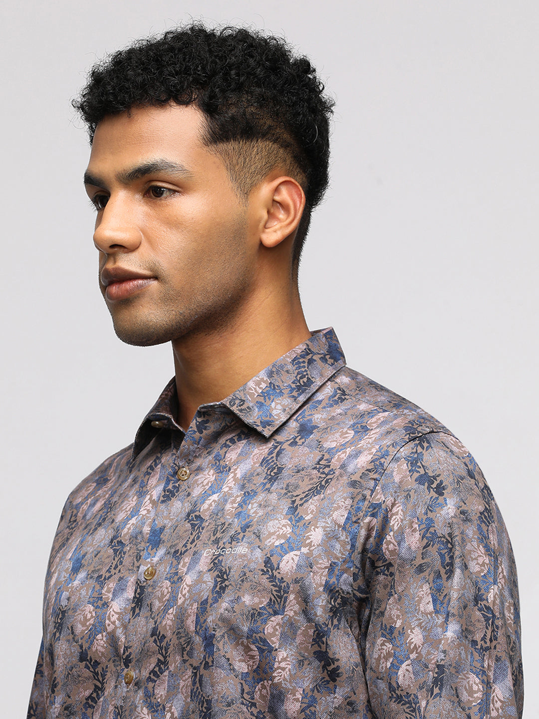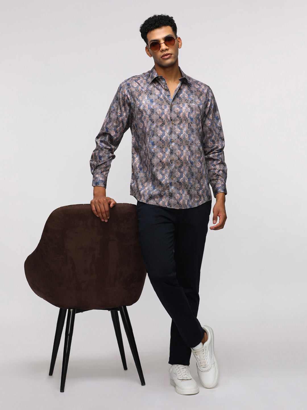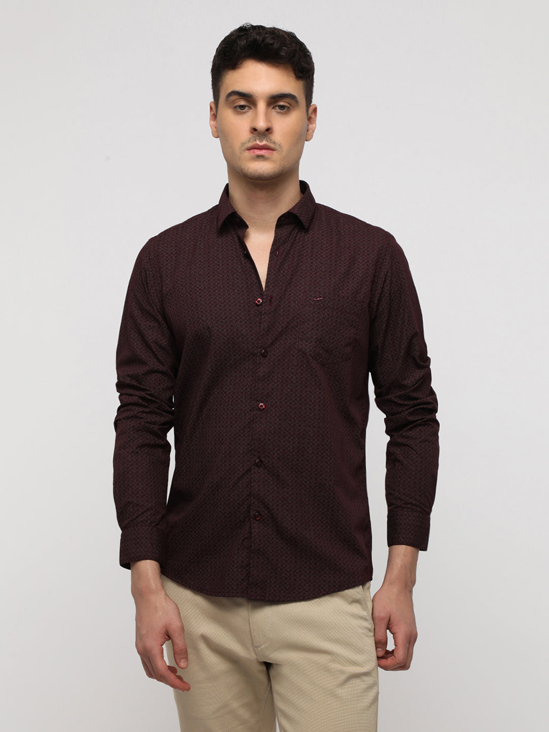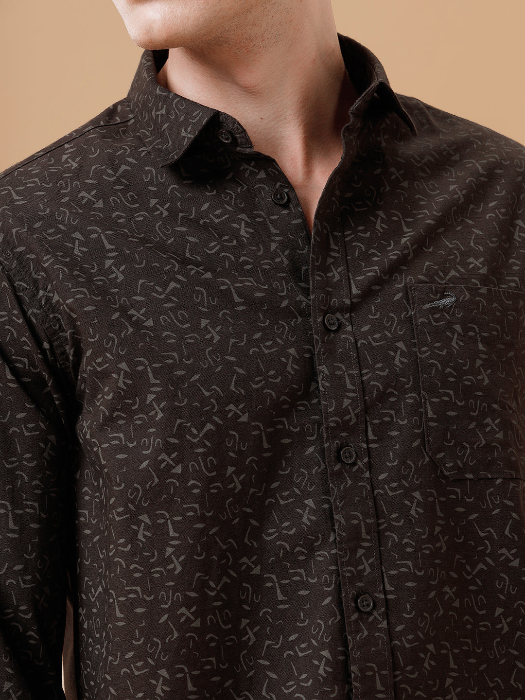 Brown Printed Full Sleeve 100% Cotton Shirt