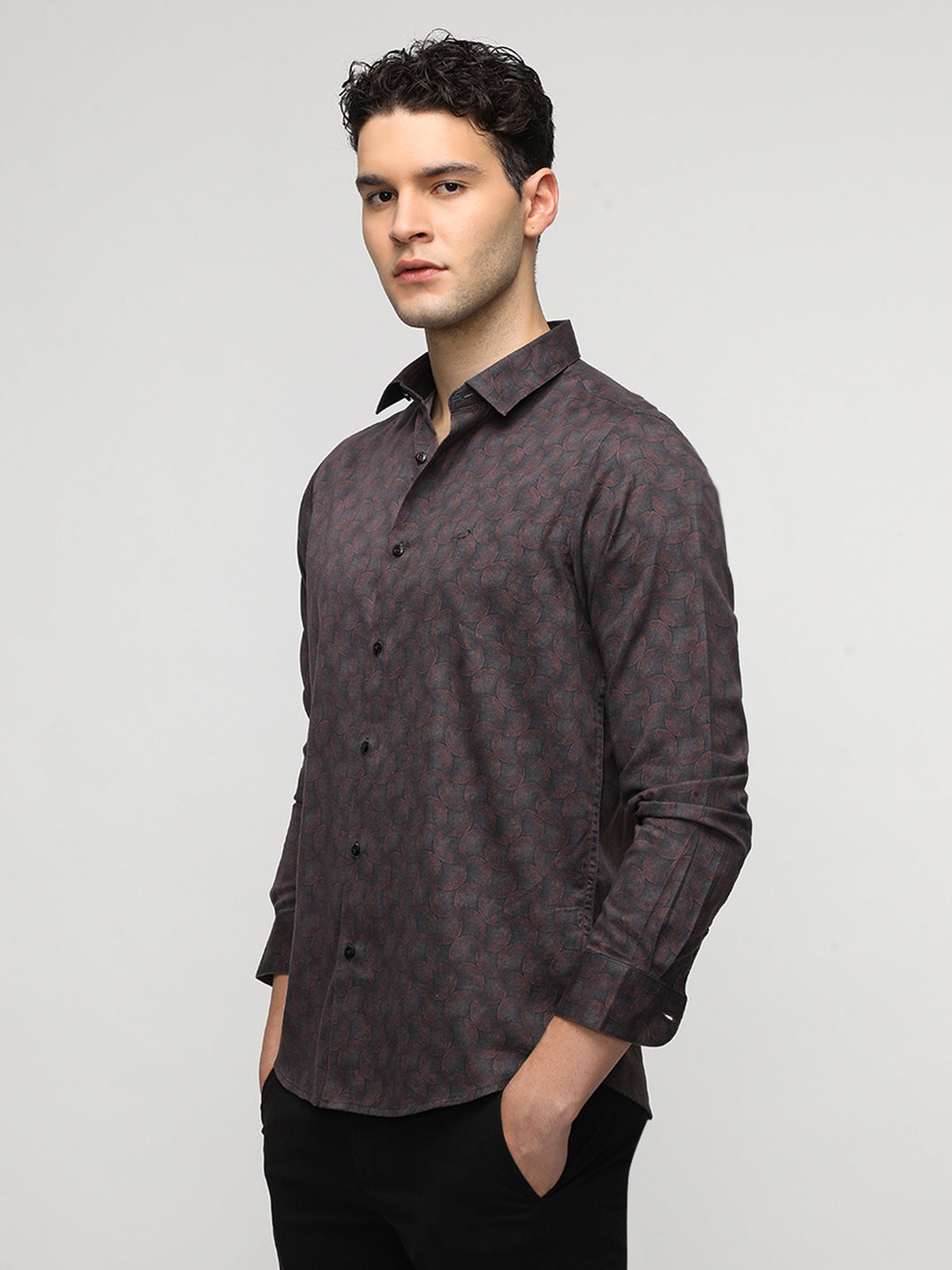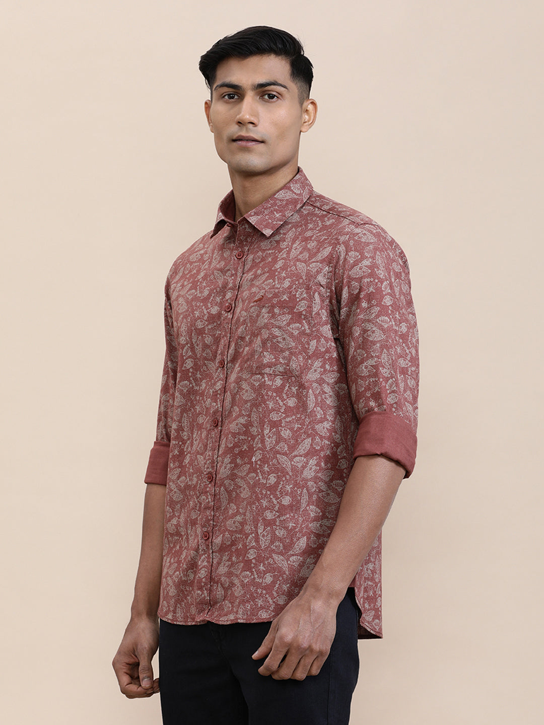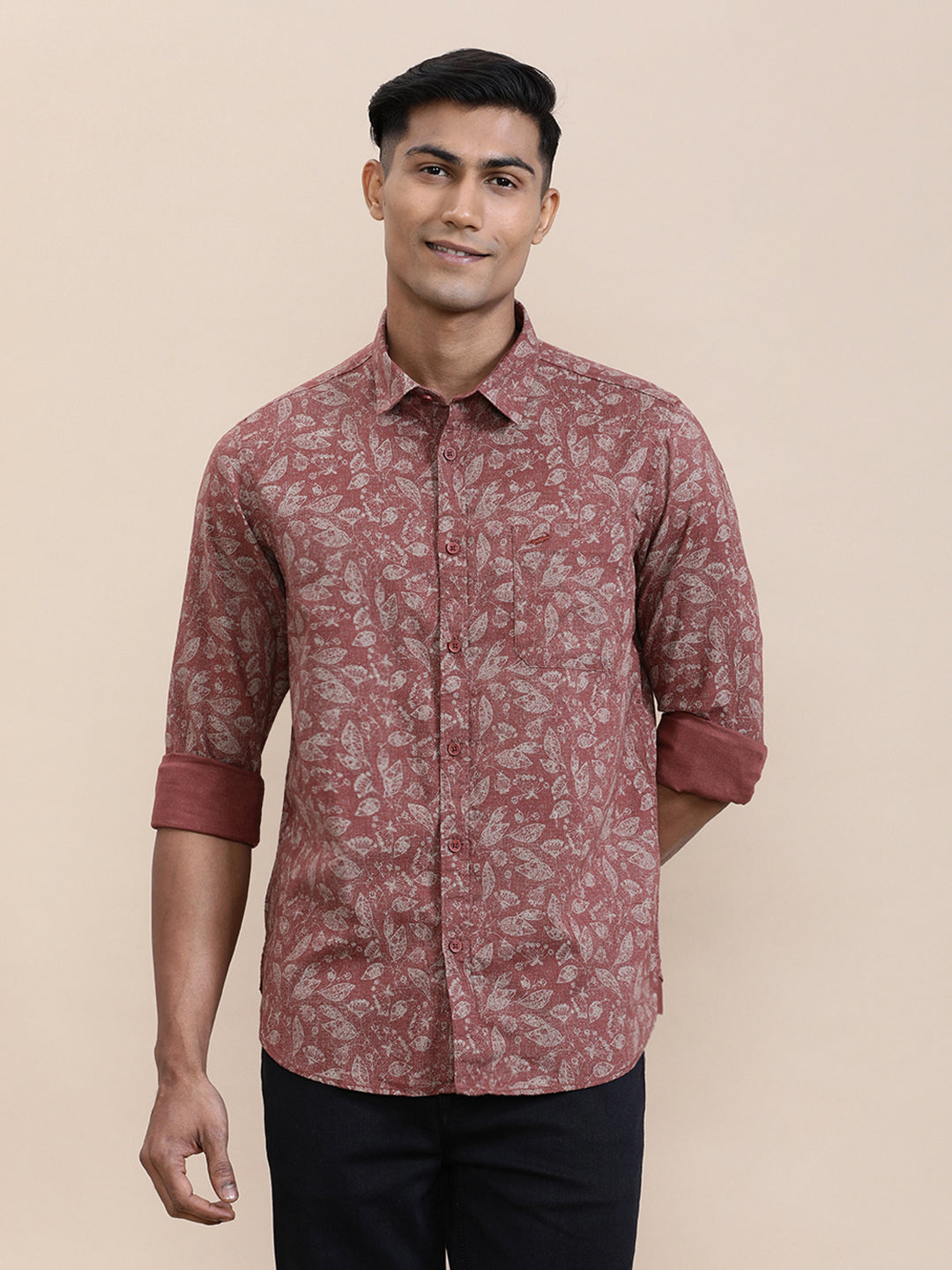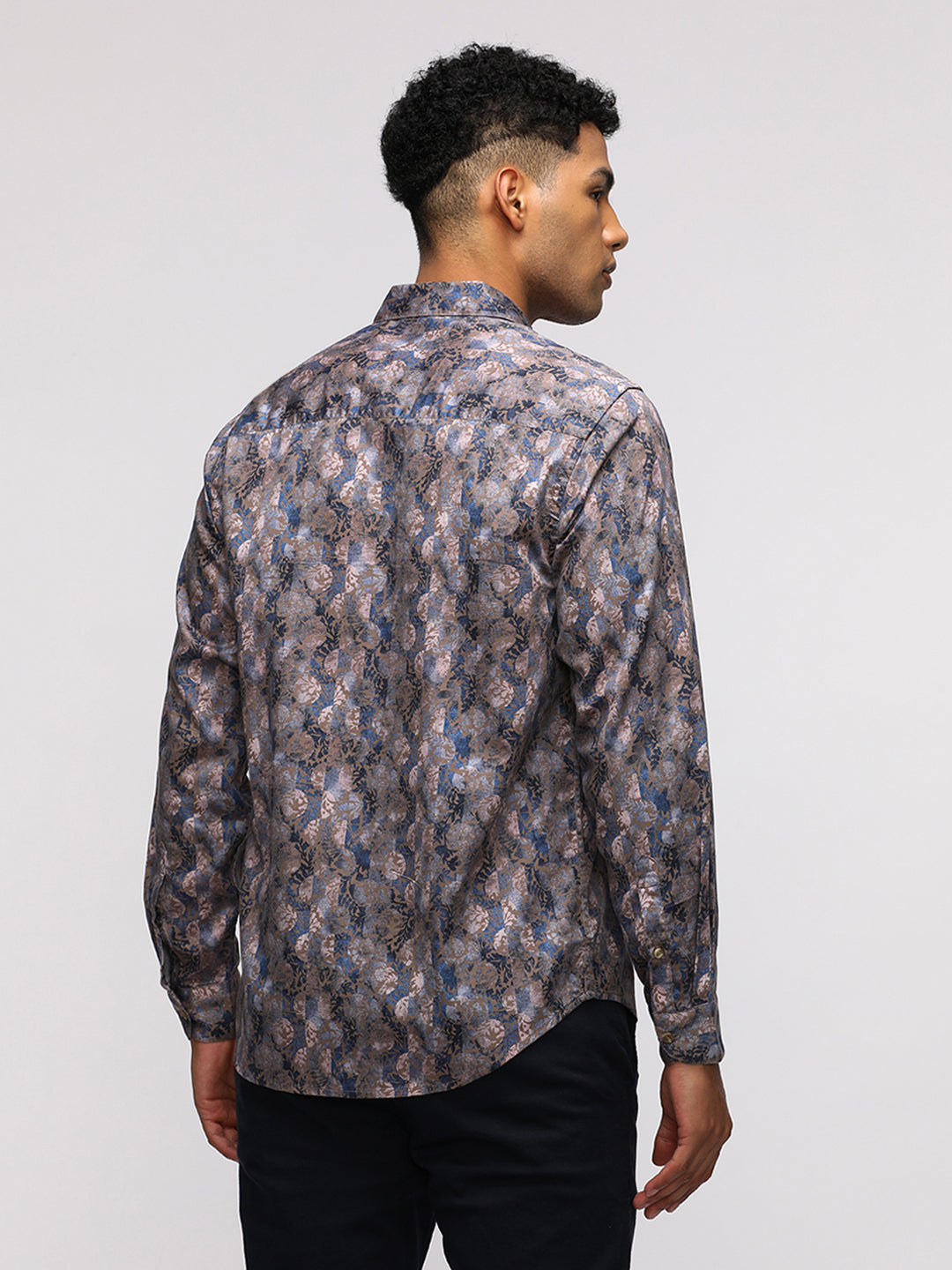 Brown Printed Full Sleeve 100% Cotton Shirt