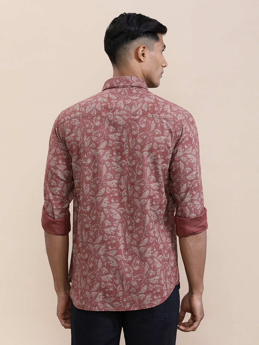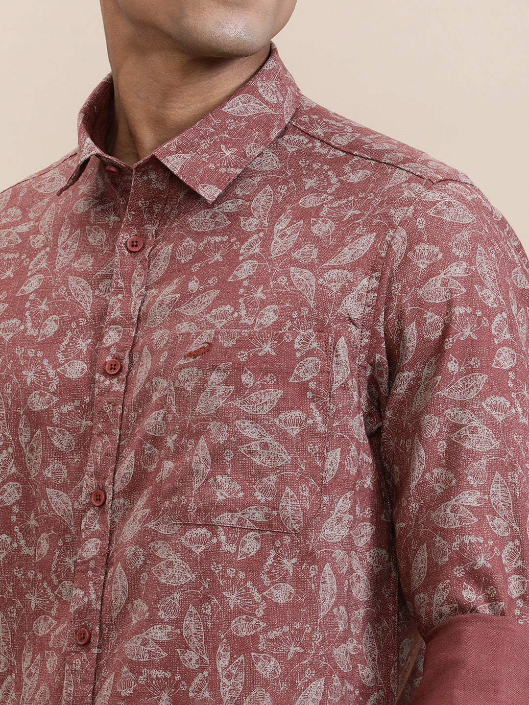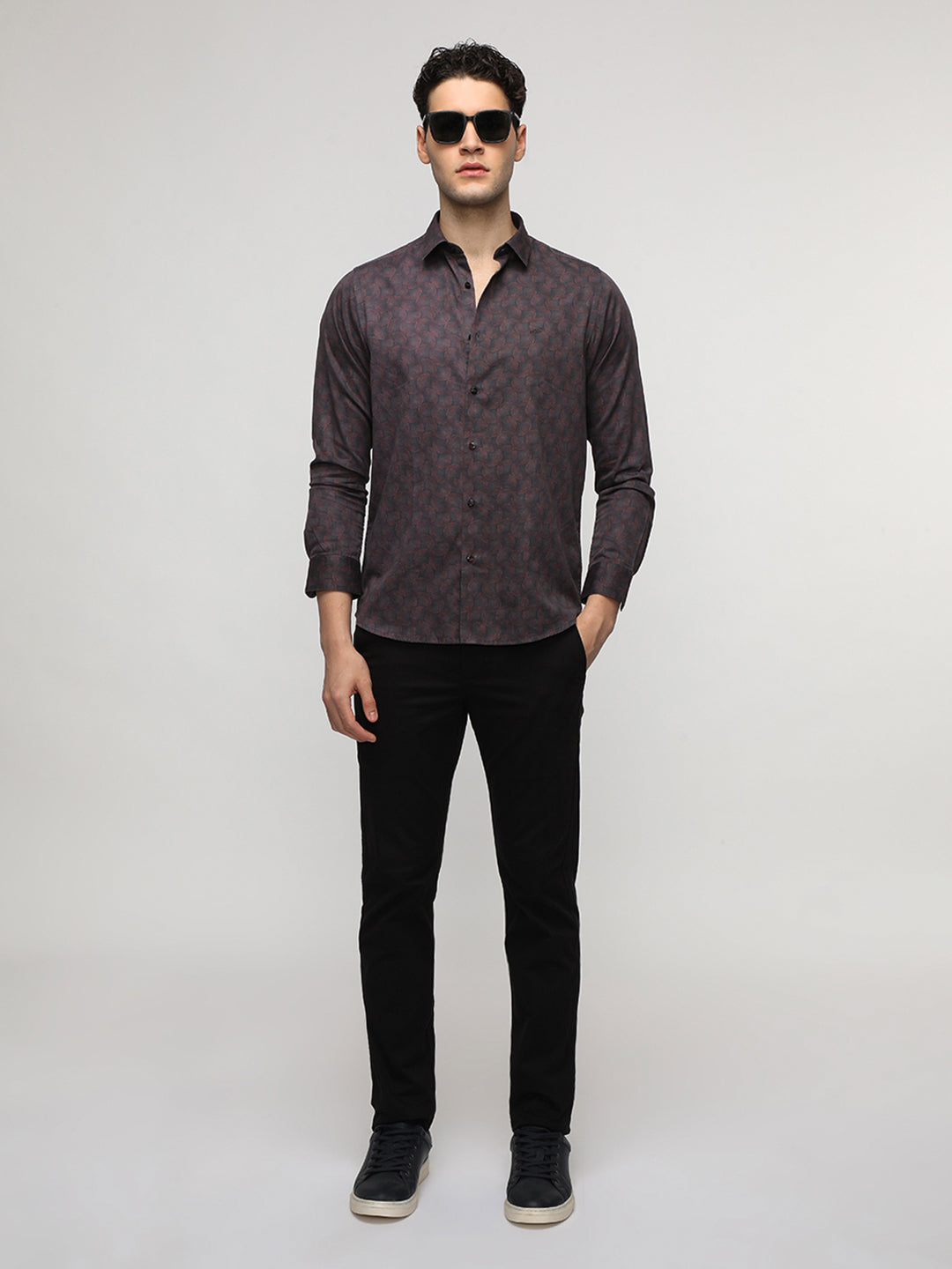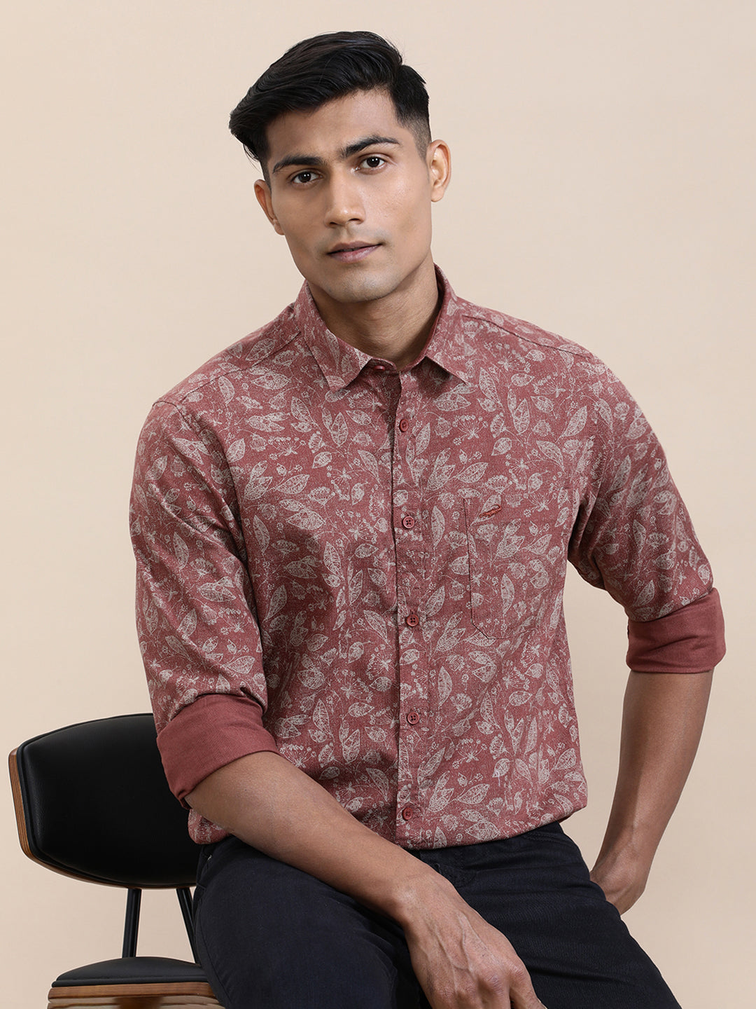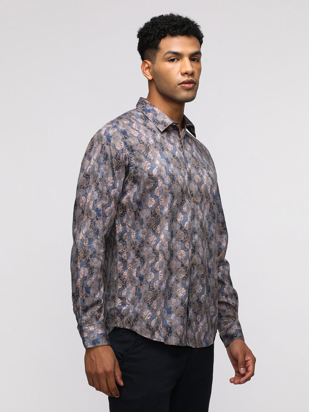 Brown Printed Full Sleeve 100% Cotton Shirt