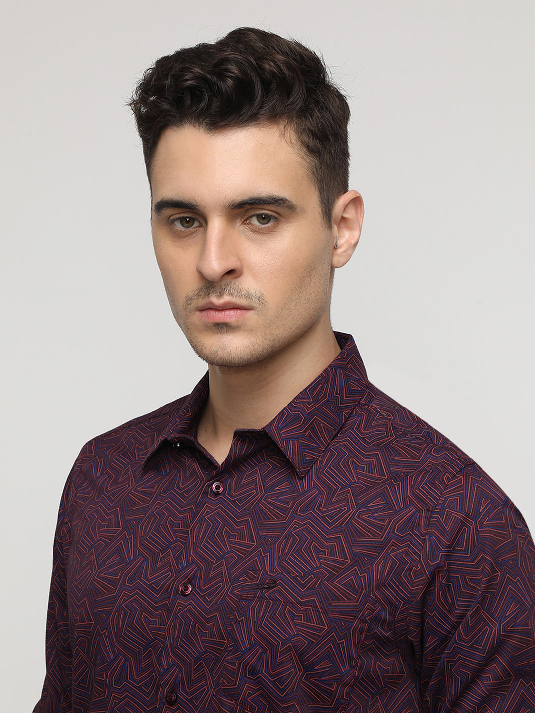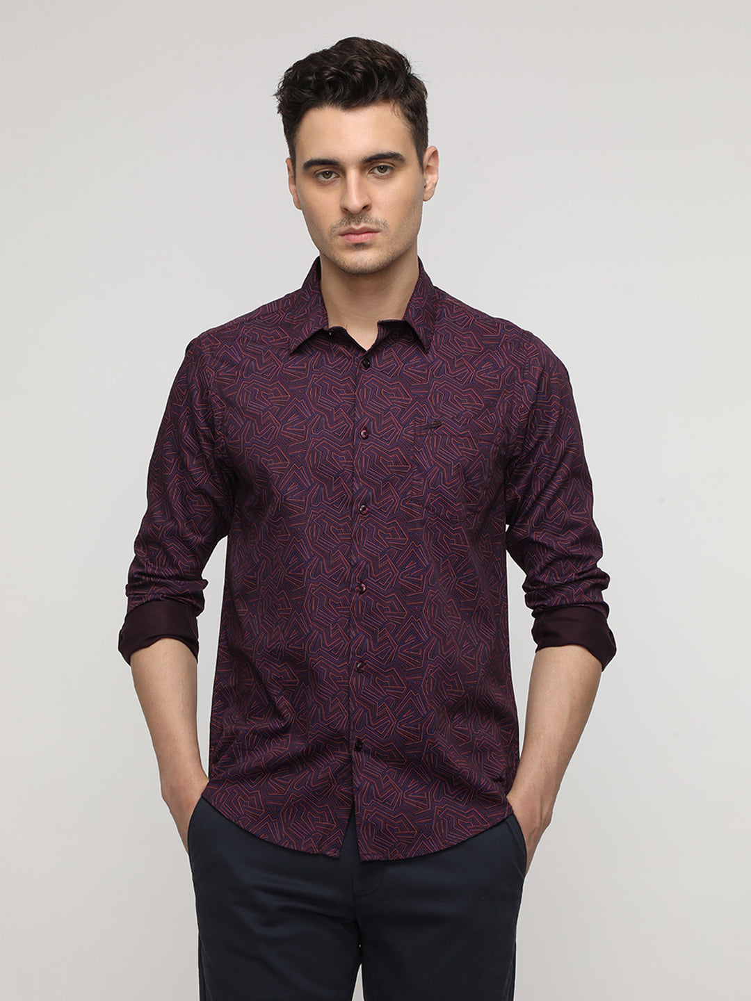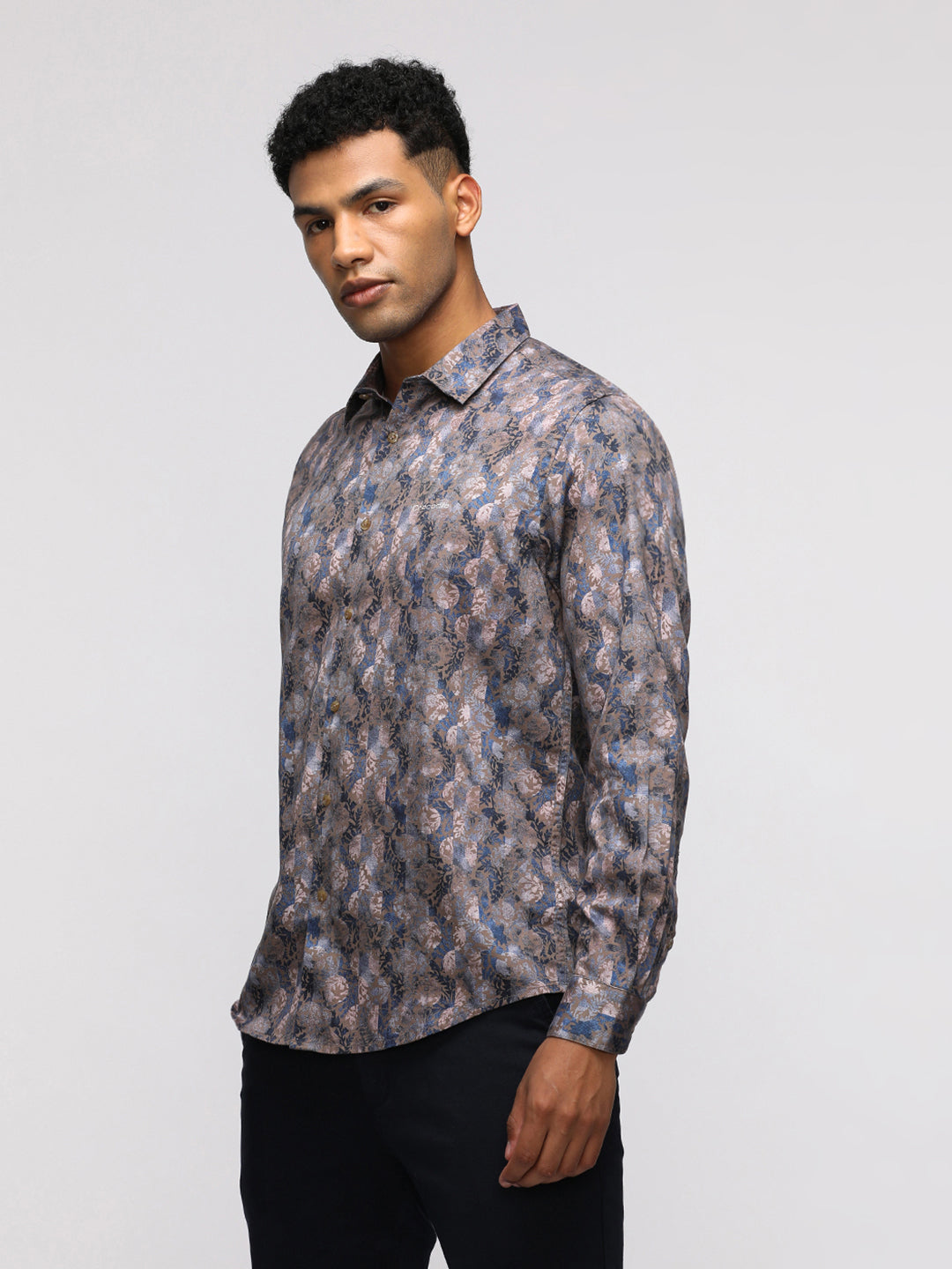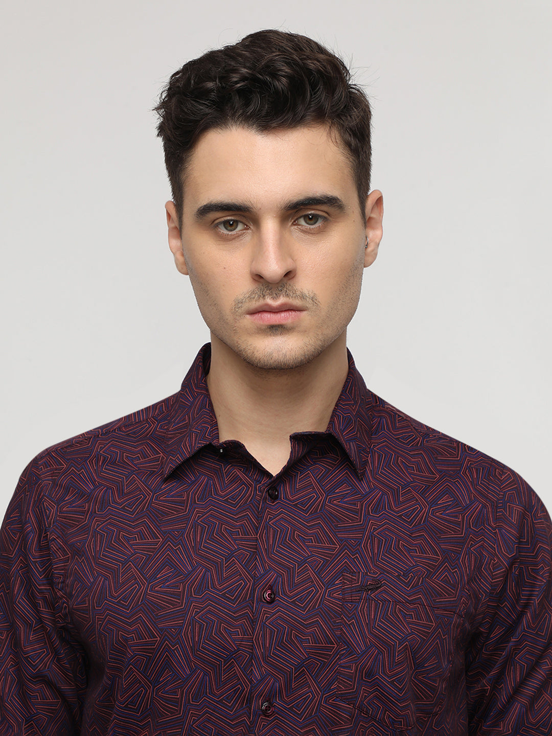 Brown Printed Full Sleeve 100% Cotton Shirt