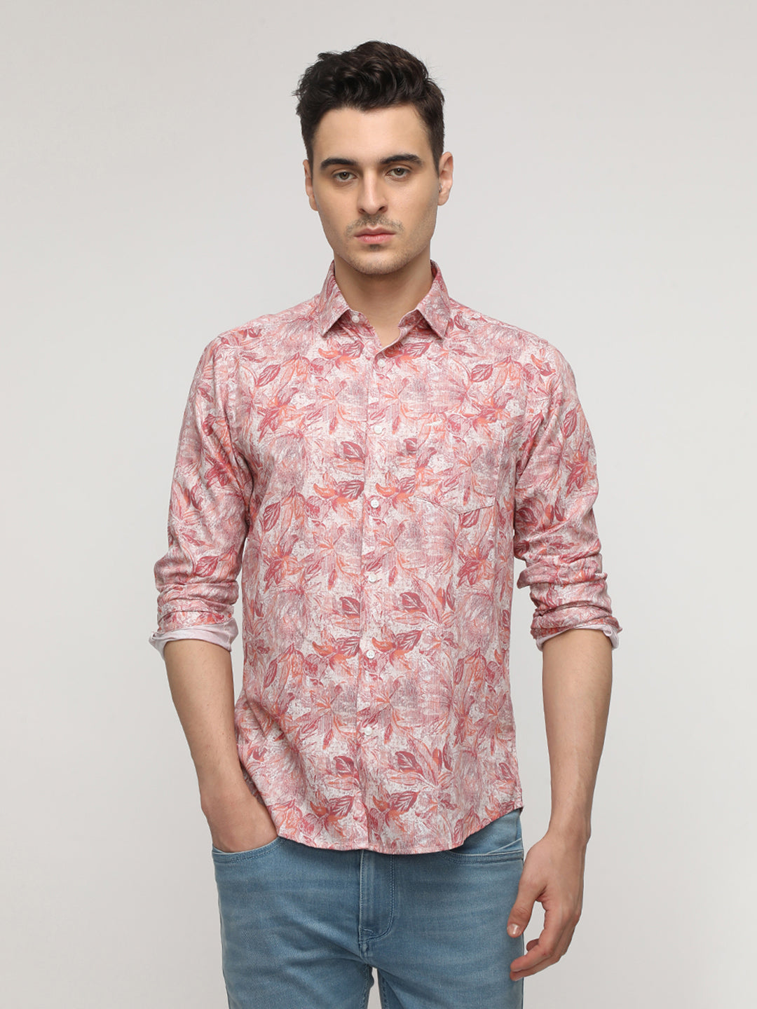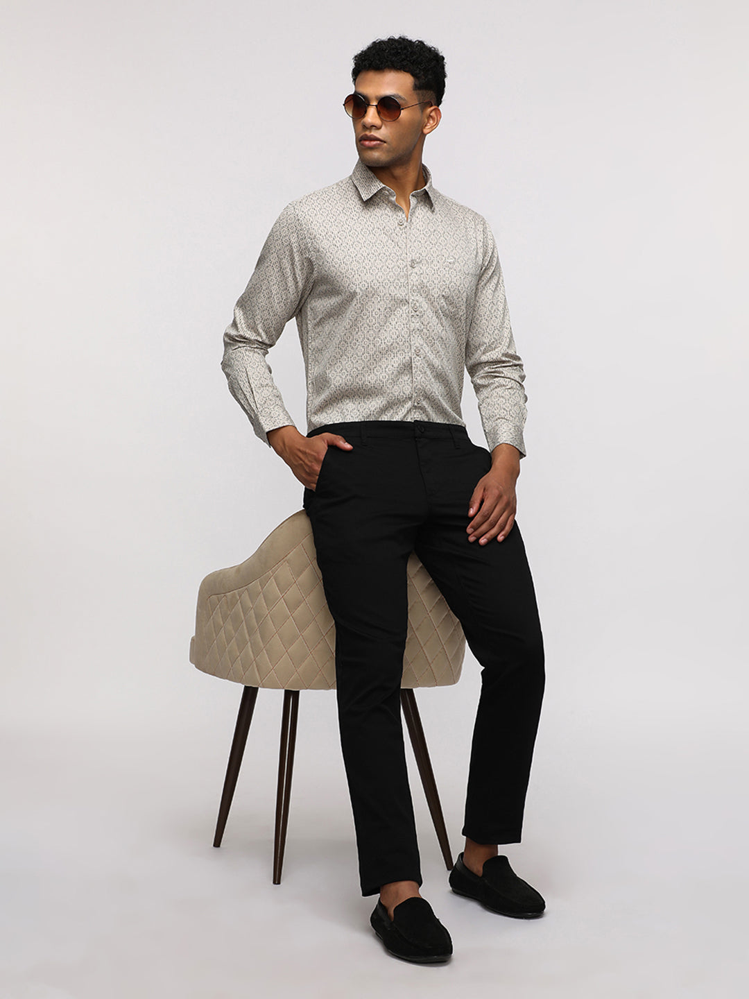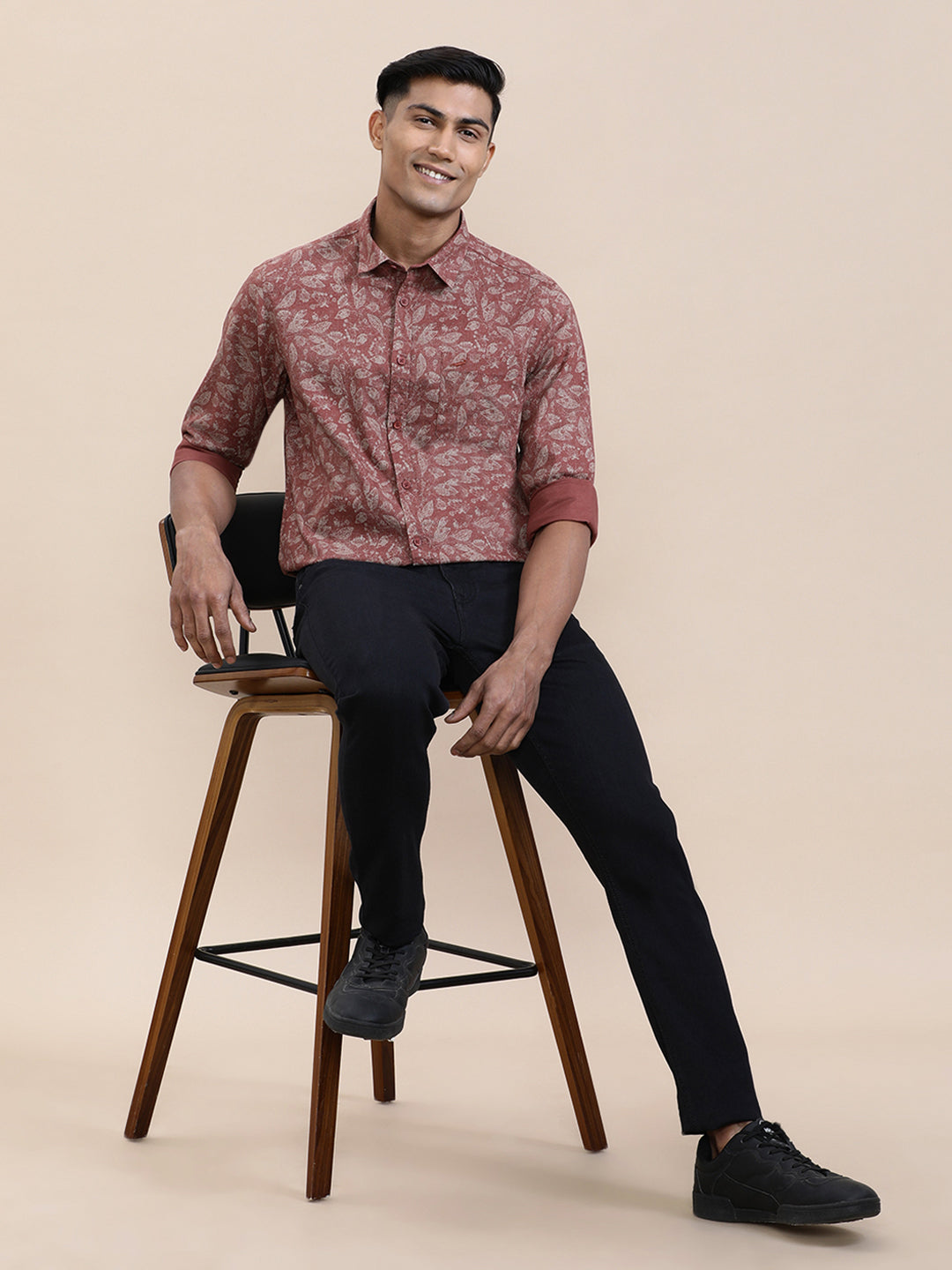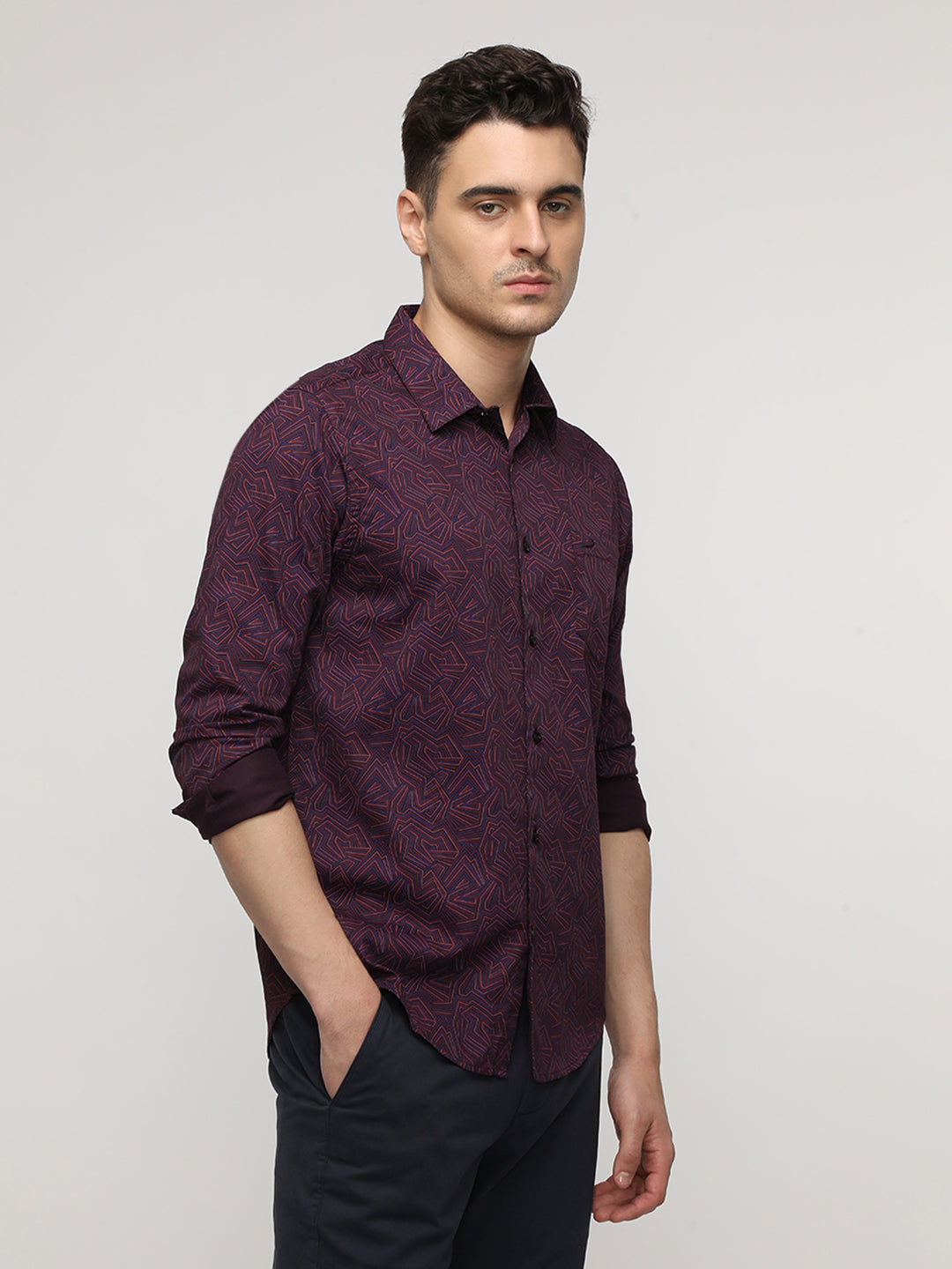 Brown Printed Full Sleeve 100% Cotton Shirt