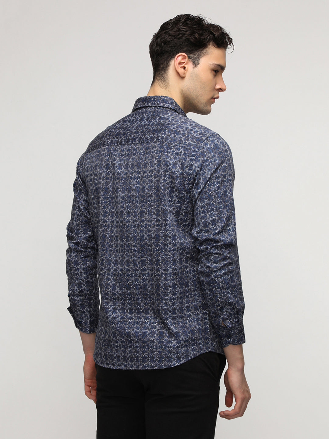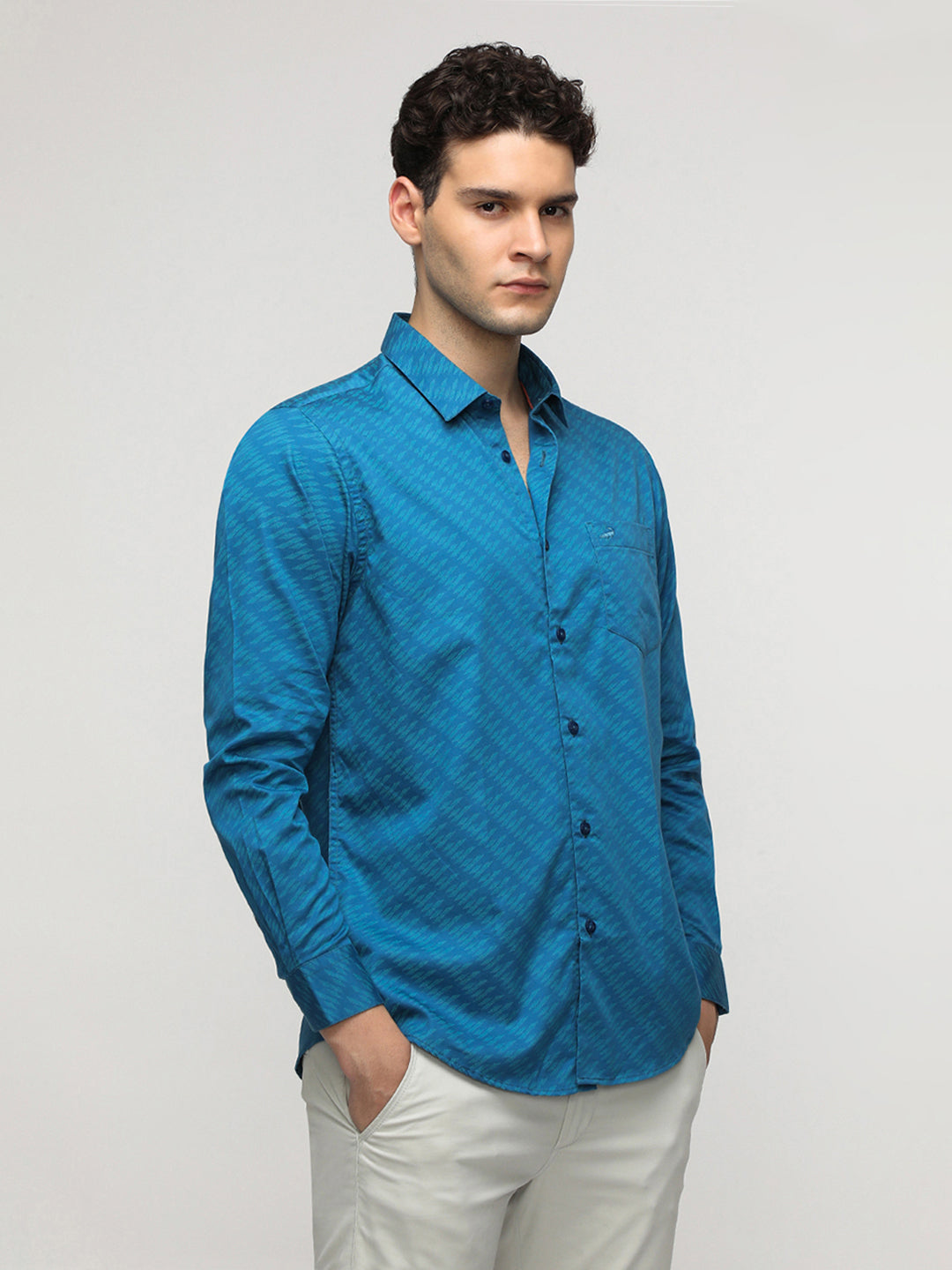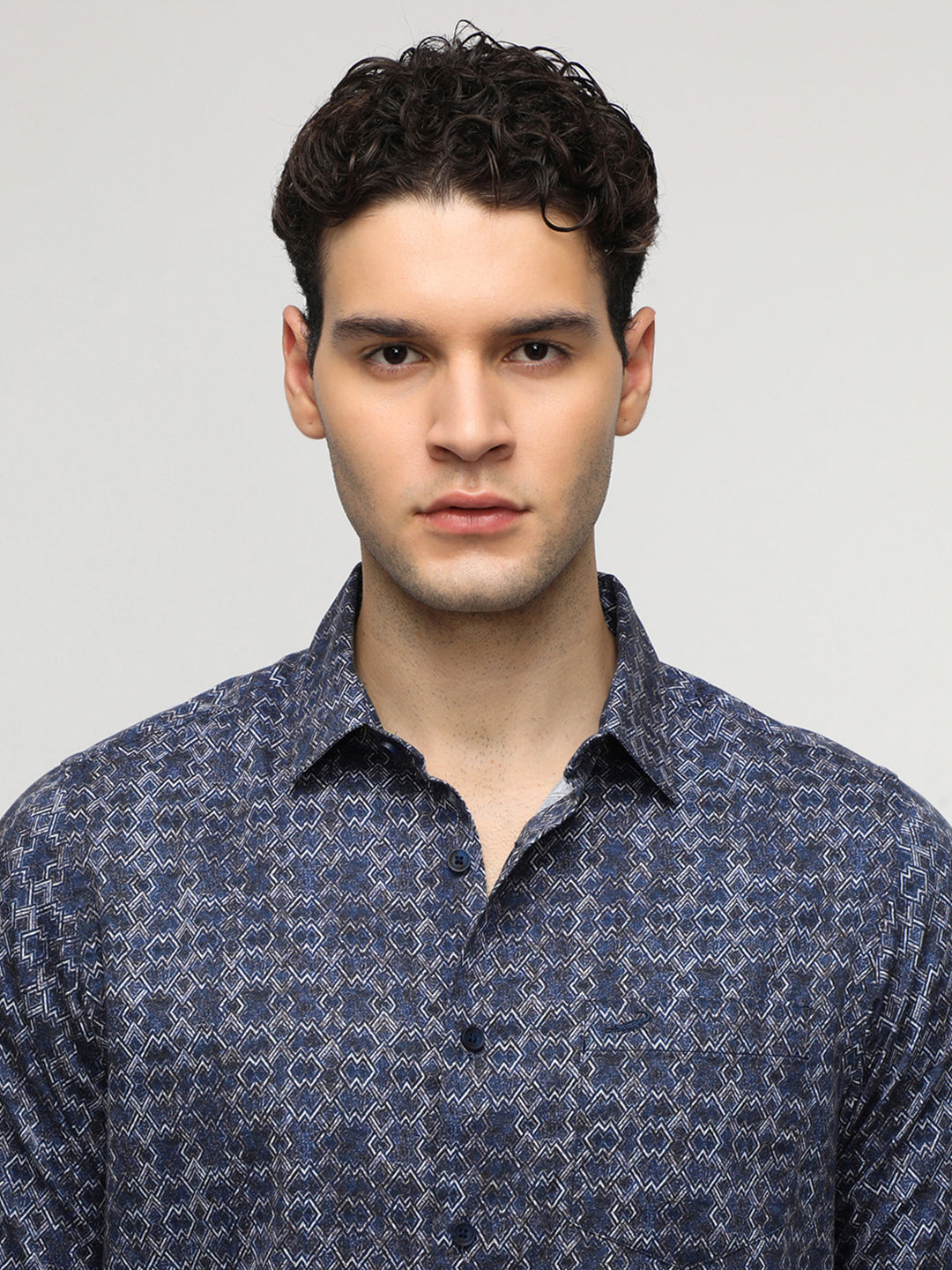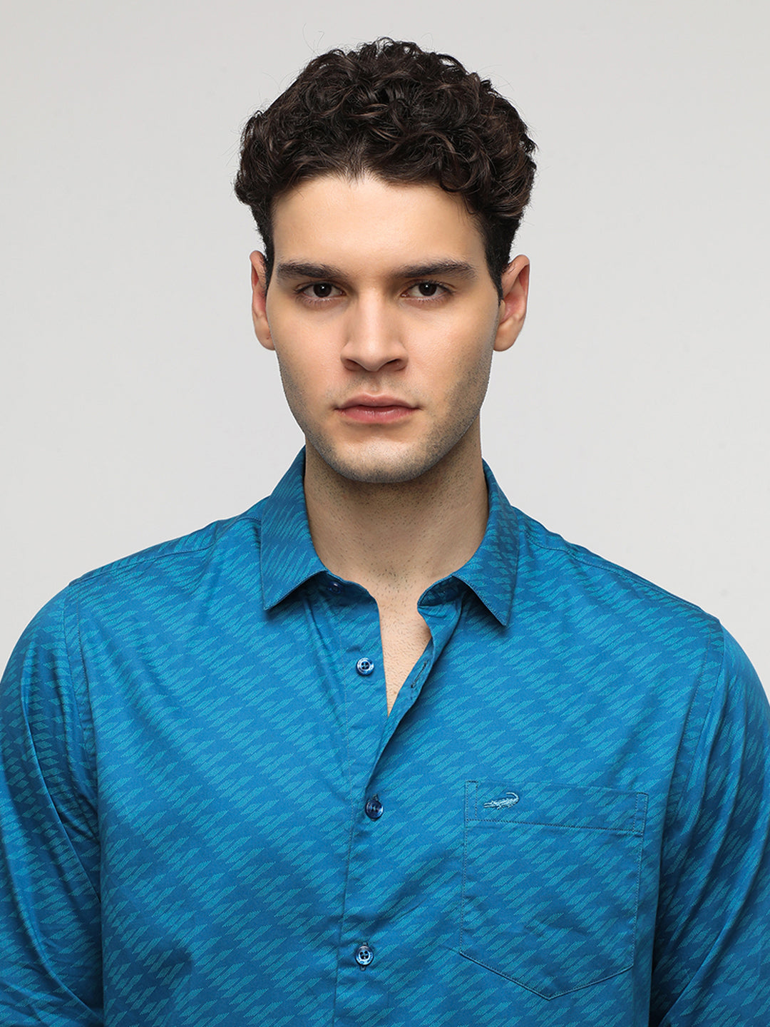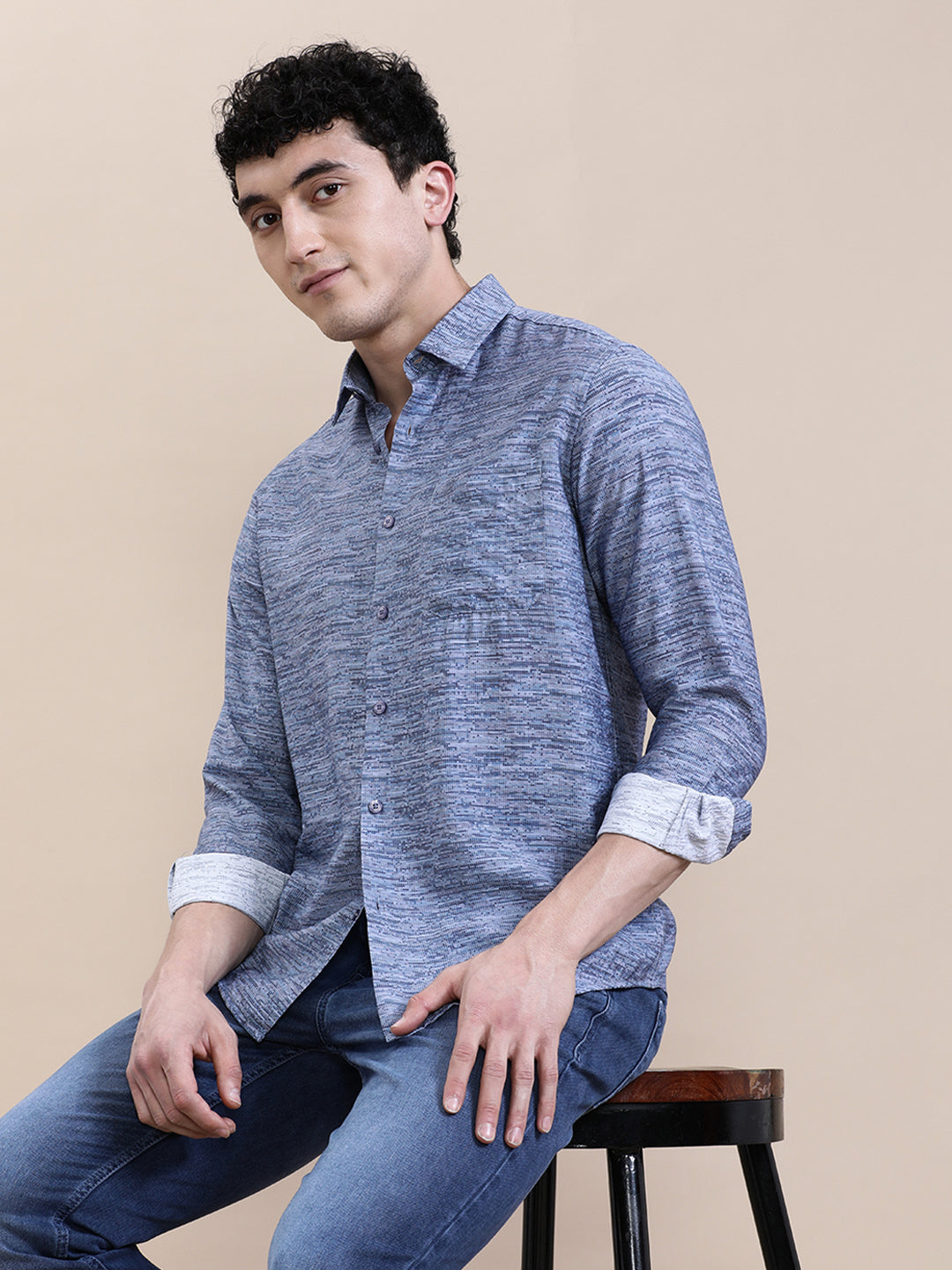 Blue Diamond Cut Texture Relax Fit Cotton Relaxed Fit Shirts