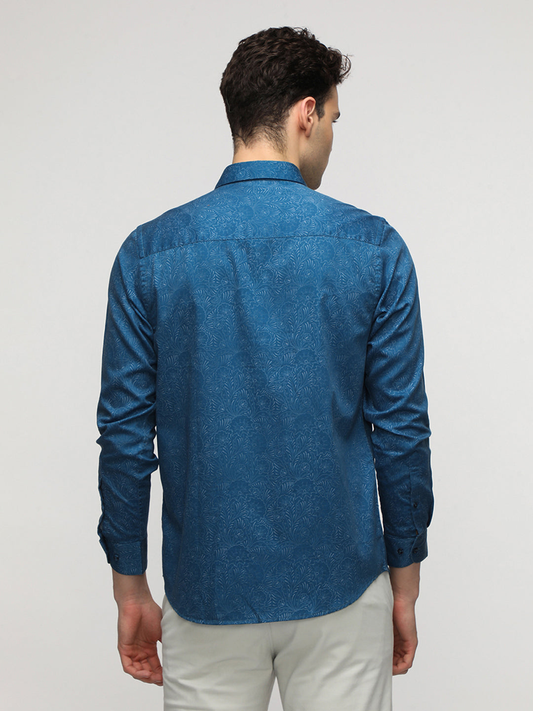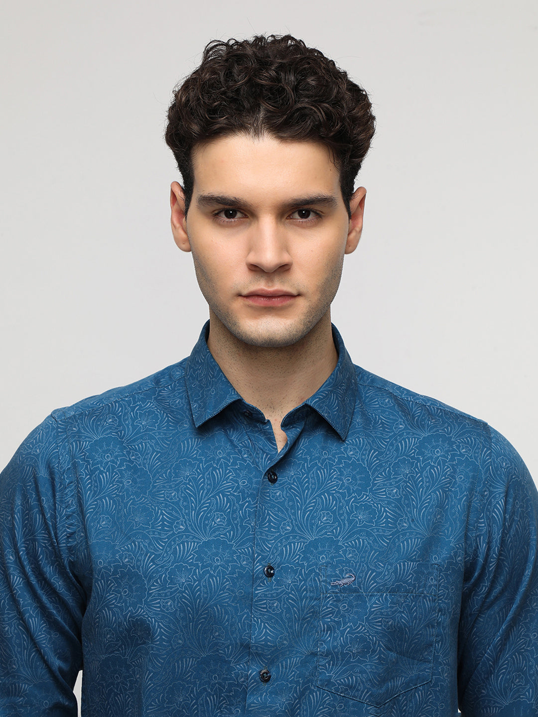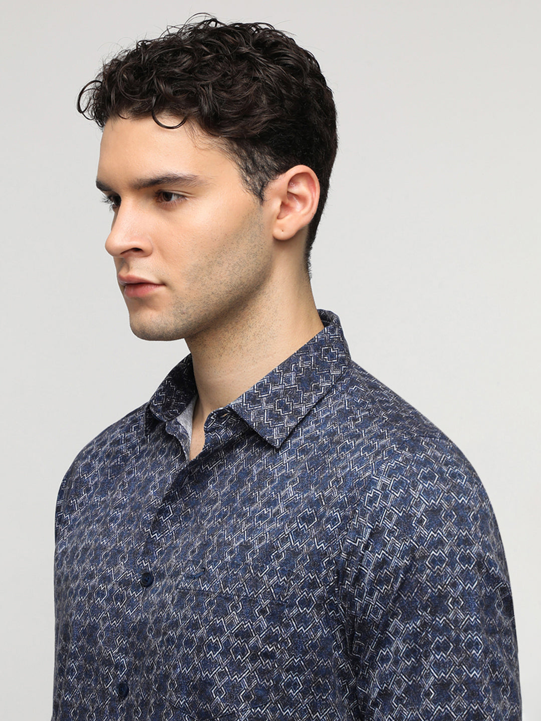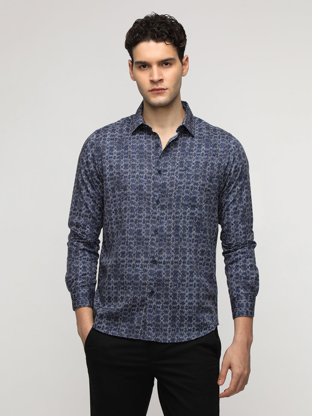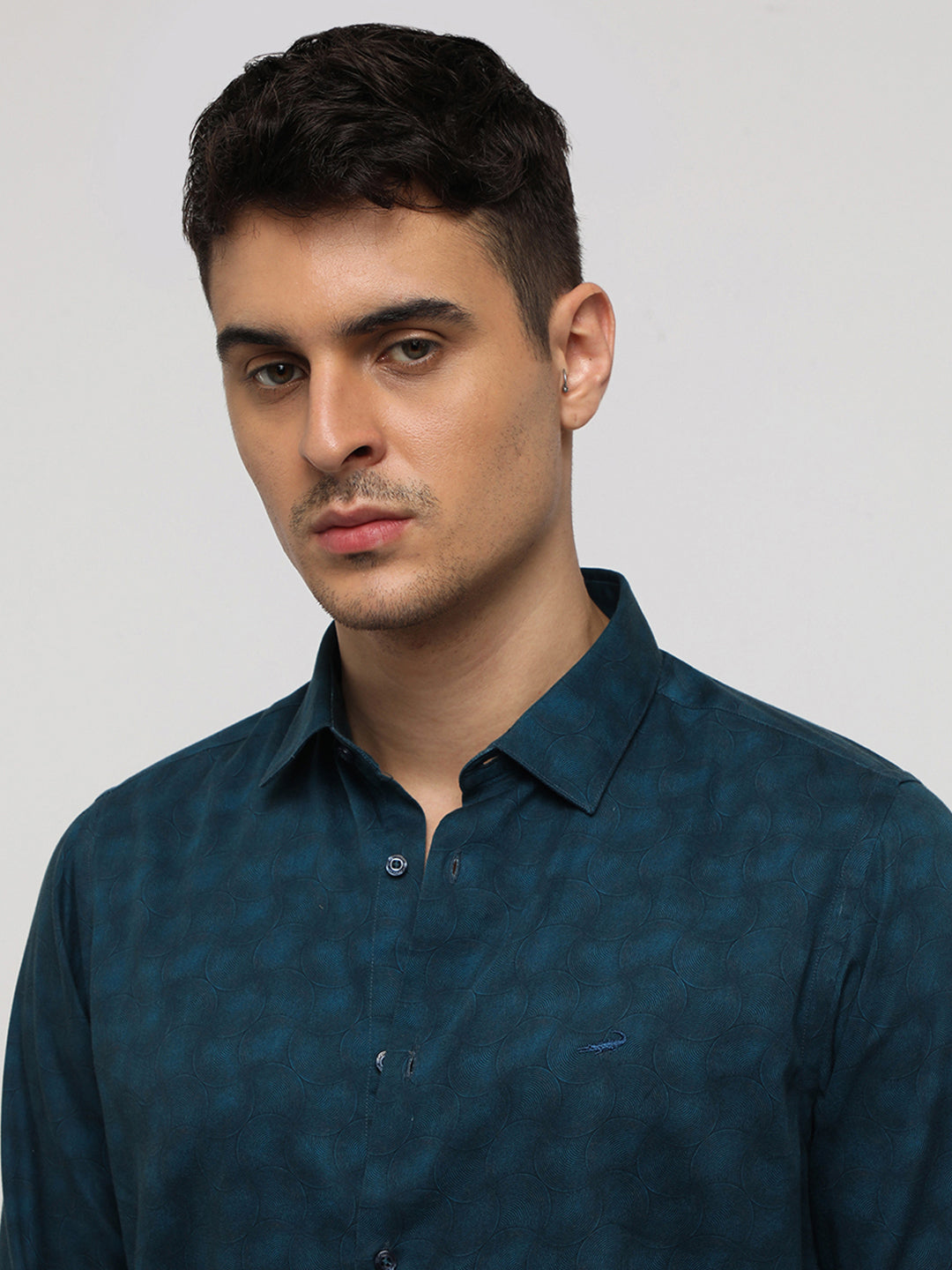 Blue Diamond Cut Texture Relax Fit Cotton Relaxed Fit Shirts