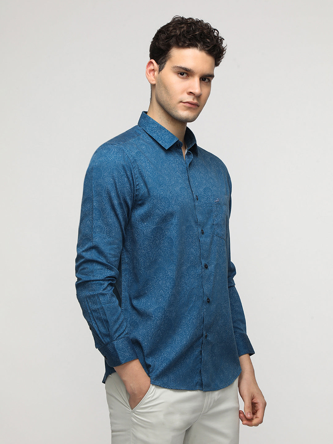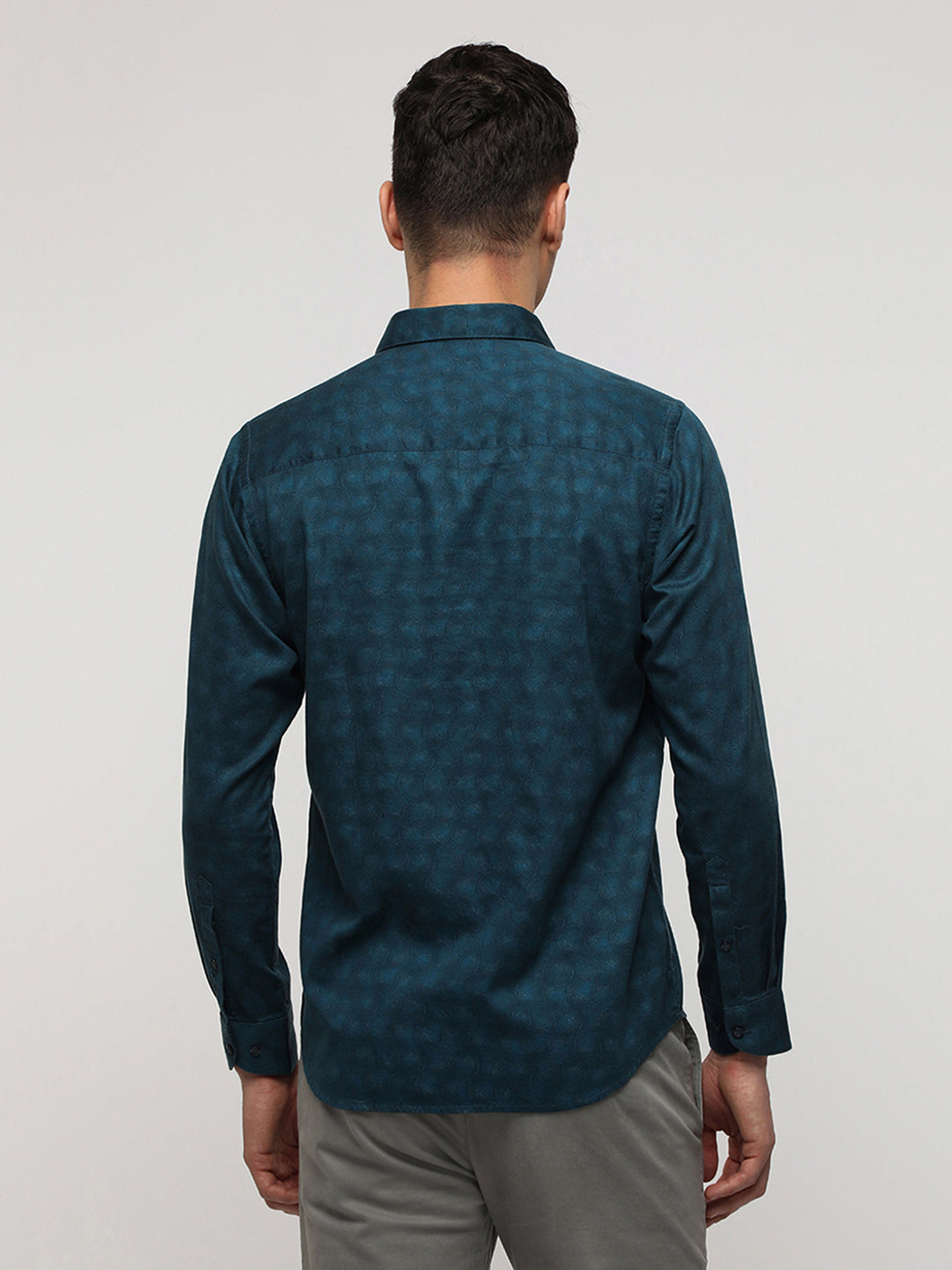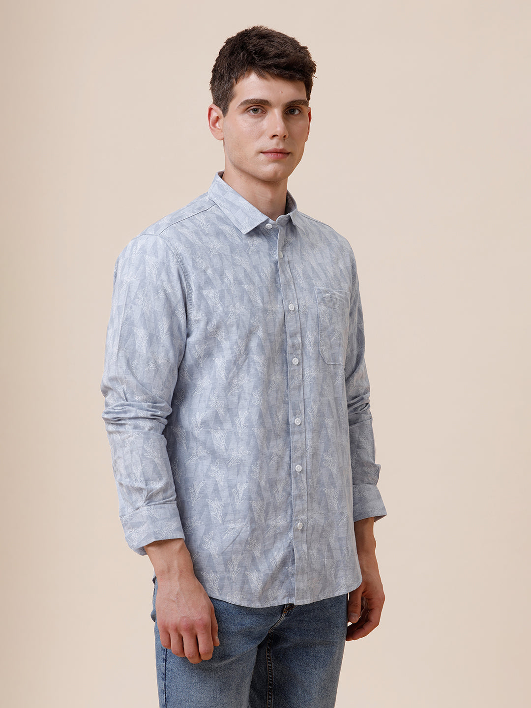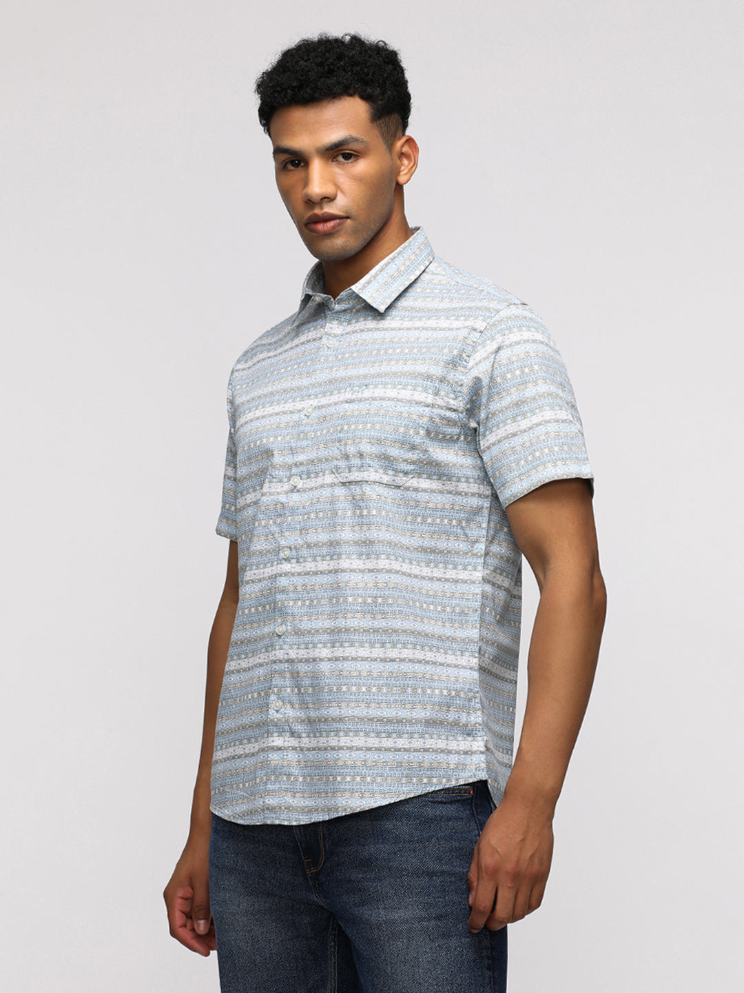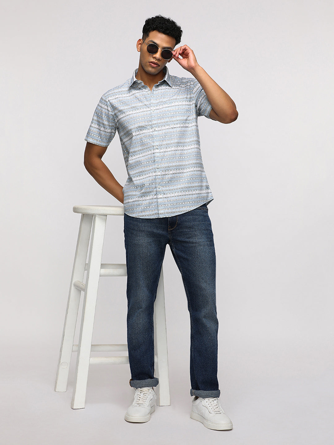 Blue Diamond Cut Texture Relax Fit Cotton Relaxed Fit Shirts