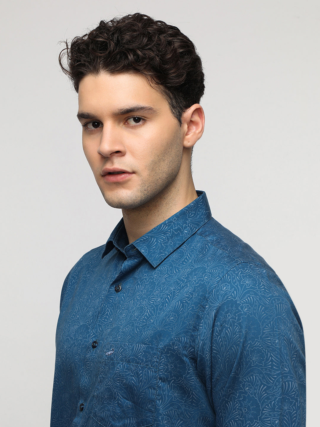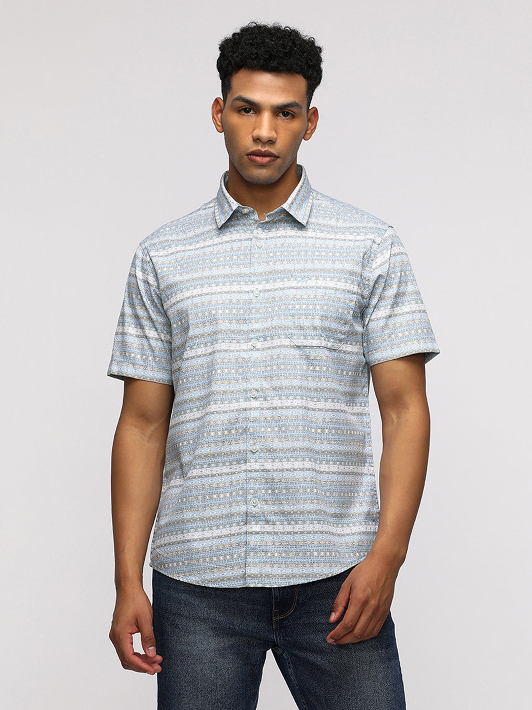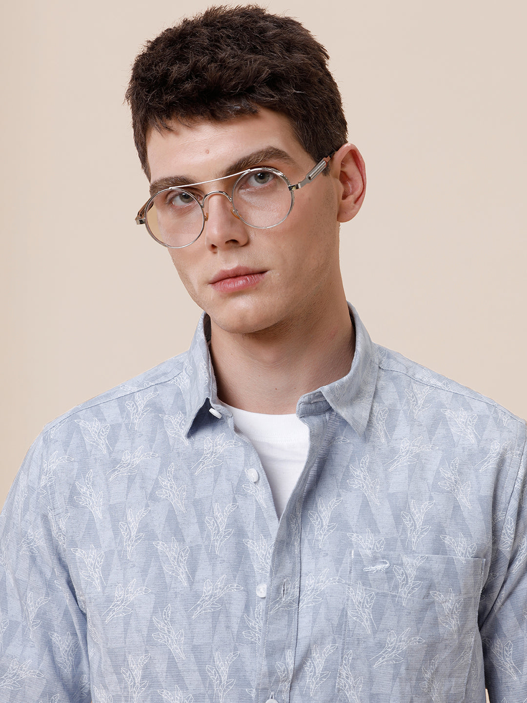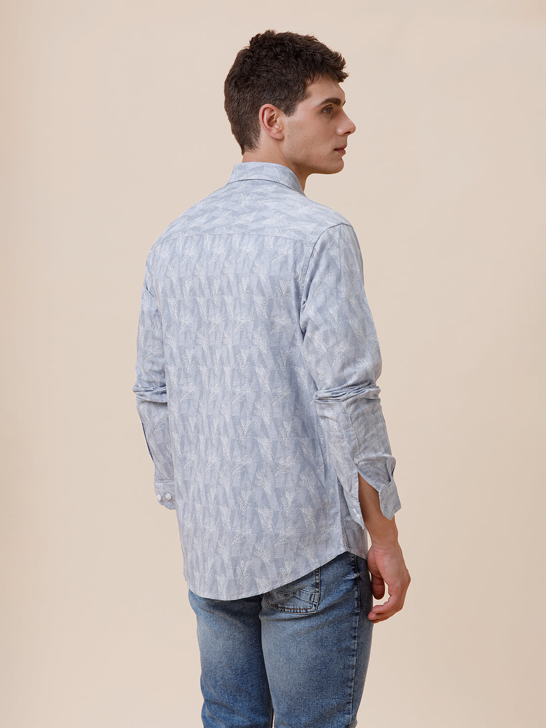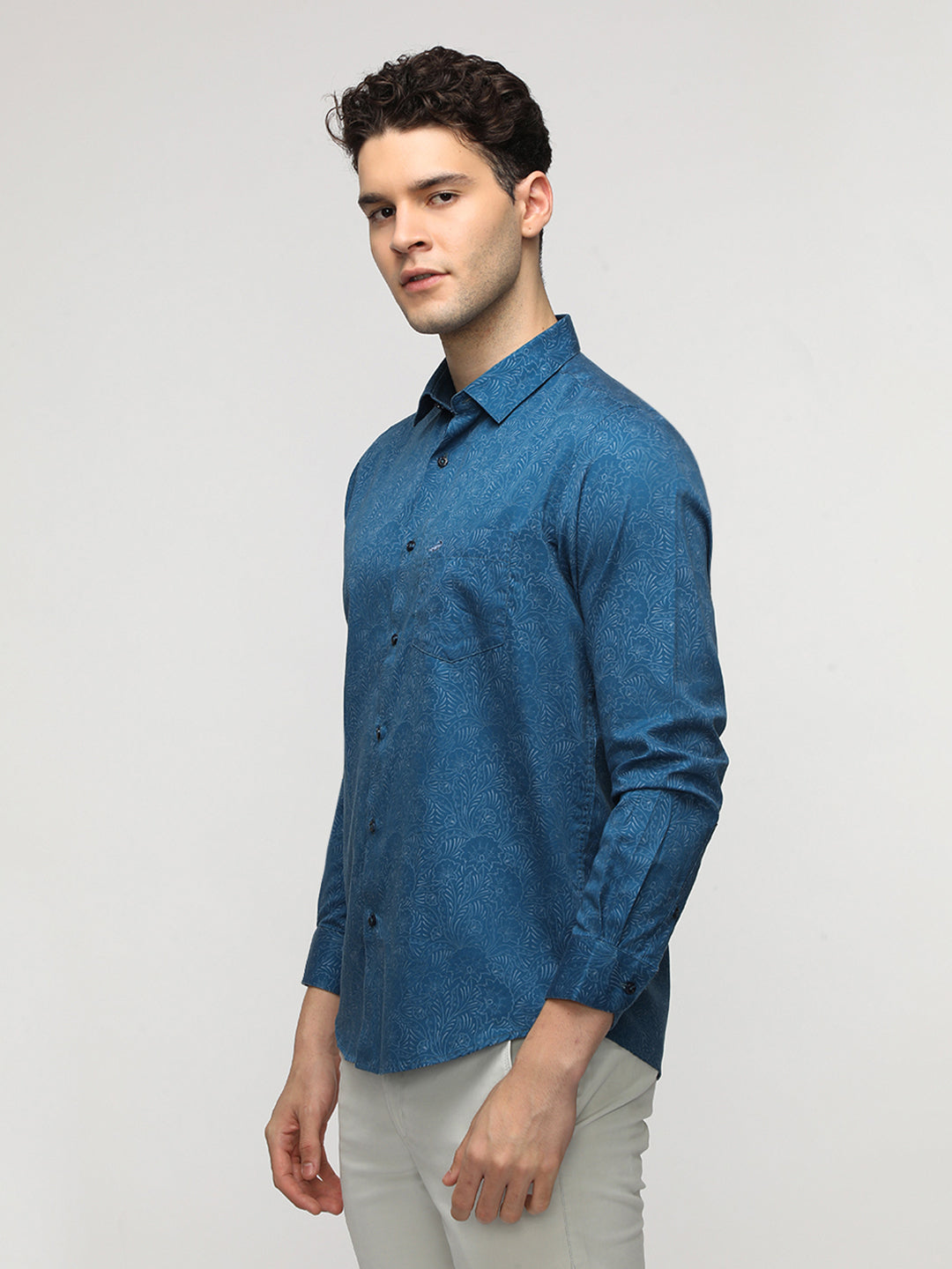 Blue Diamond Cut Texture Relax Fit Cotton Relaxed Fit Shirts