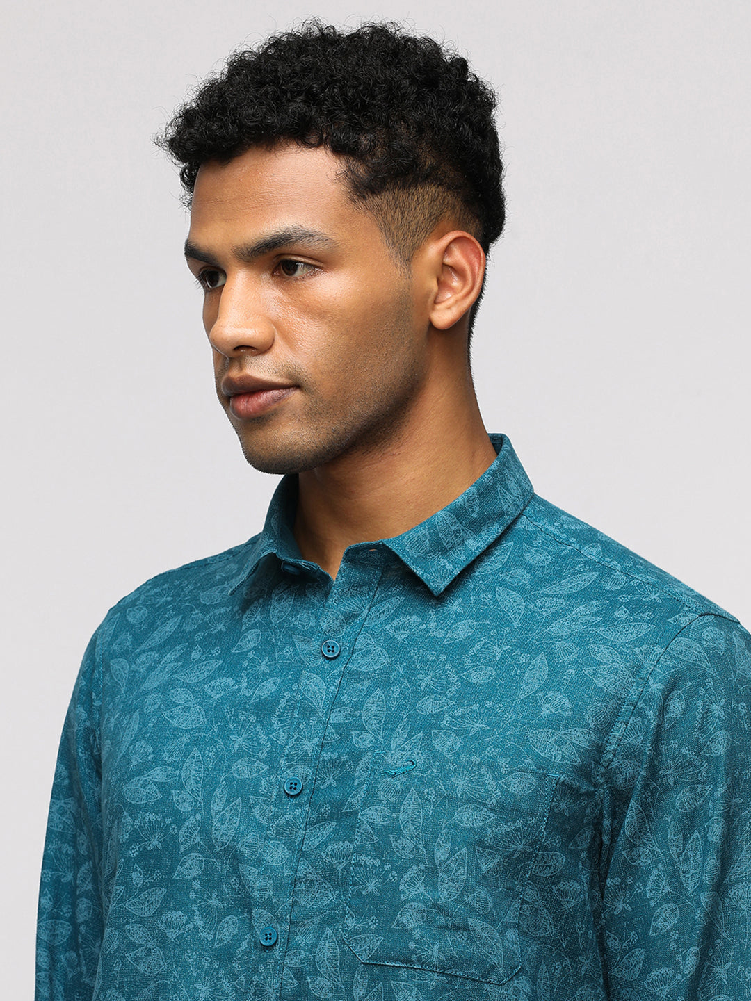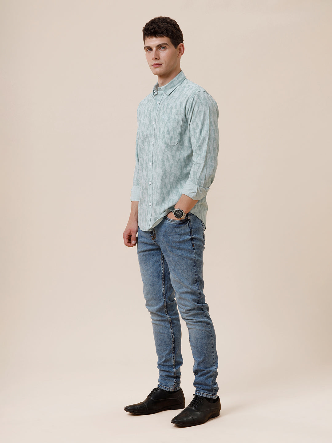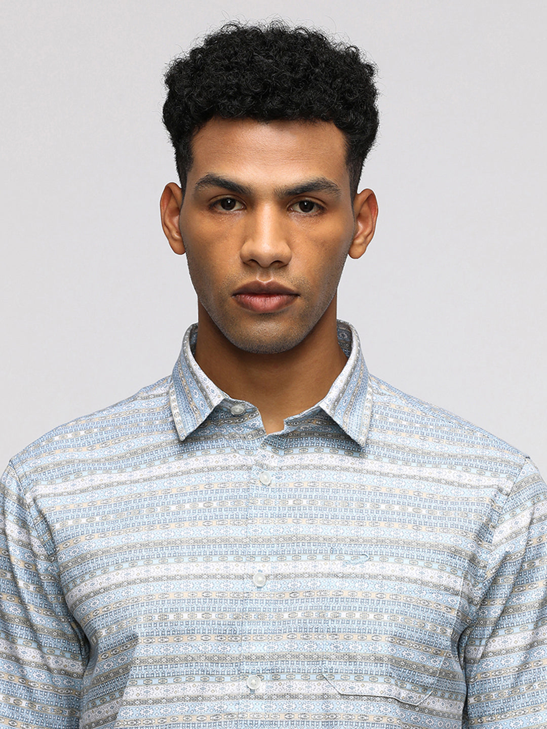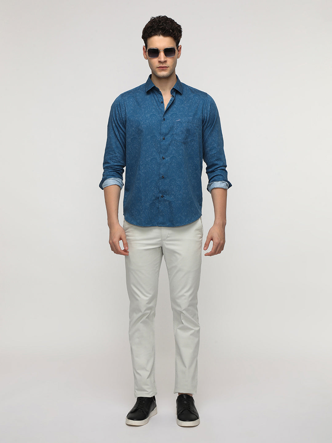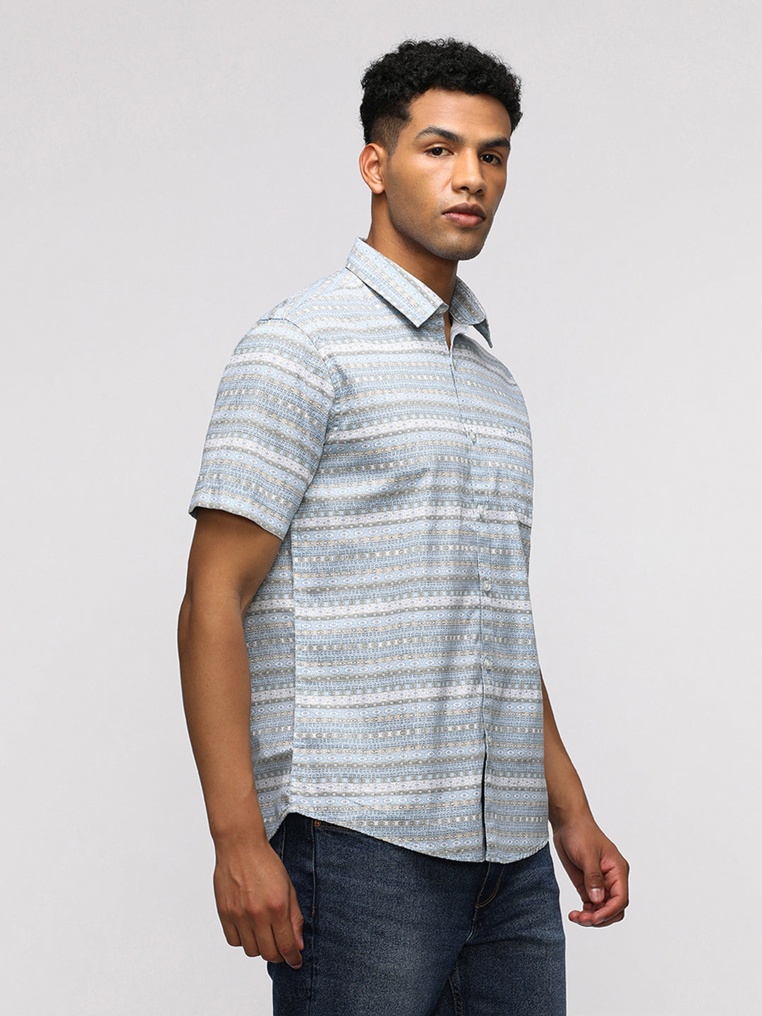 Blue Diamond Cut Texture Relax Fit Cotton Relaxed Fit Shirts