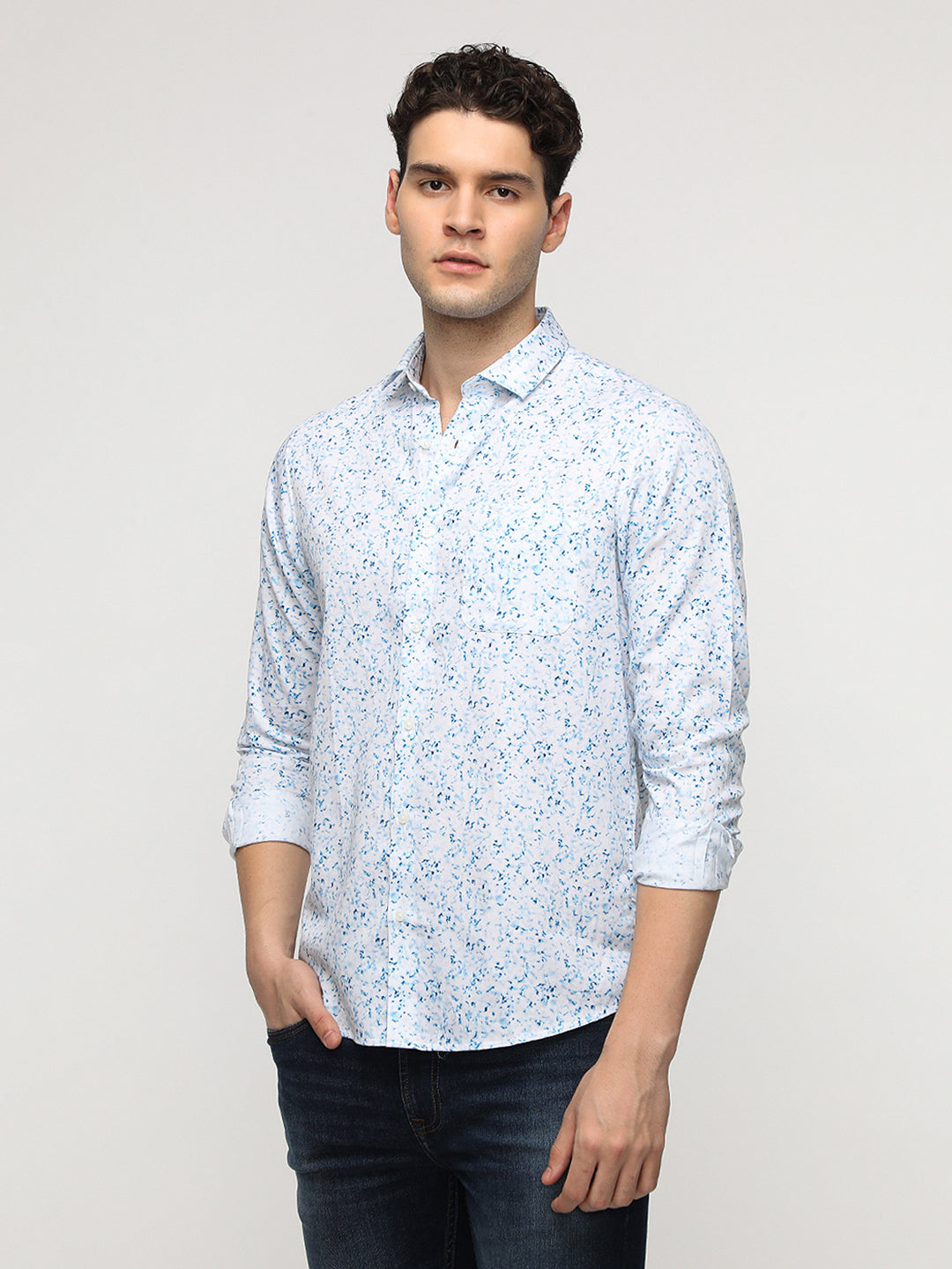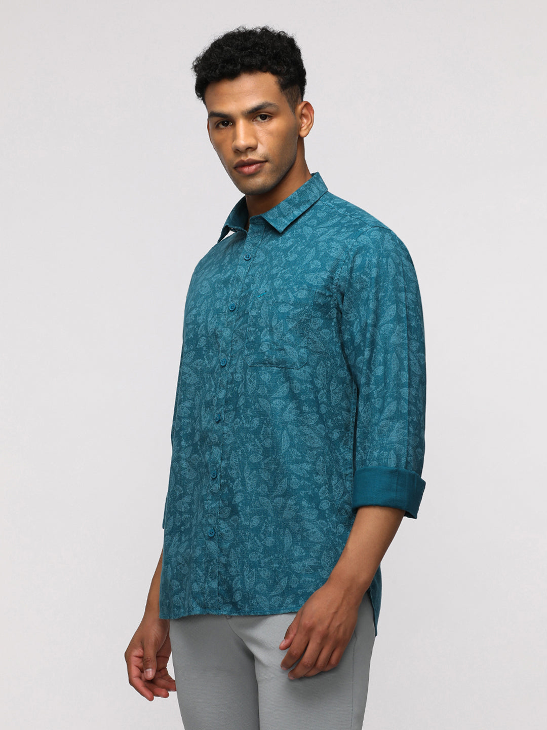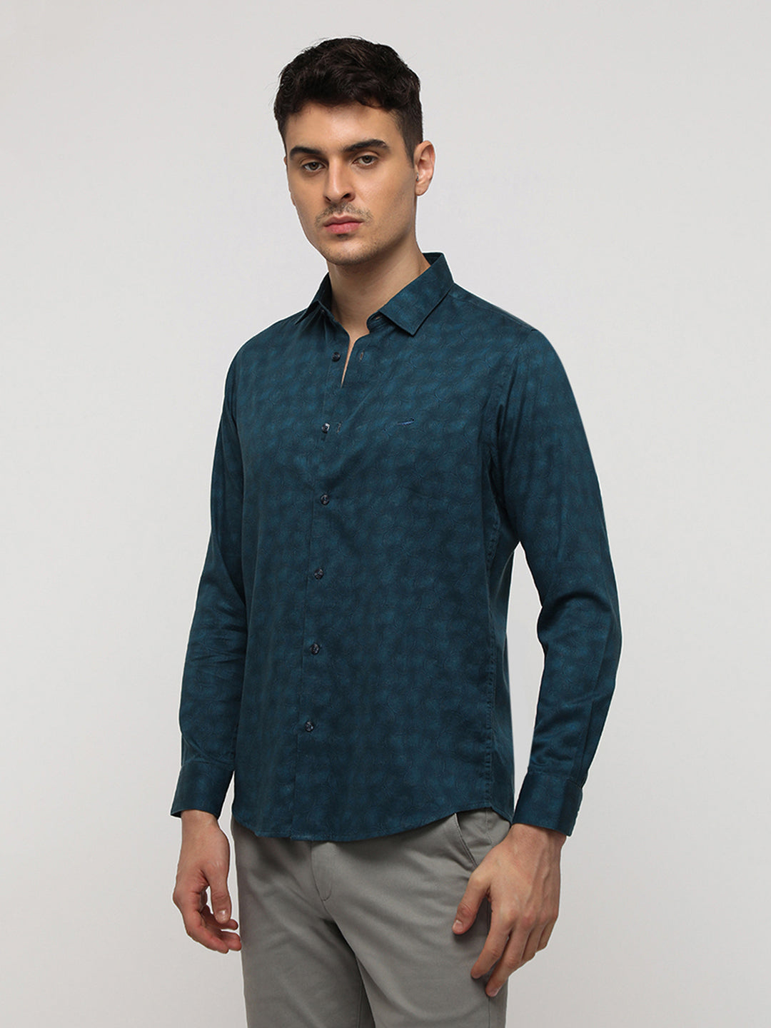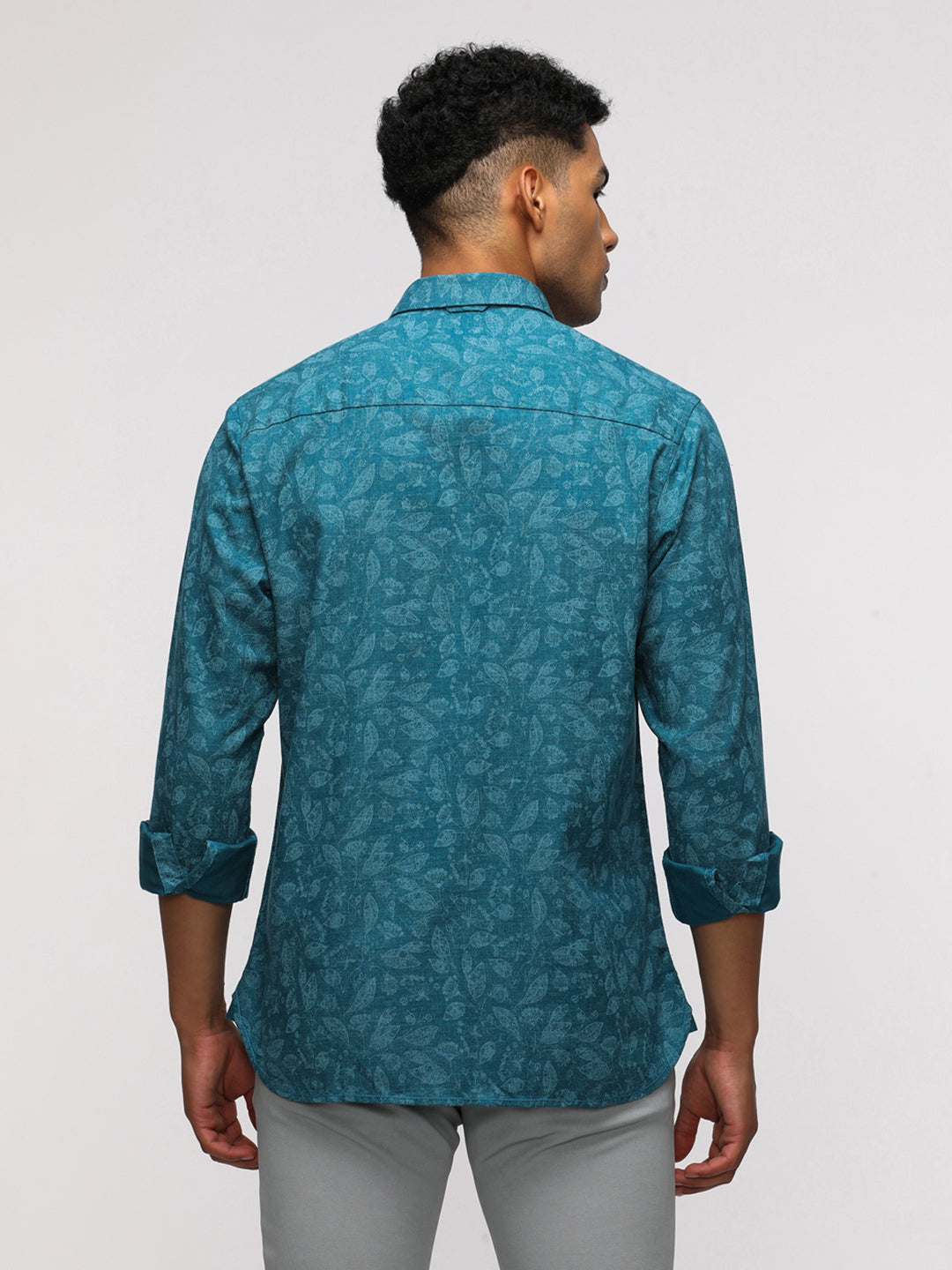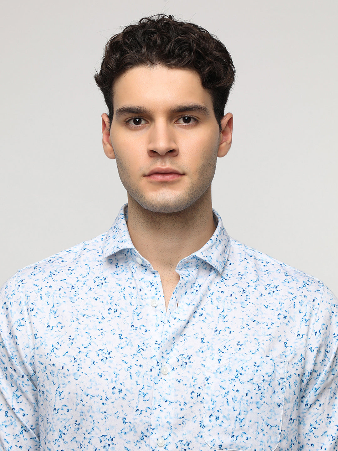 Blue Diamond Cut Texture Relax Fit Cotton Relaxed Fit Shirts
