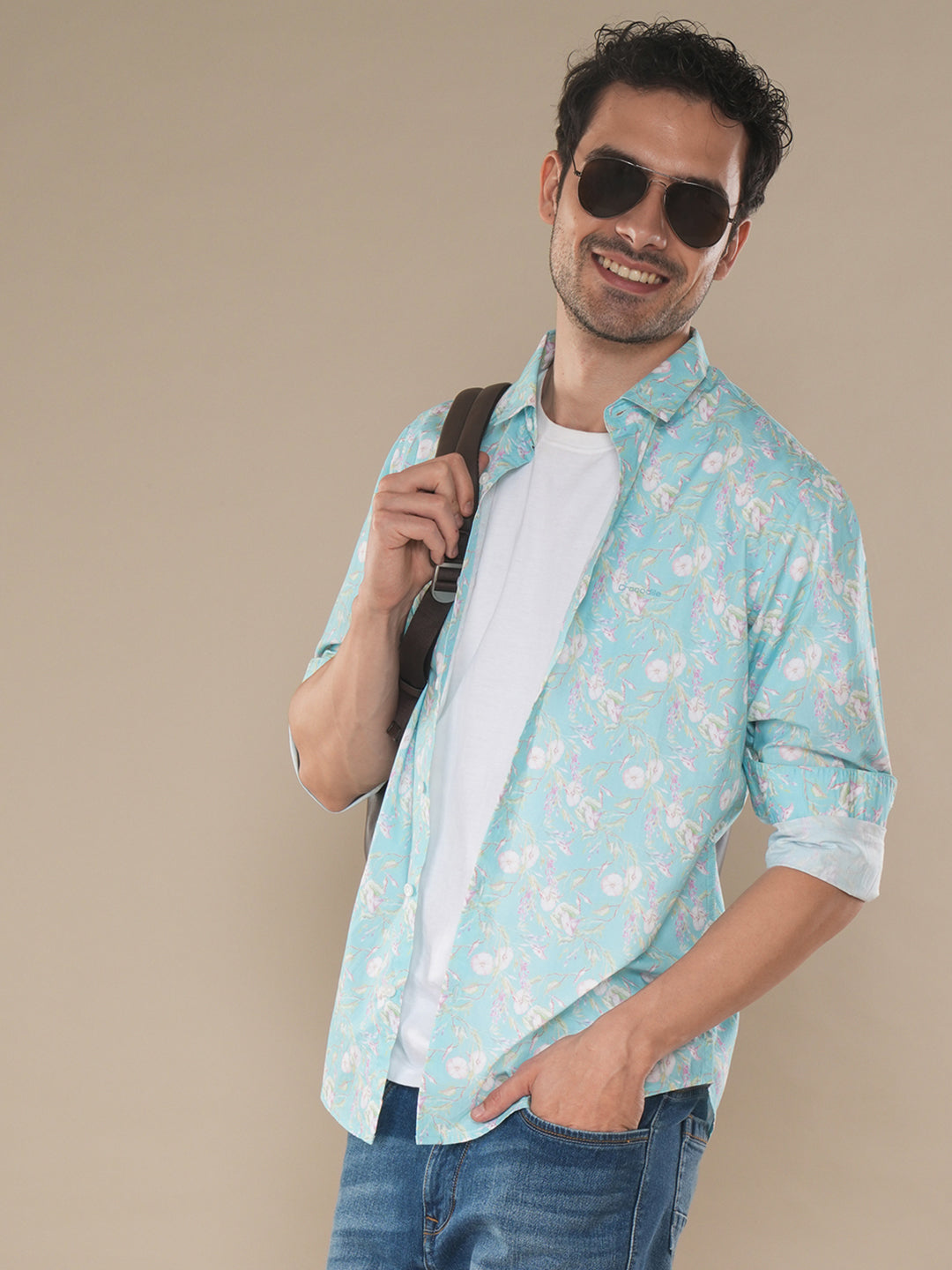 Comfort Fit Classic Light Teal Shirt for Casual Elegance