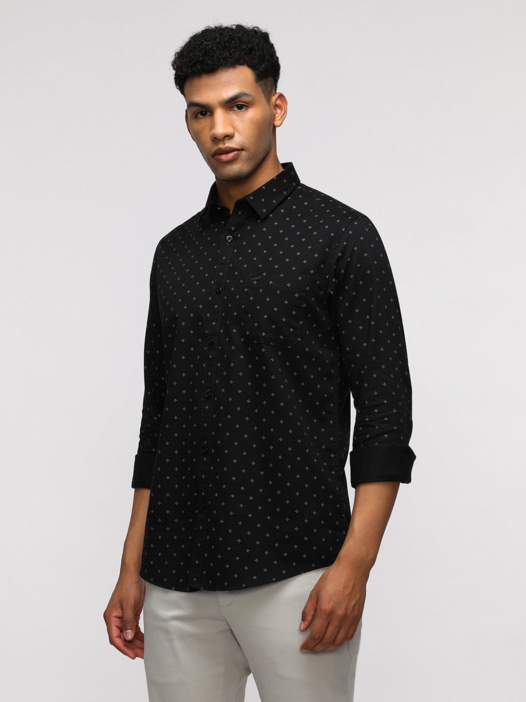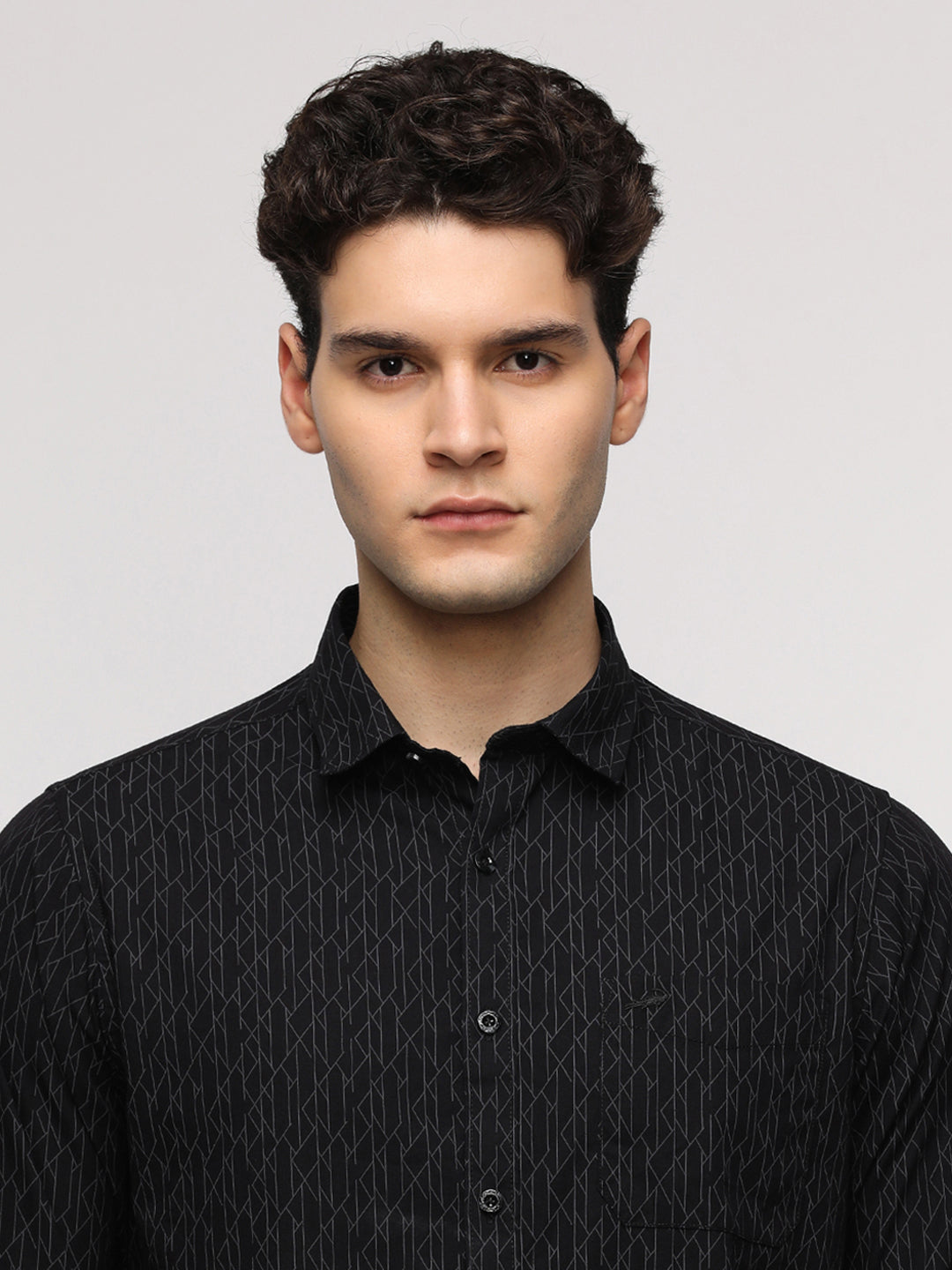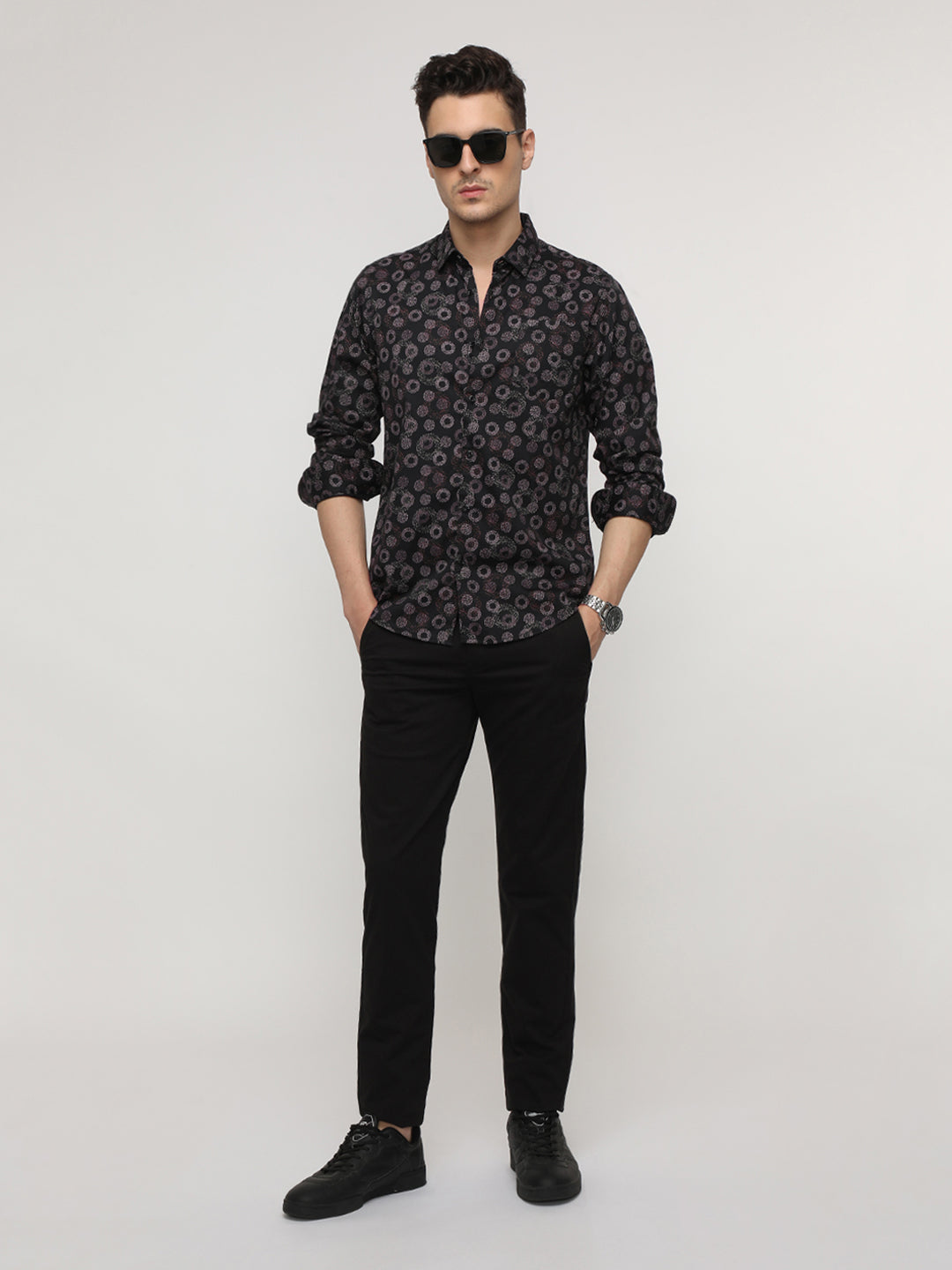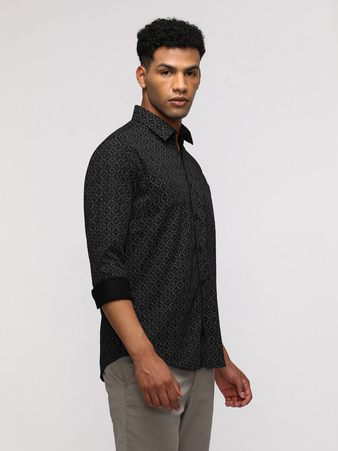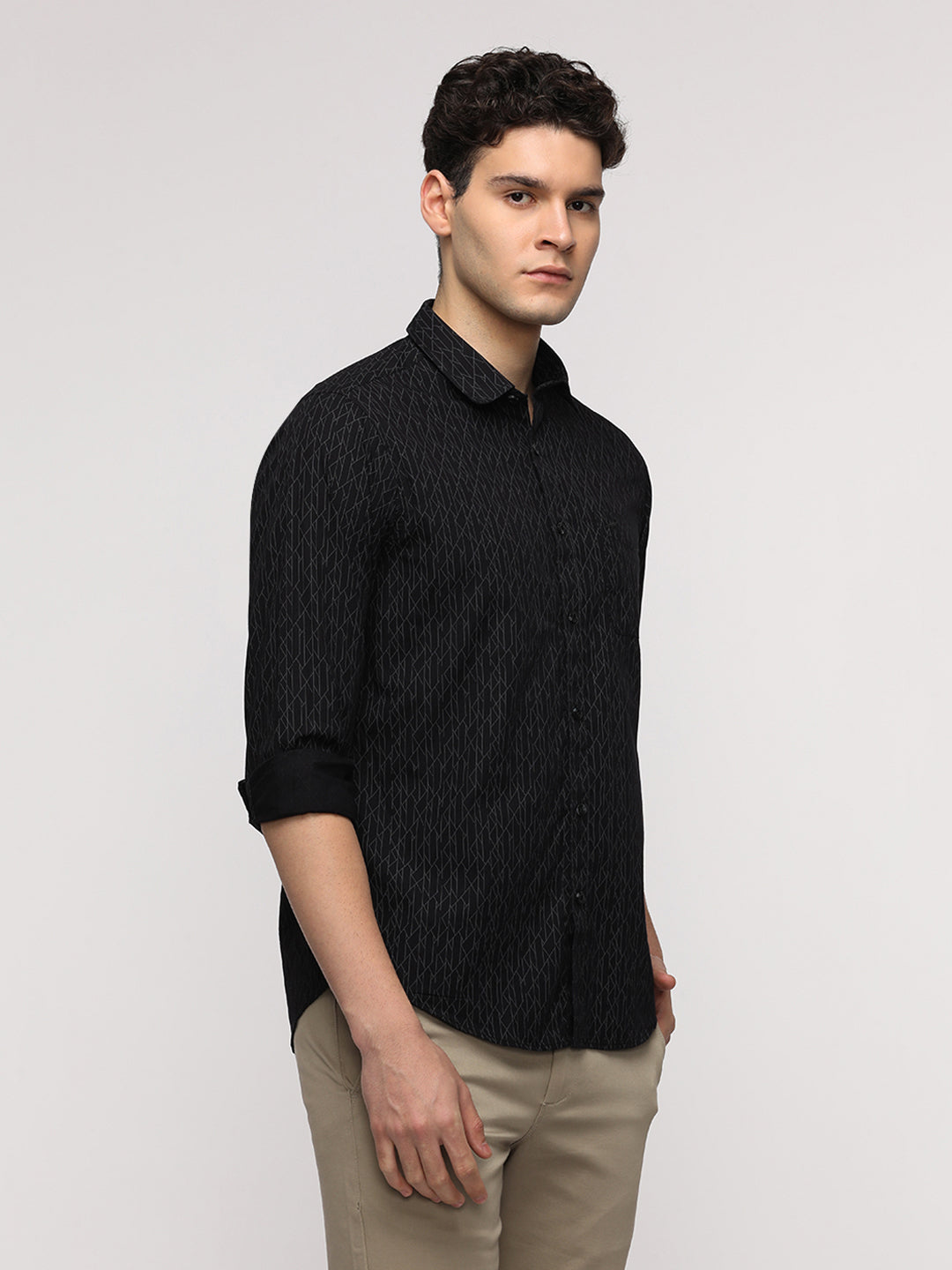 Black Printed Full Sleeve Casual 100% Cotton Shirt