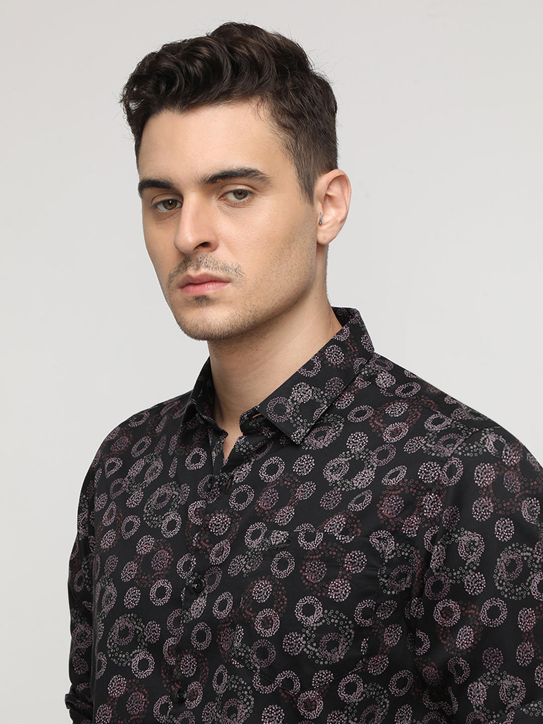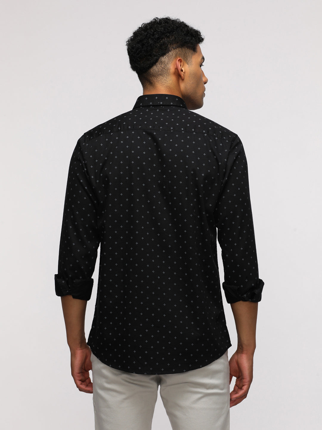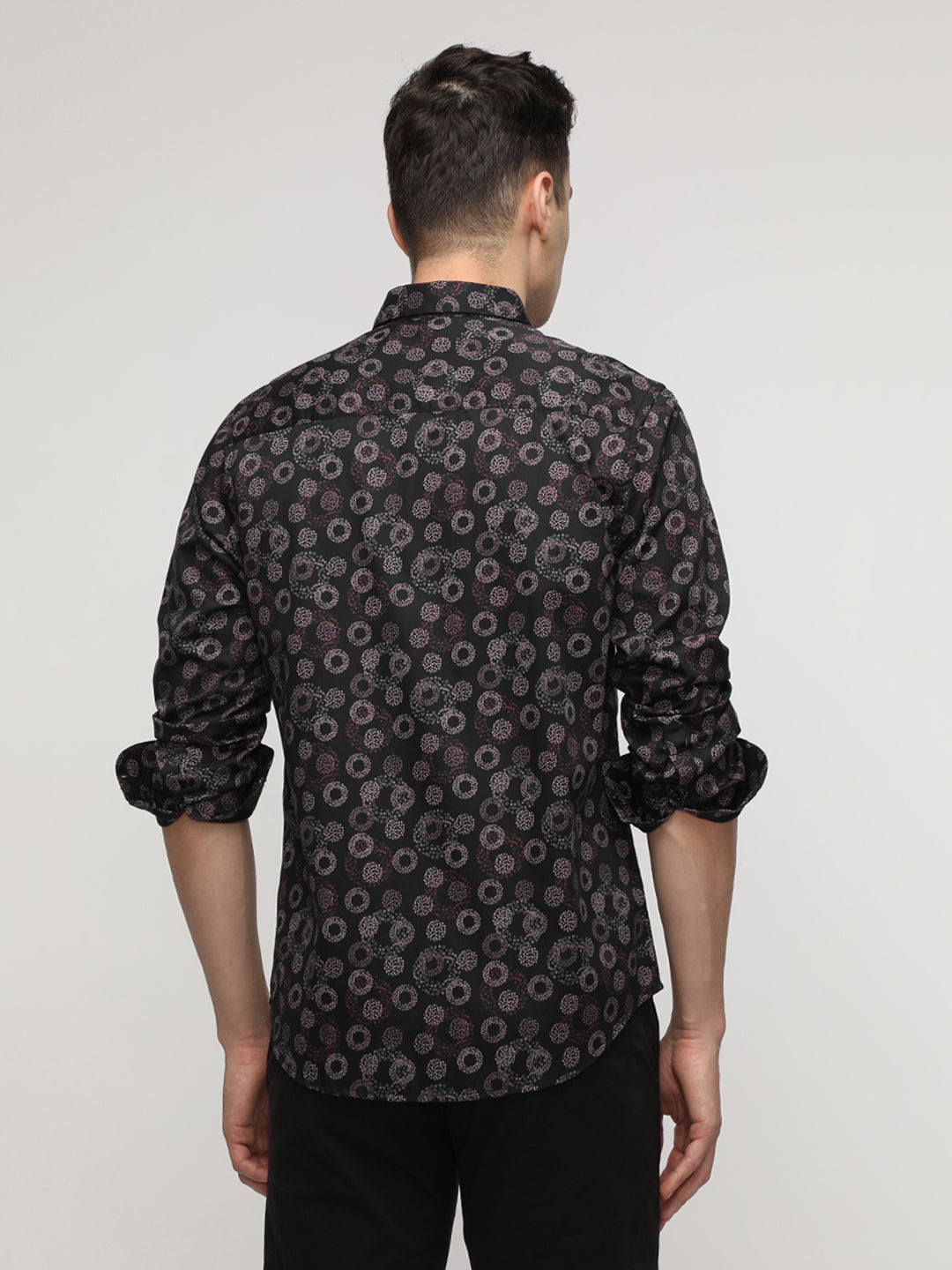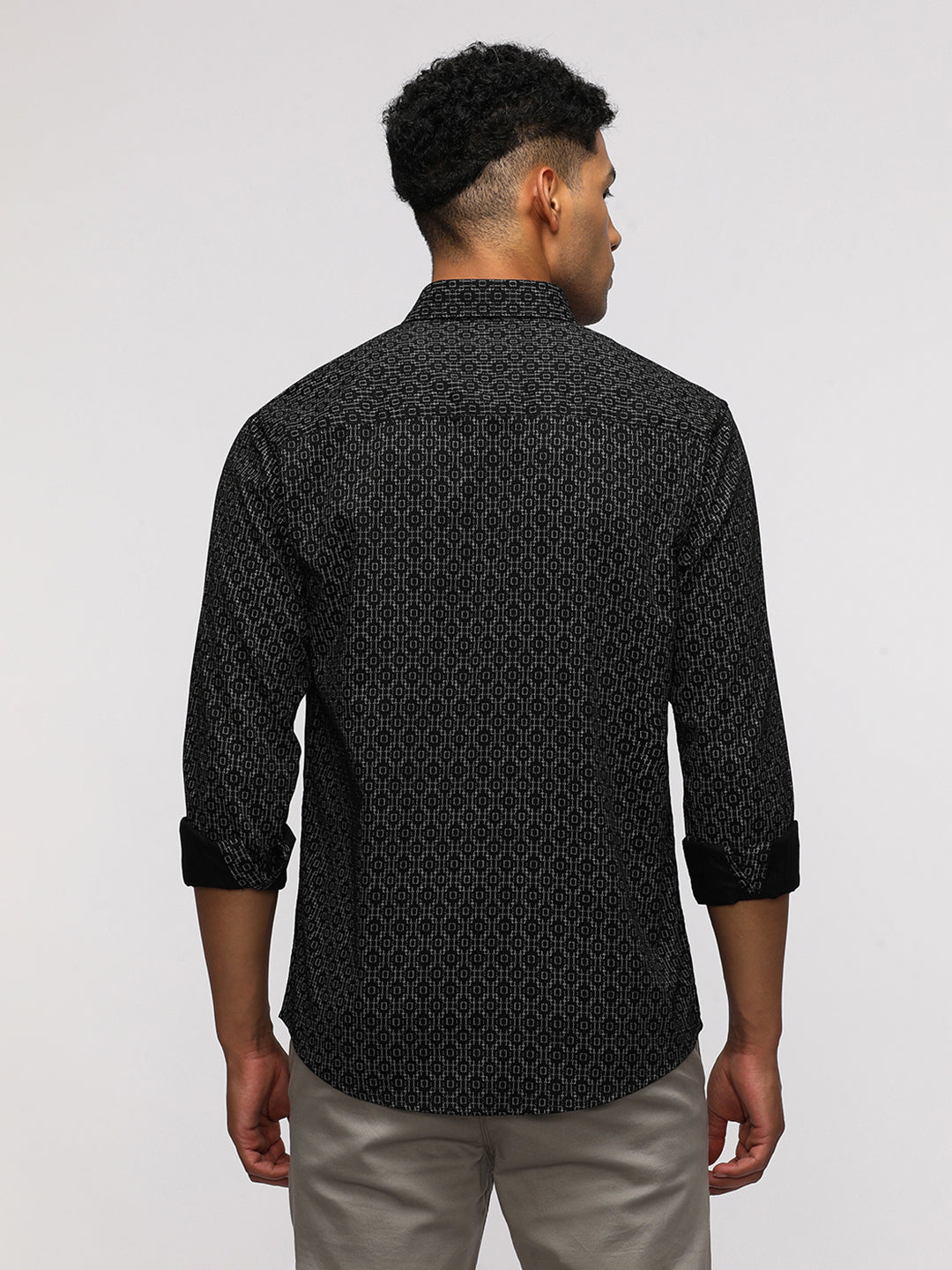 Black Printed Full Sleeve Casual 100% Cotton Shirt