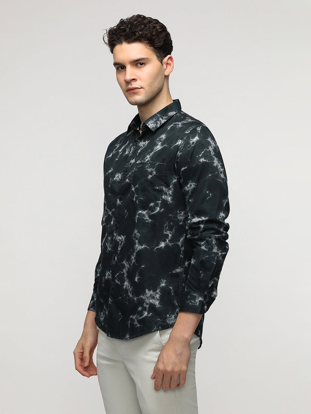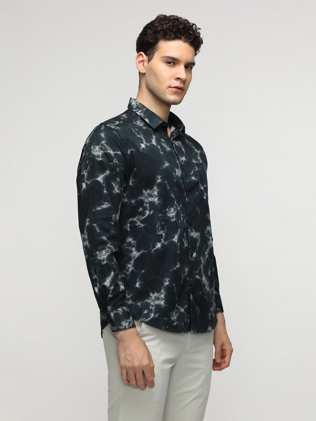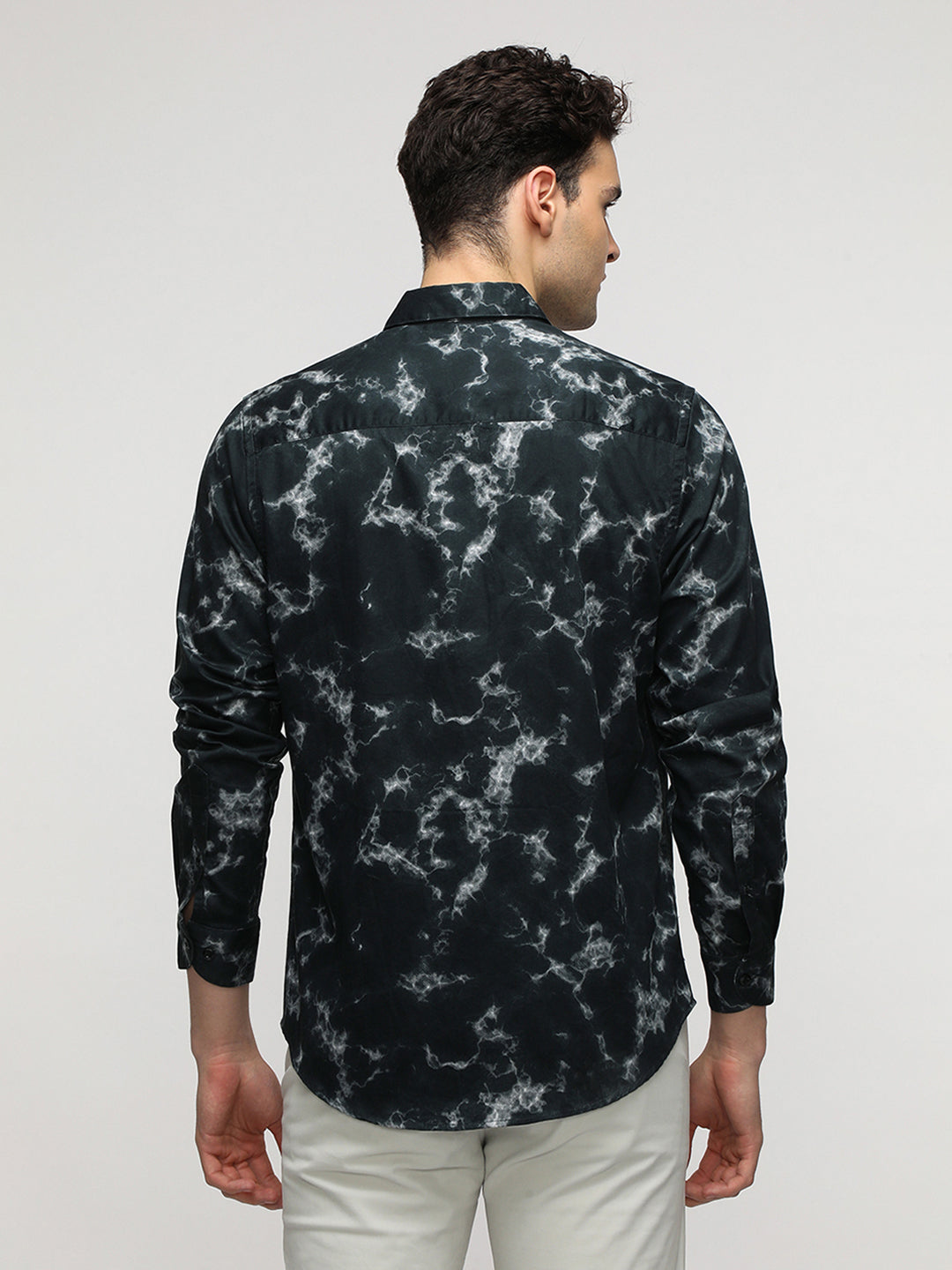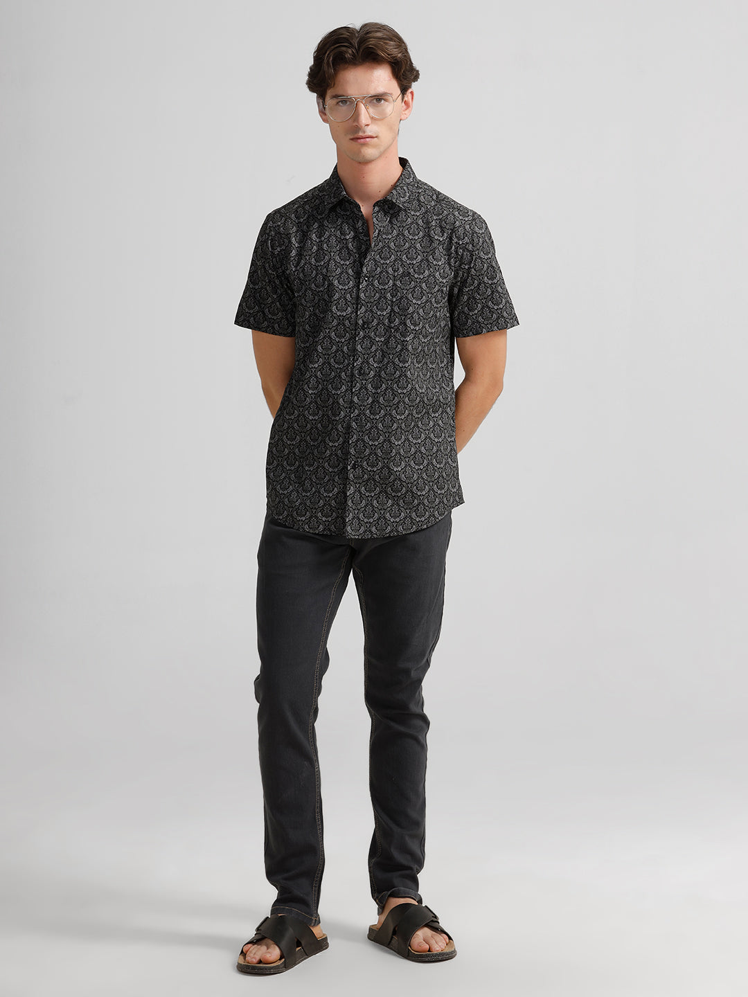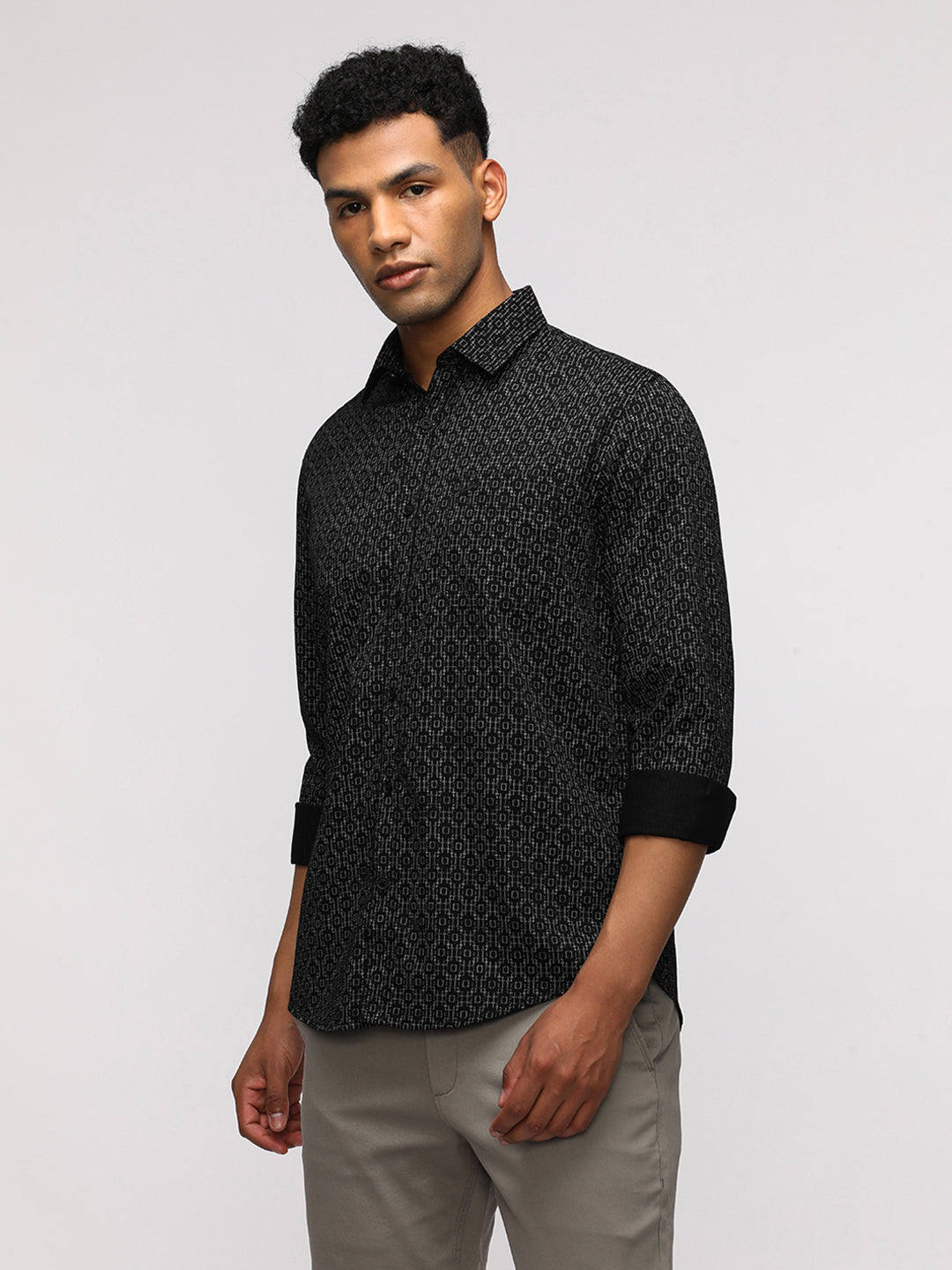 Black Printed Full Sleeve Casual 100% Cotton Shirt