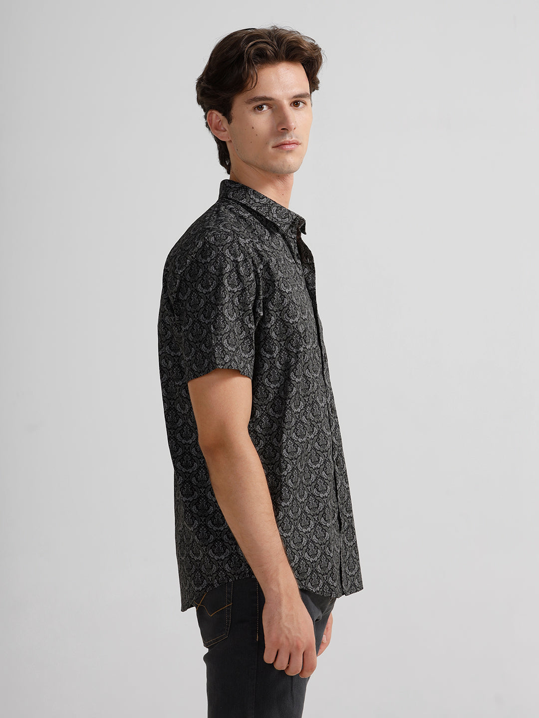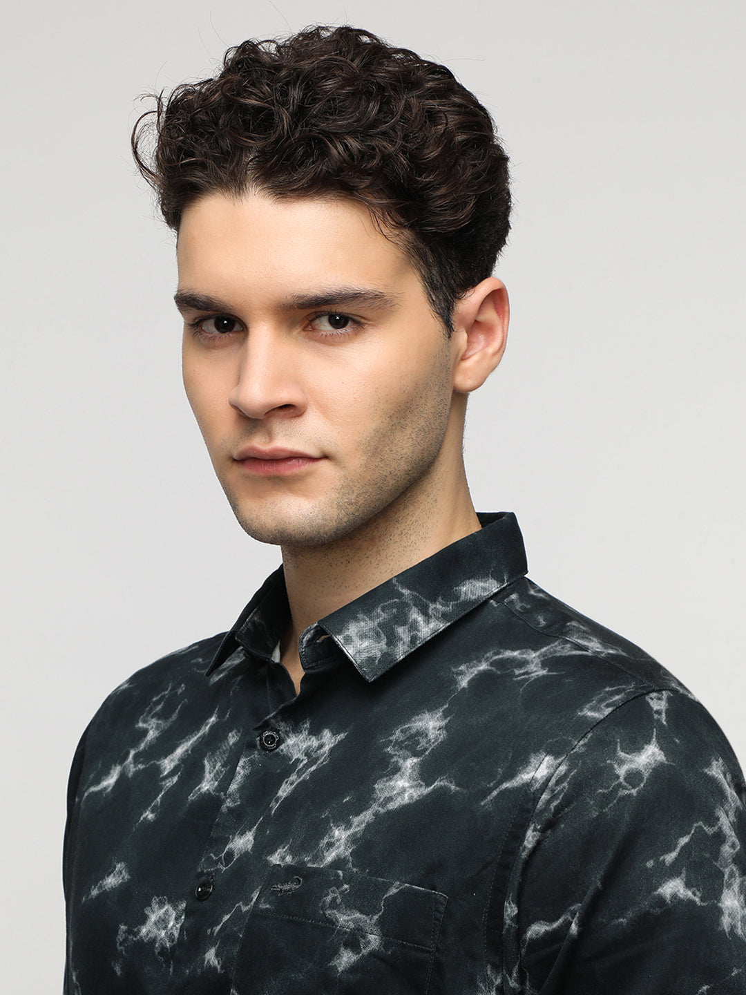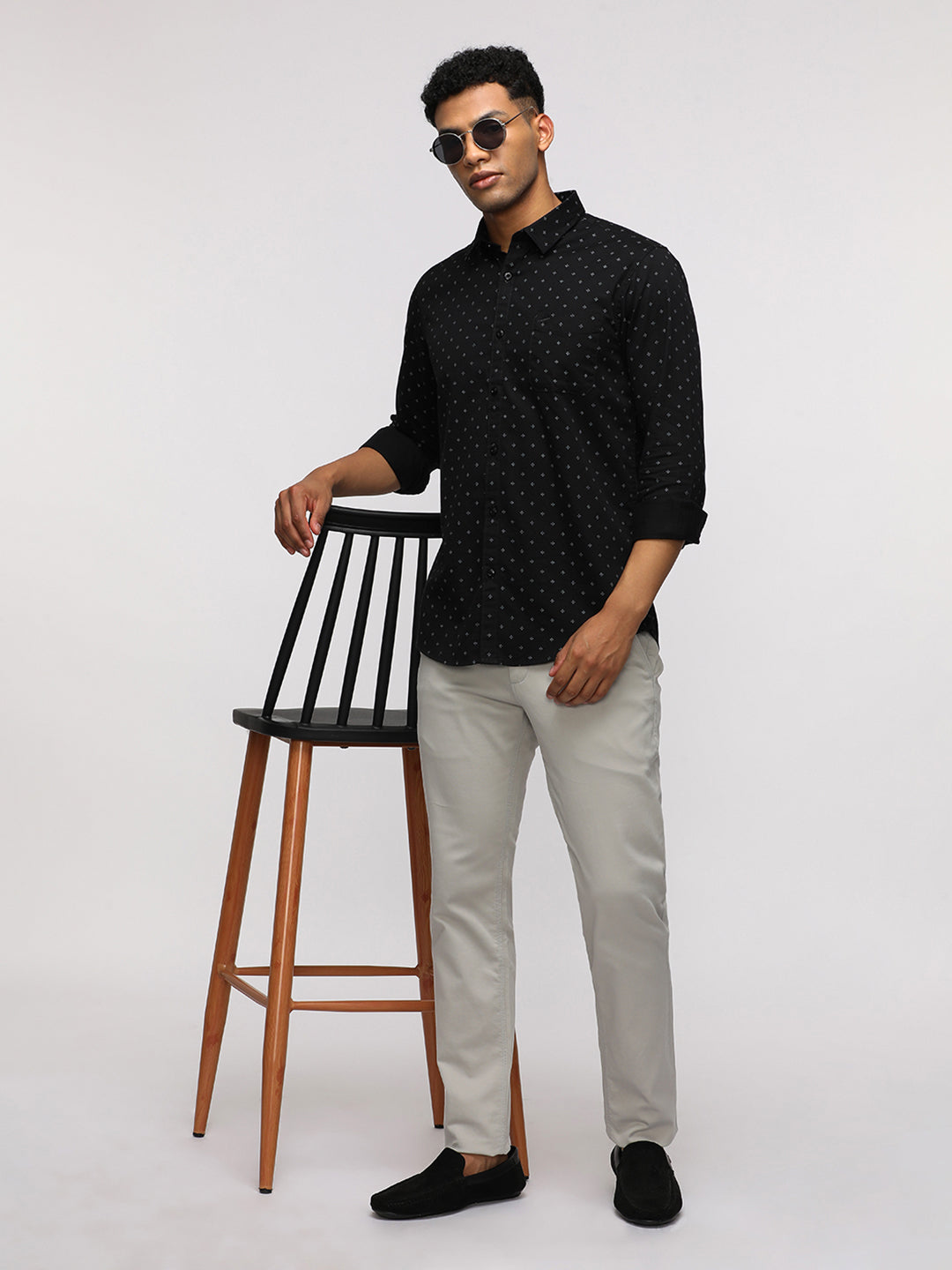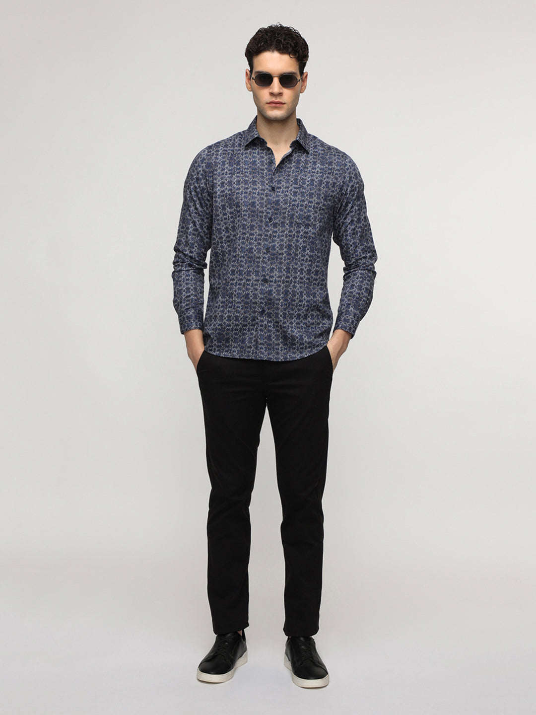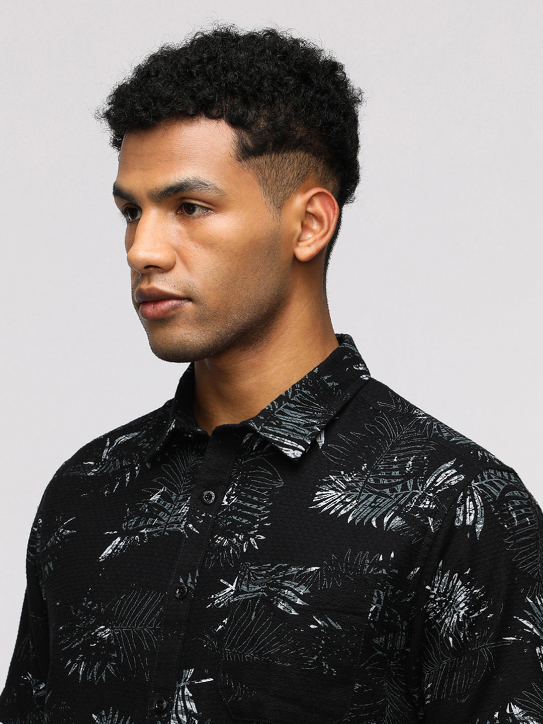 Black Printed Full Sleeve Casual 100% Cotton Shirt