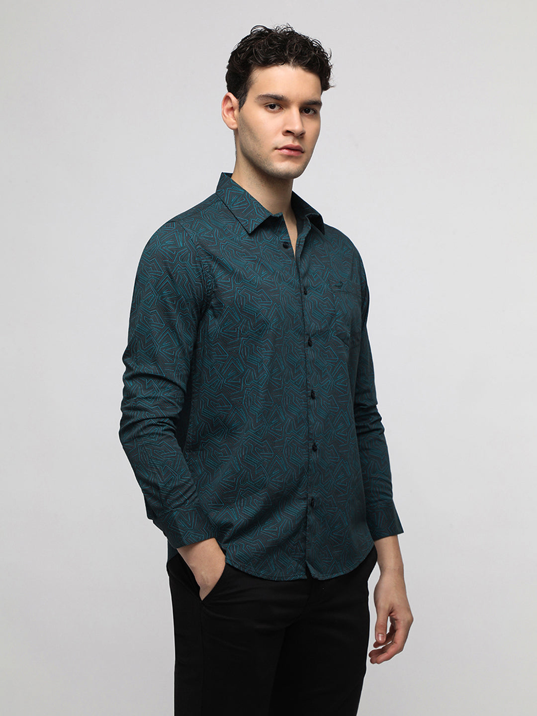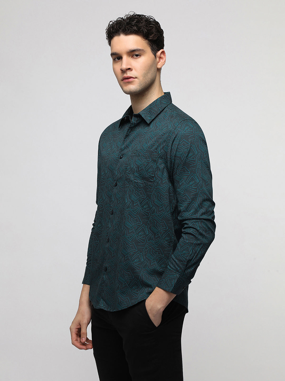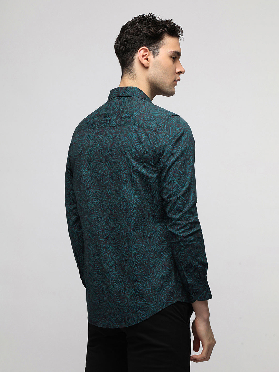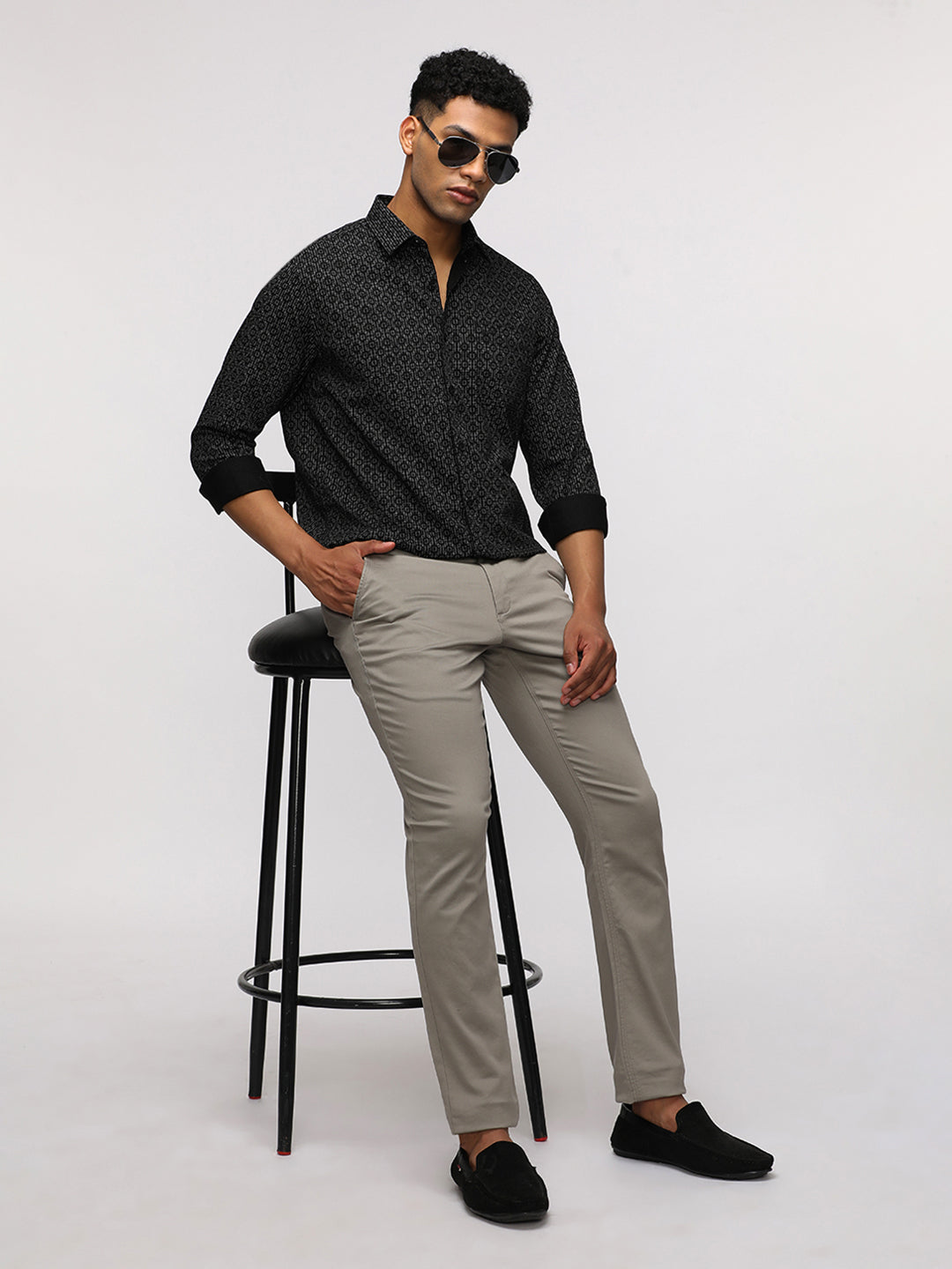 Black Printed Full Sleeve Casual 100% Cotton Shirt