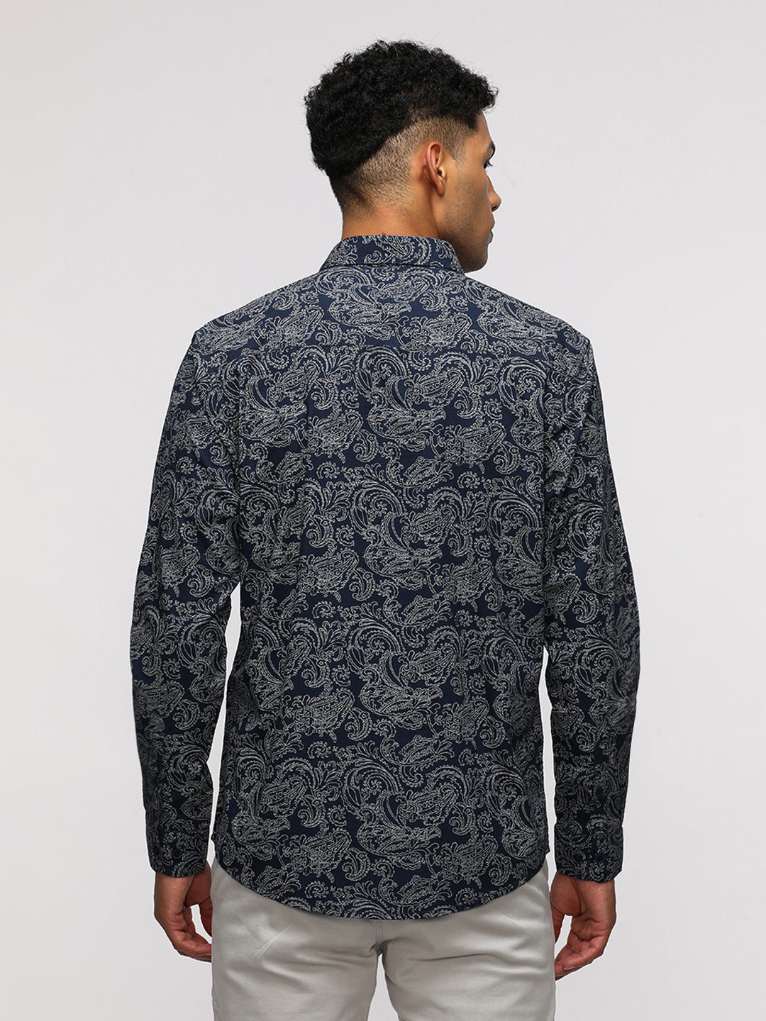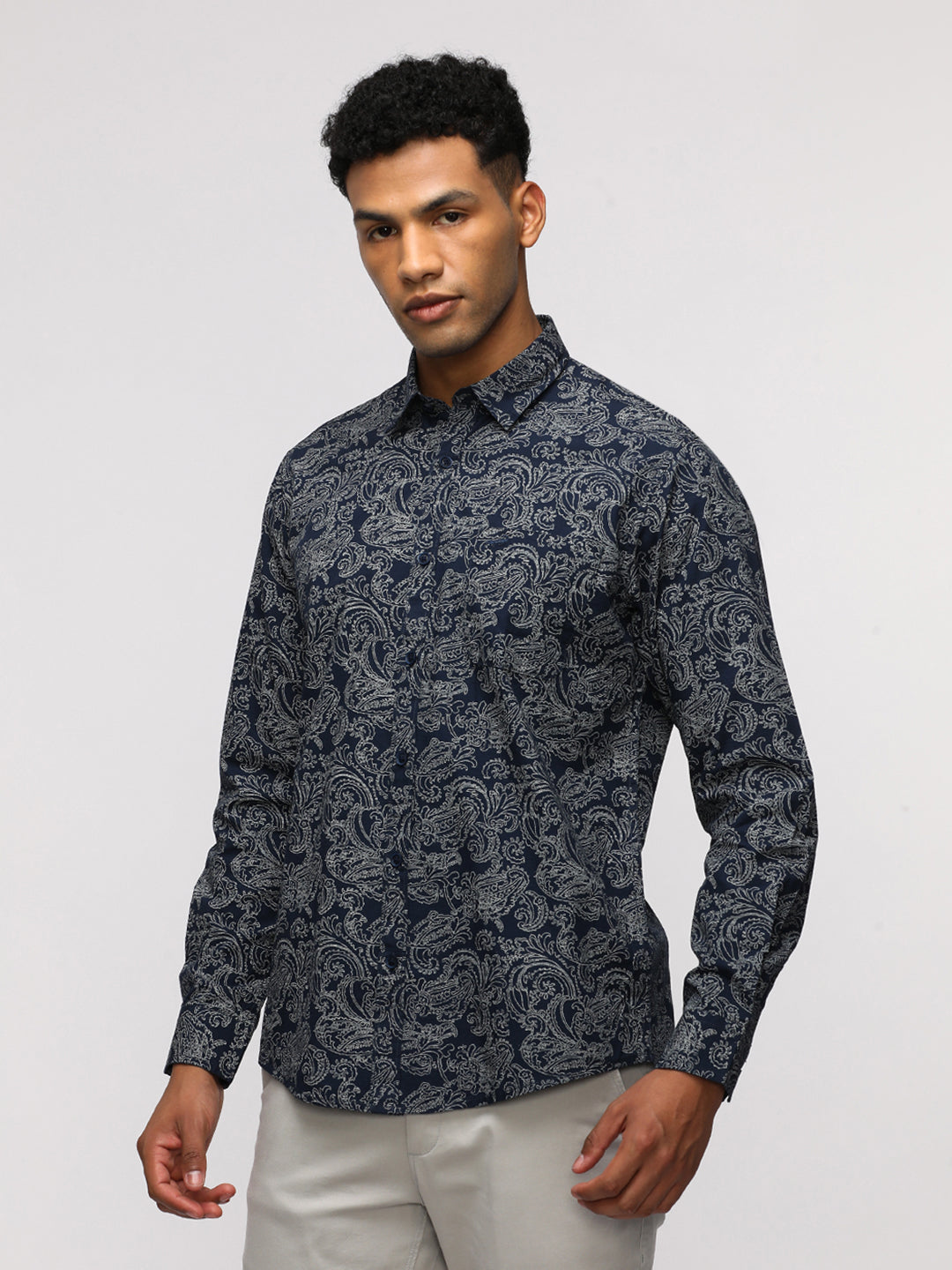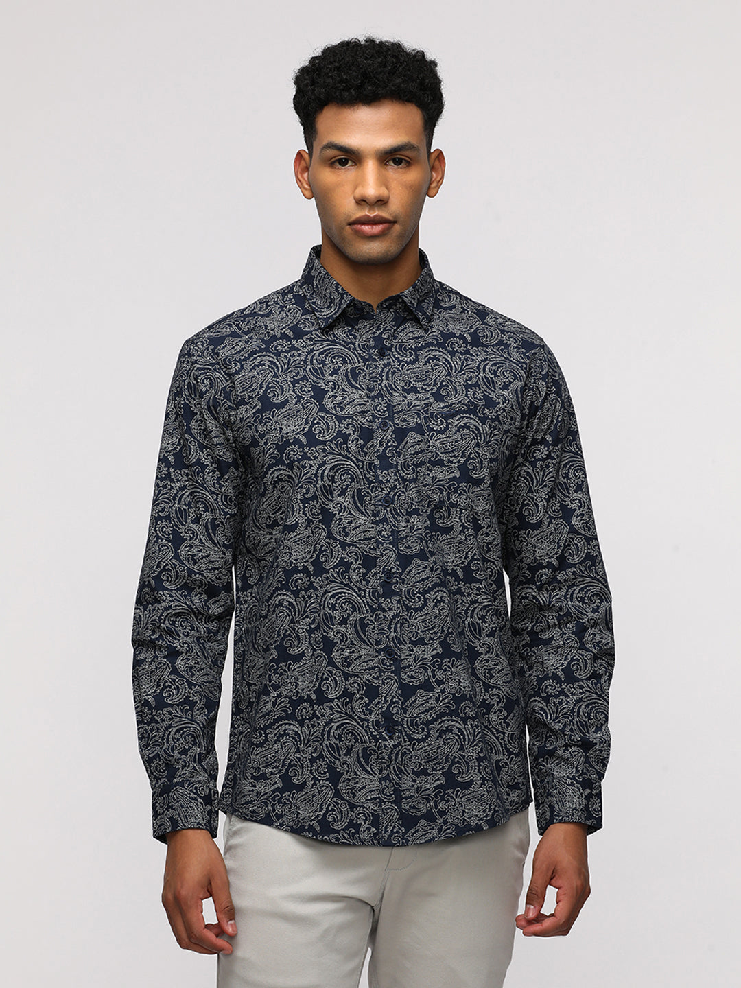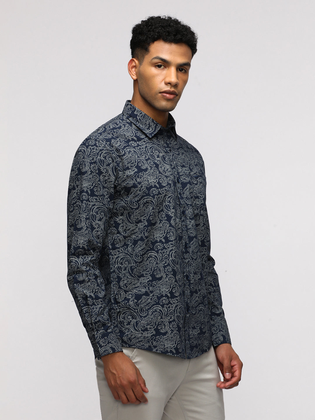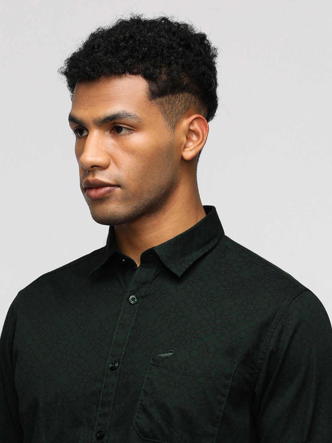 Black Printed Full Sleeve Casual 100% Cotton Shirt