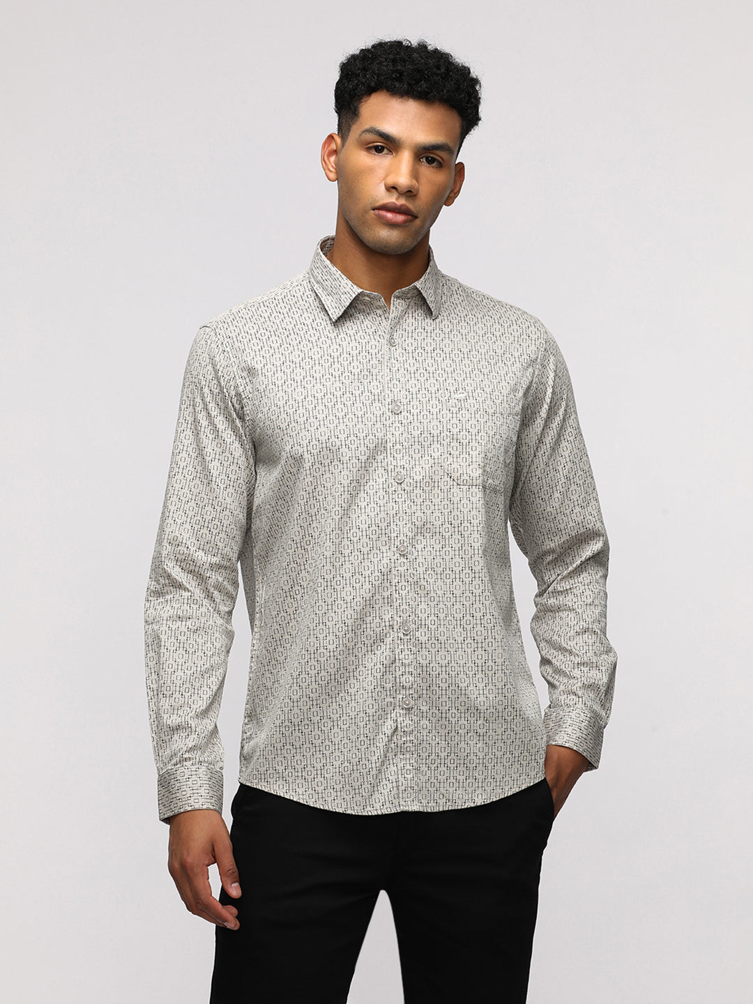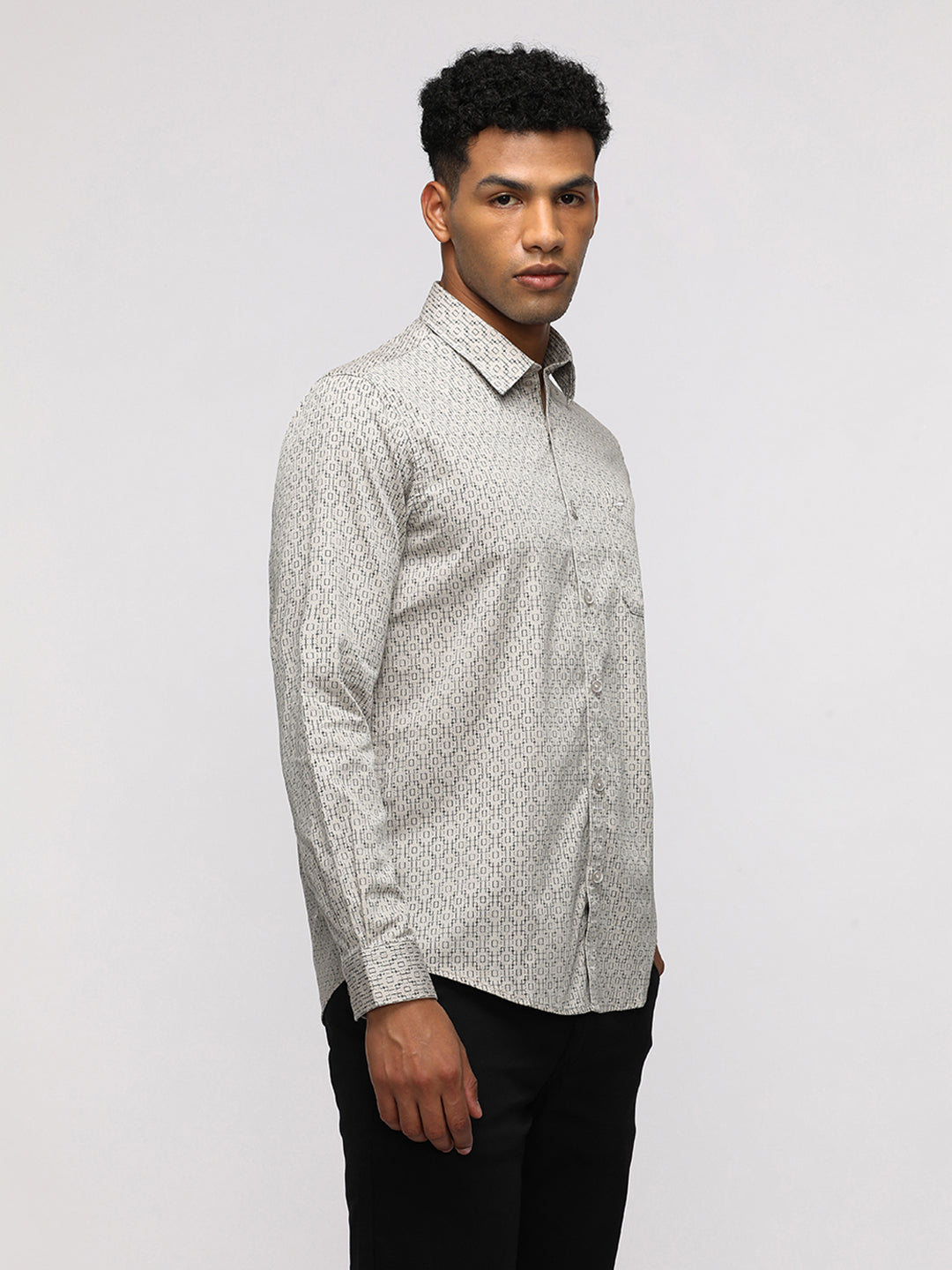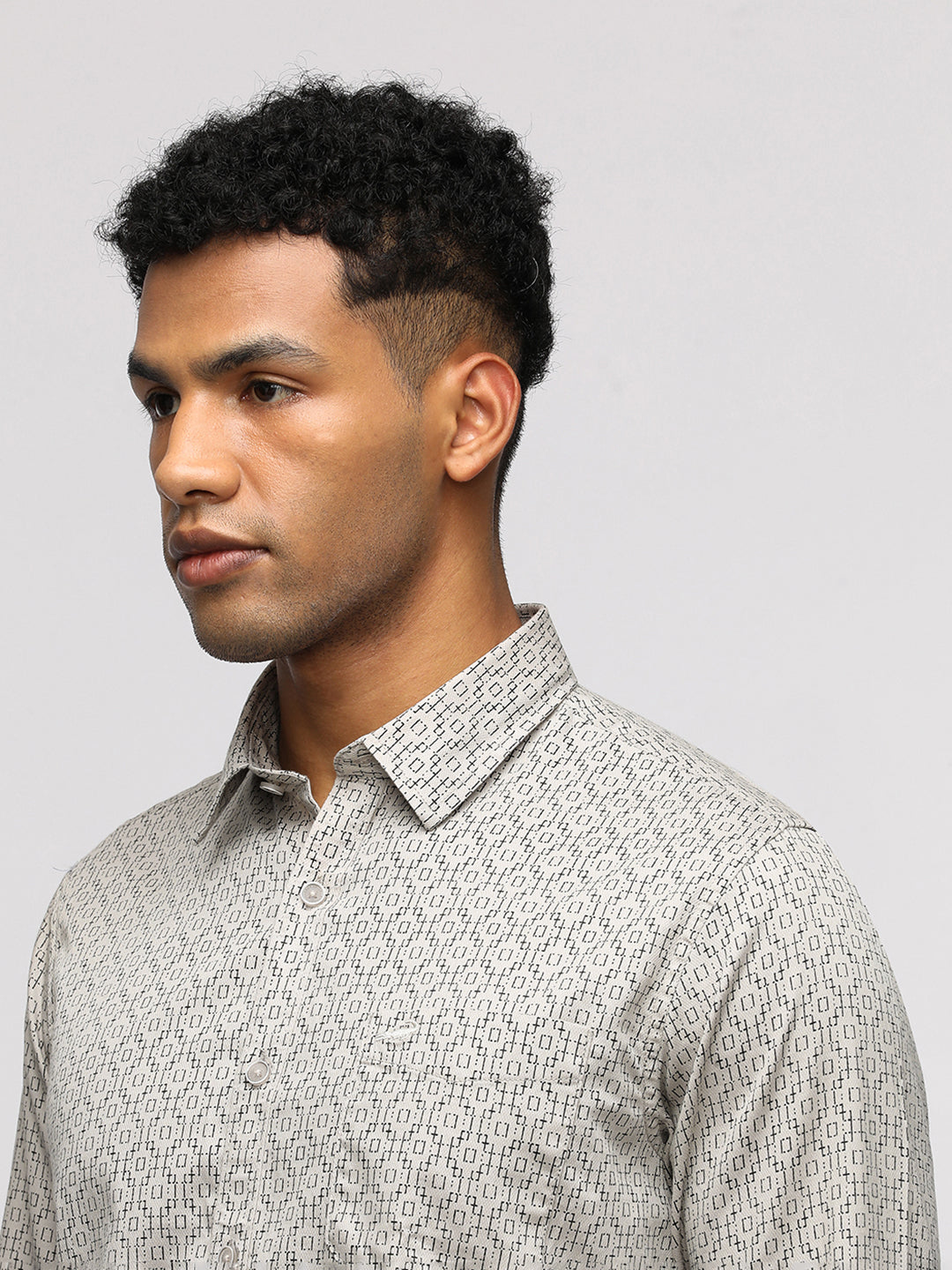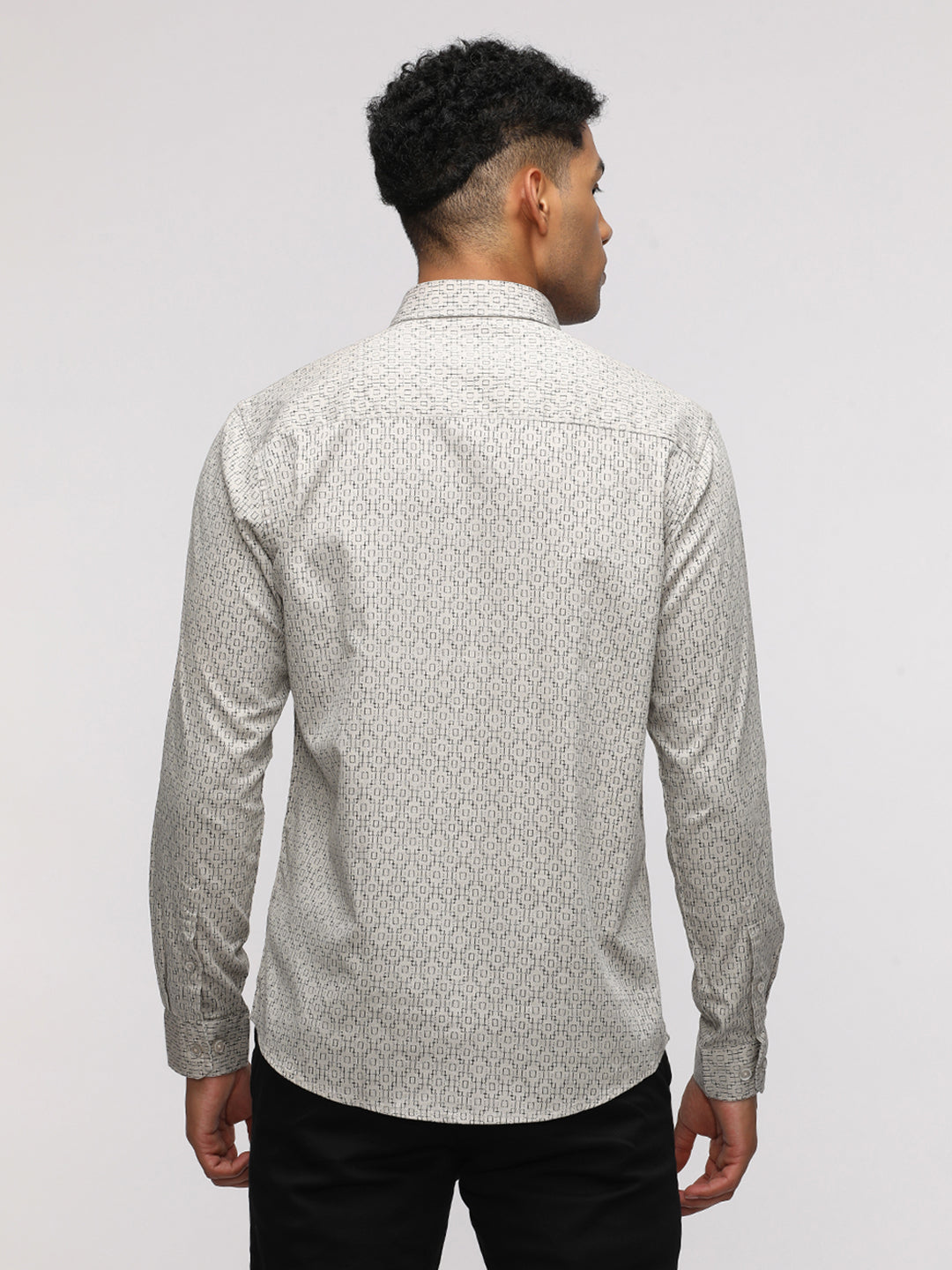 Cream Abstract Print Nylon Textured Fabric Relax Fit Relaxed Fit Shirts