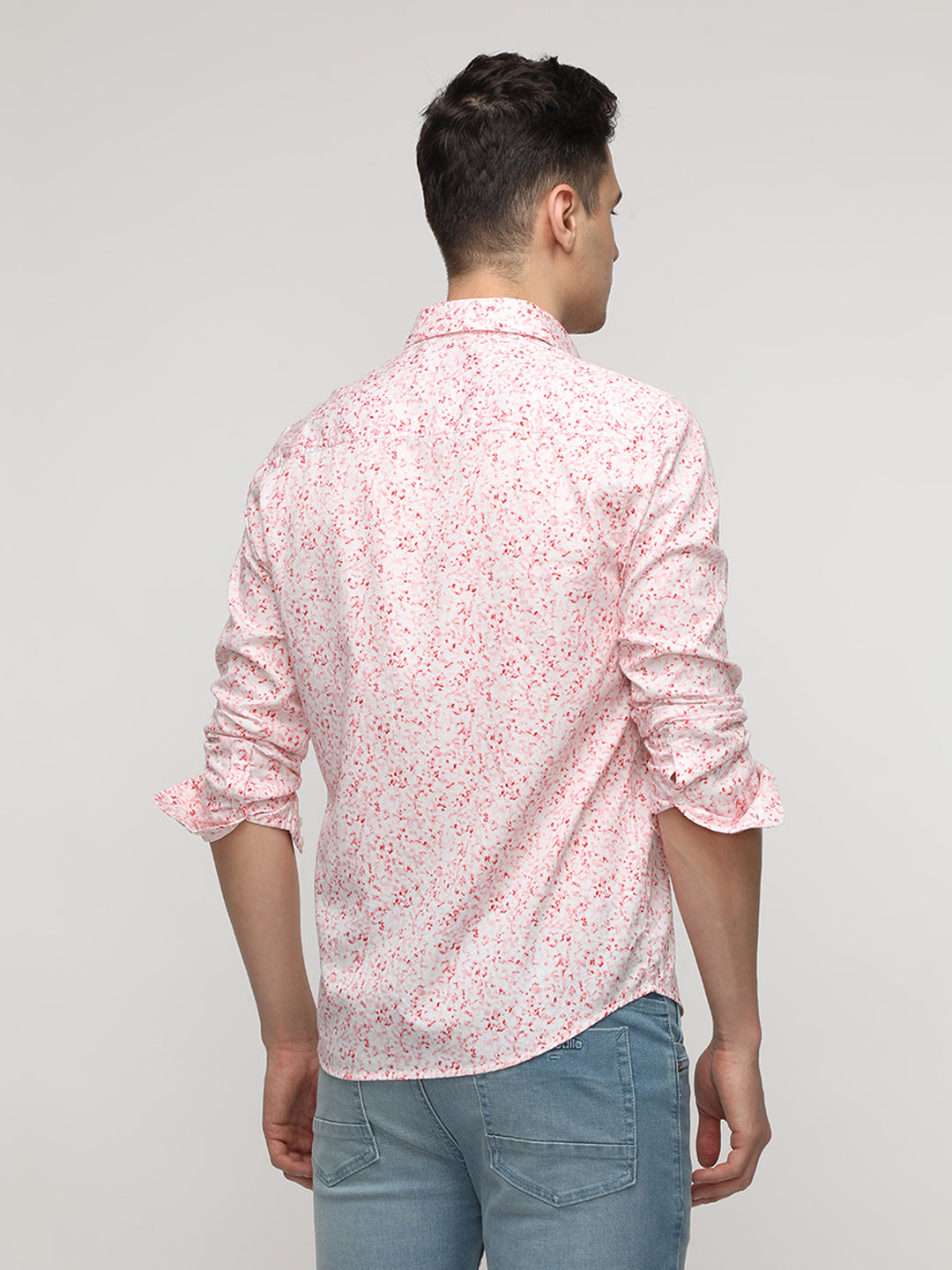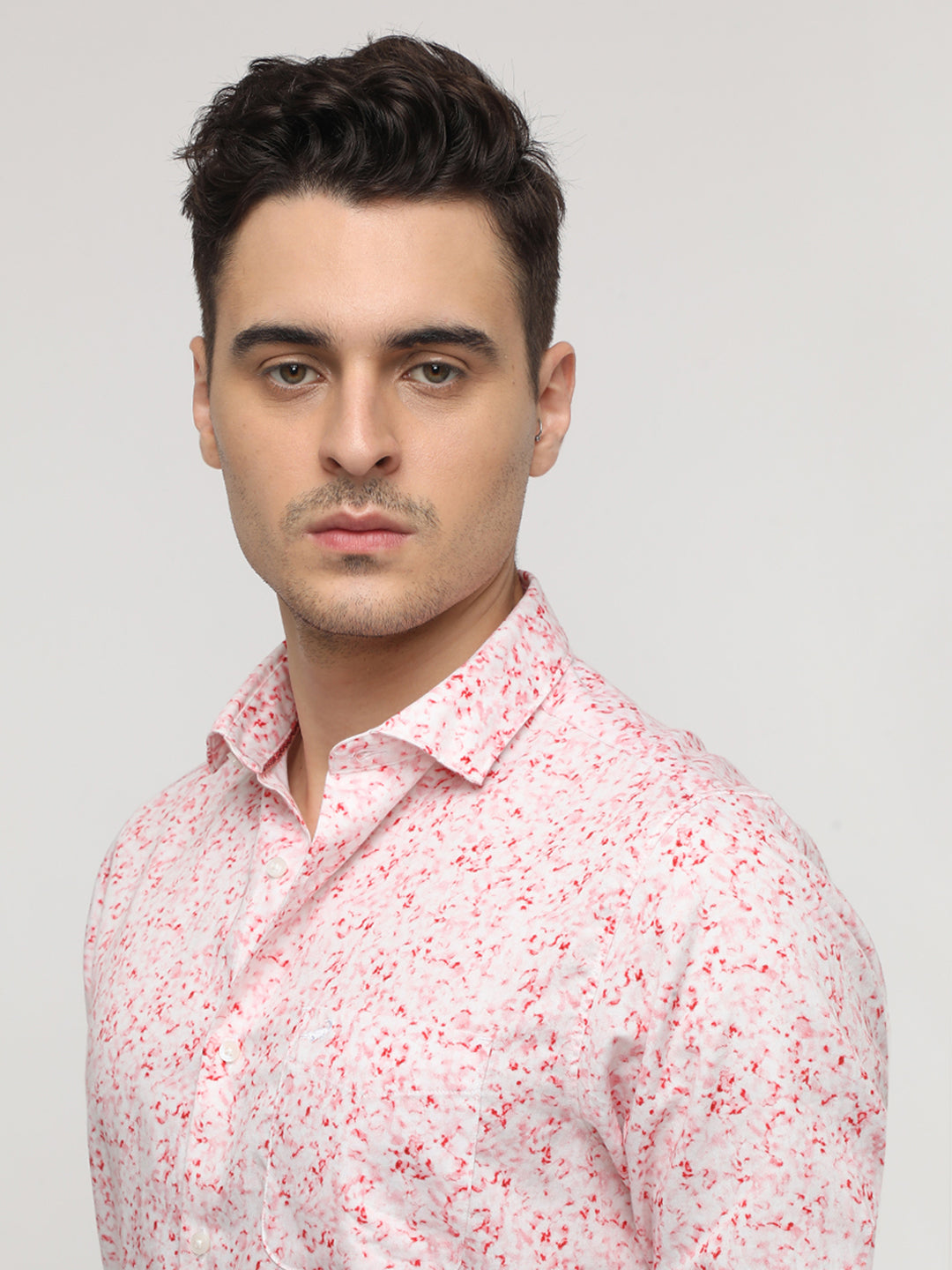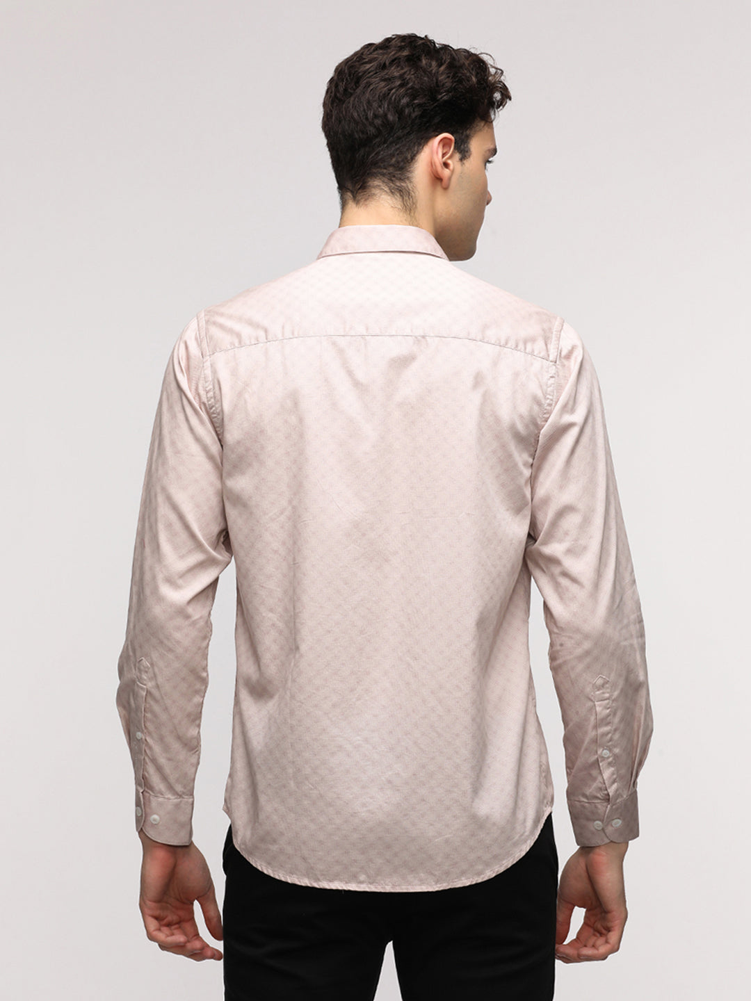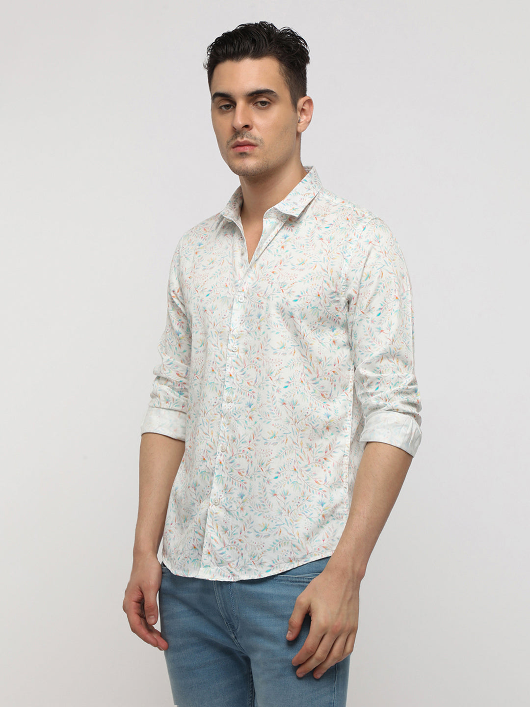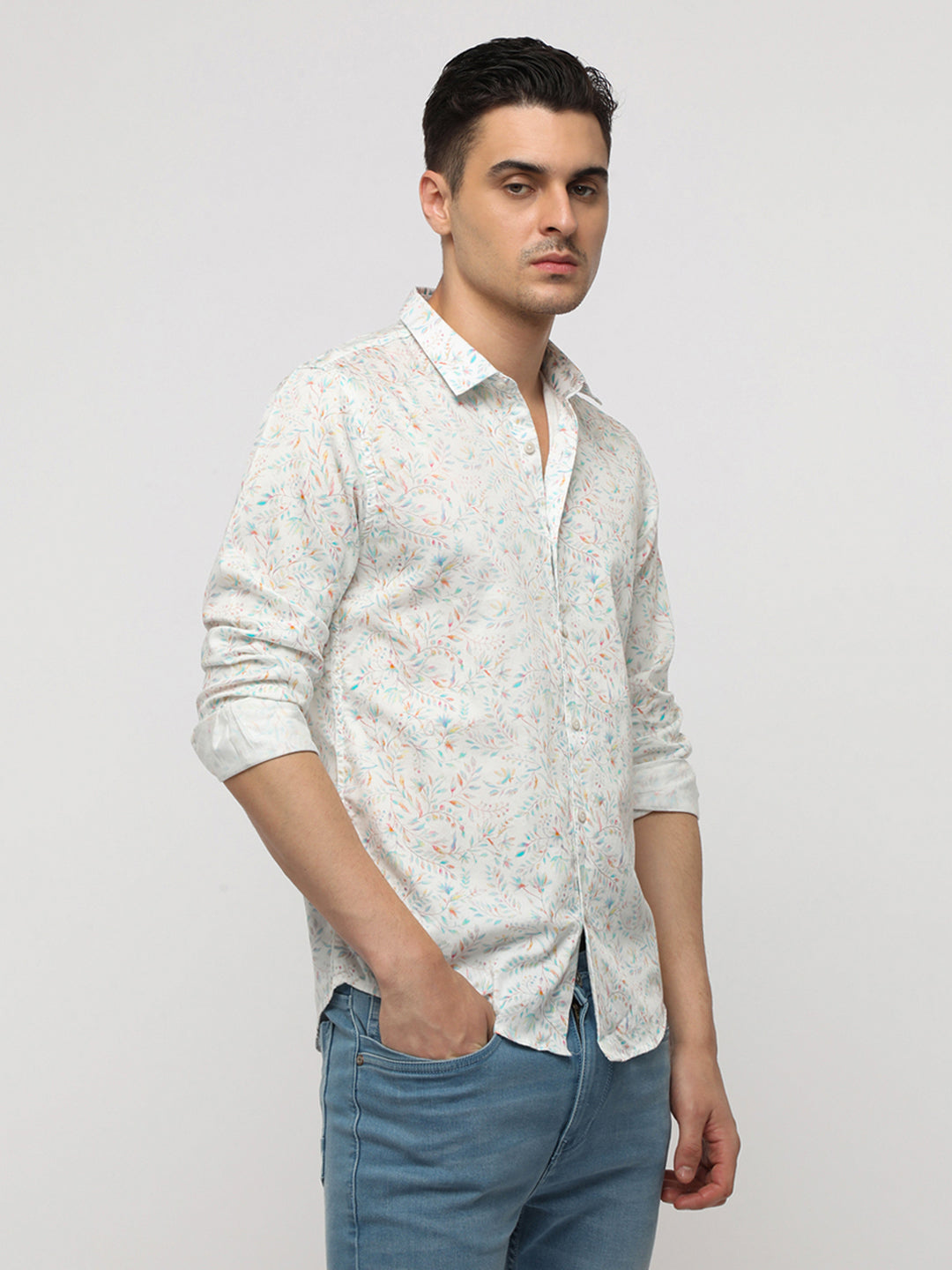 Cream Abstract Print Nylon Textured Fabric Relax Fit Relaxed Fit Shirts