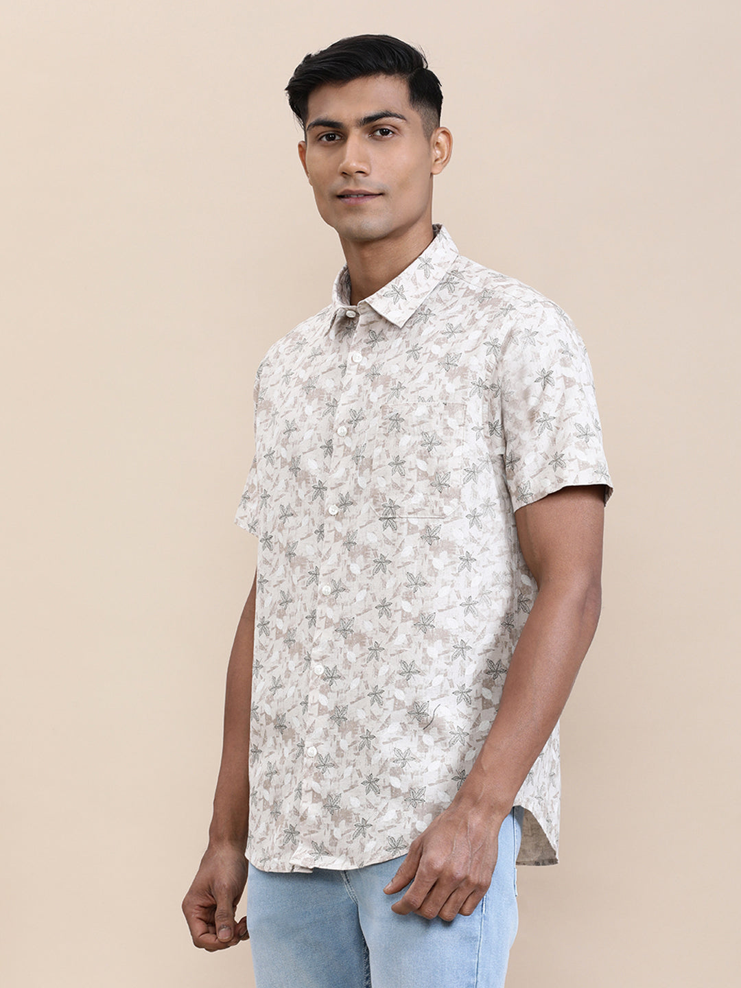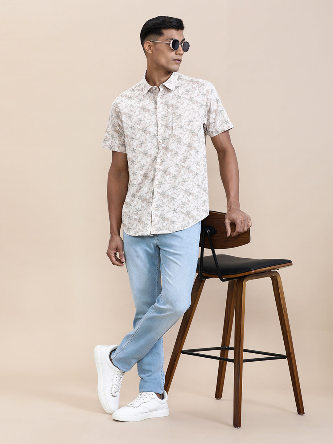 Printed Crinkled Effect Fluid Half Sleeve Shirt Beige