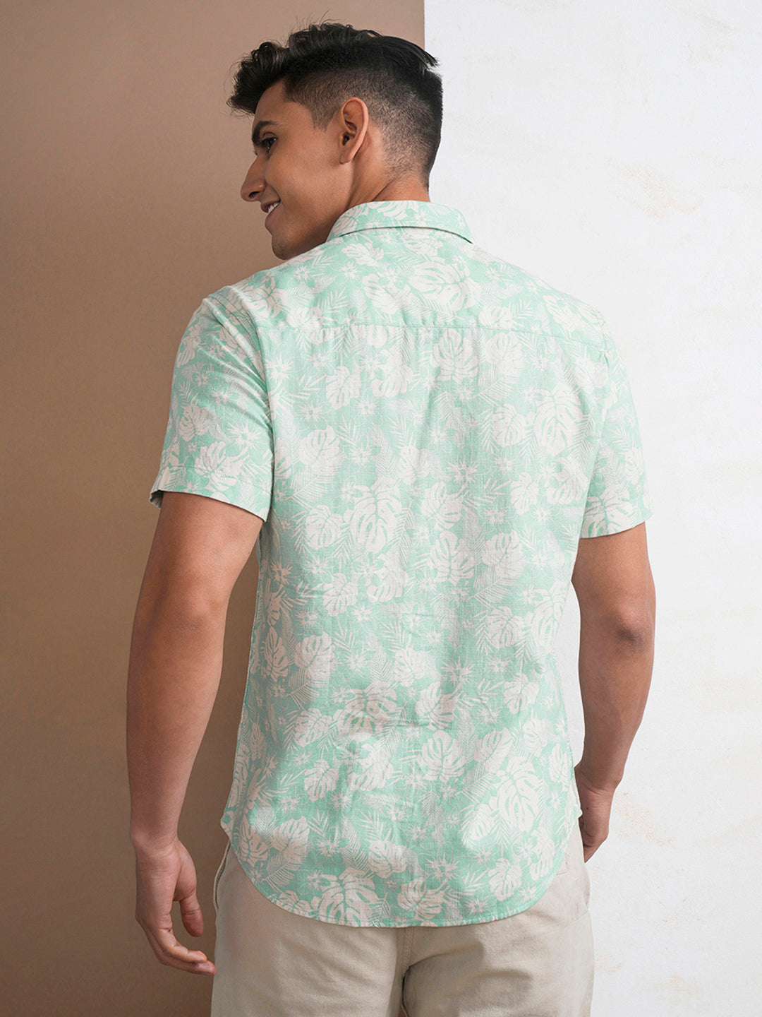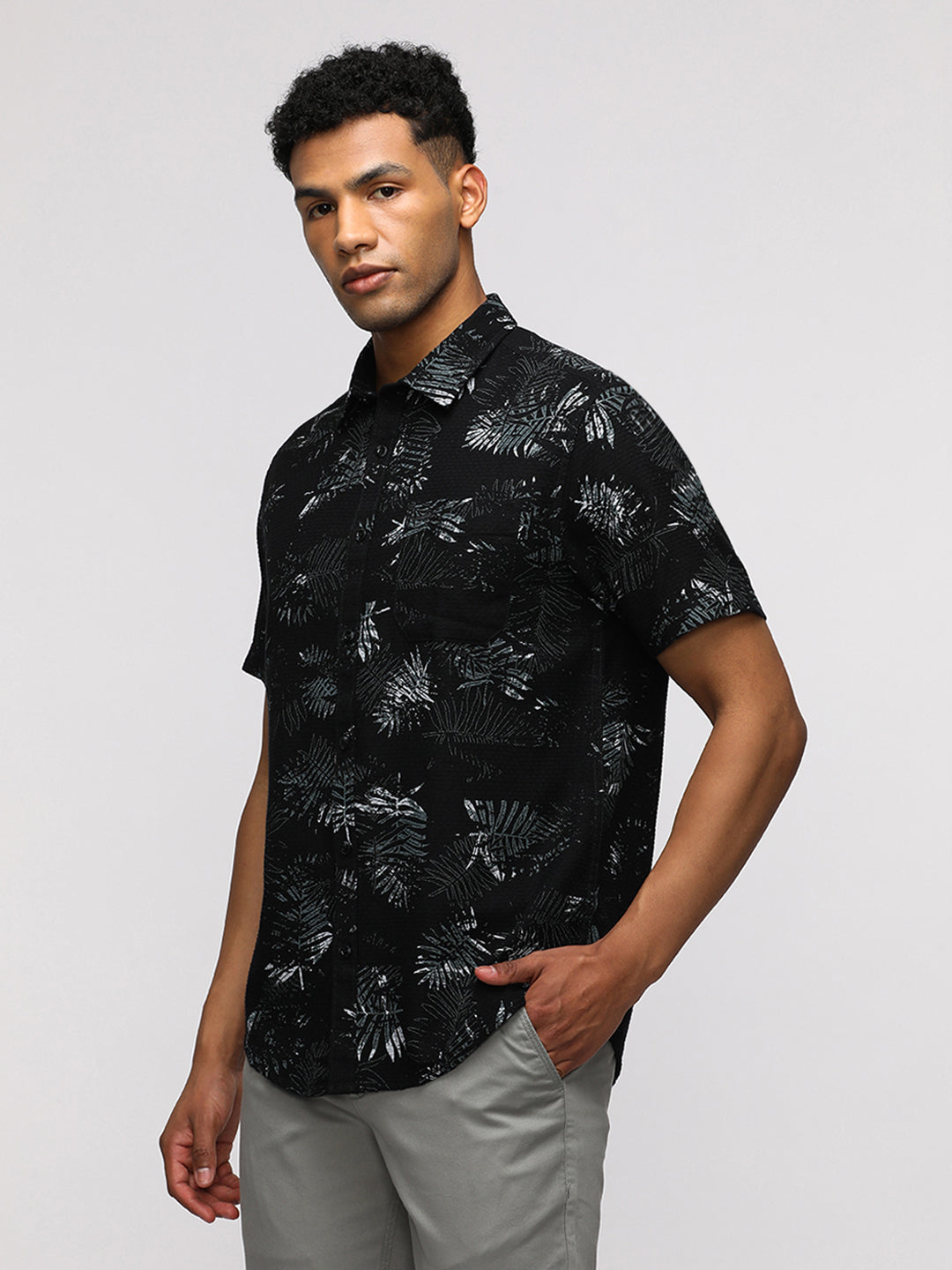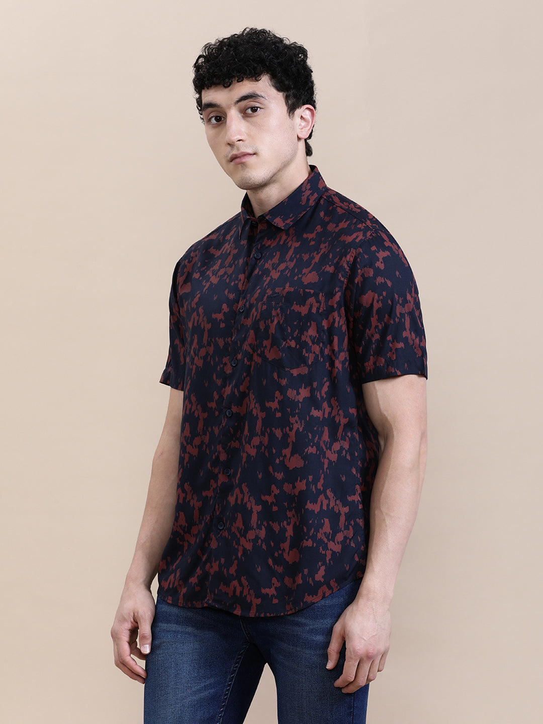Printed Crinkled Effect Fluid Half Sleeve Shirt