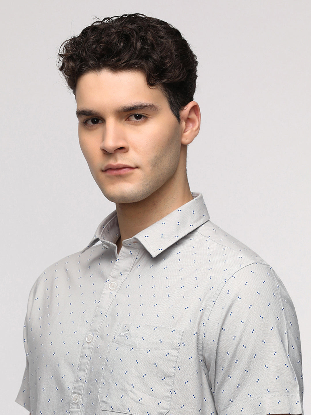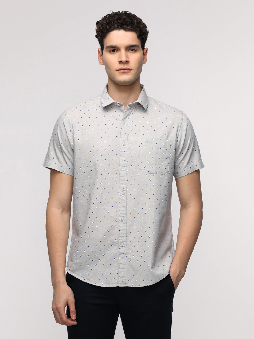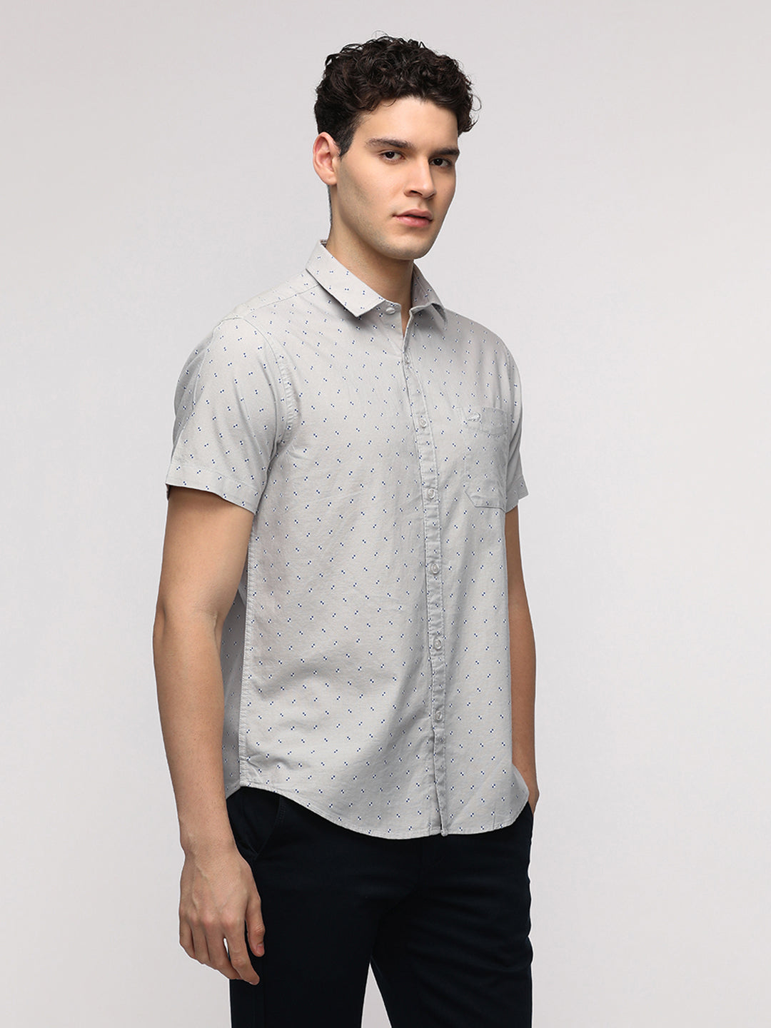 Grey Printed Half Sleeve 100% Cotton Shirt