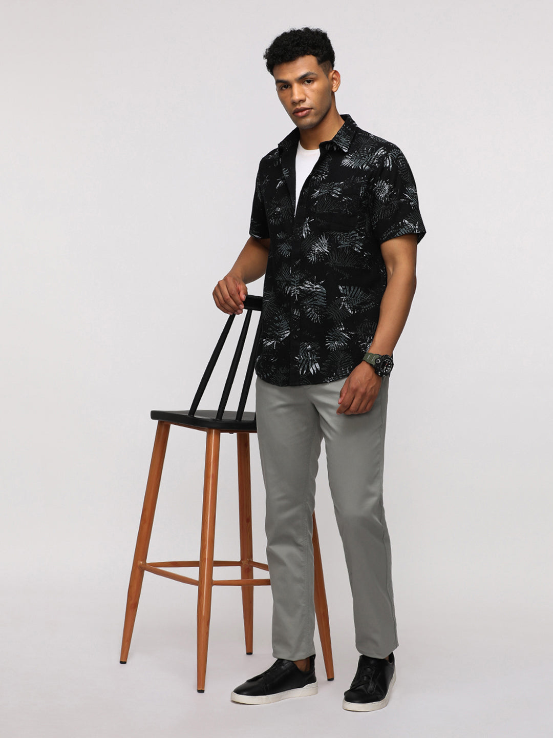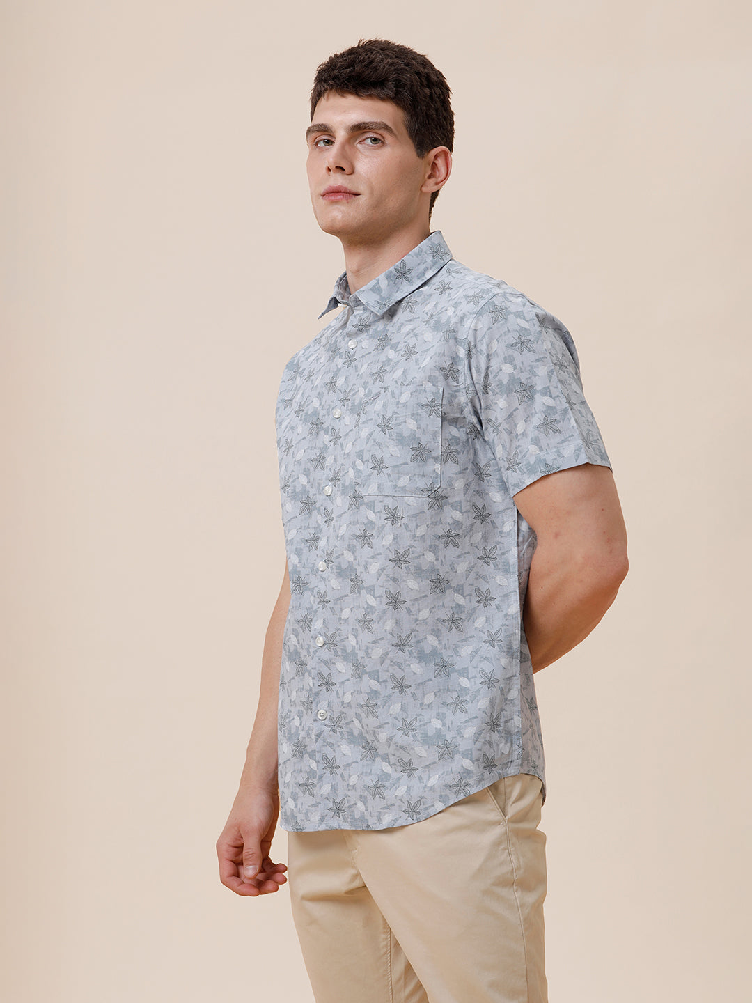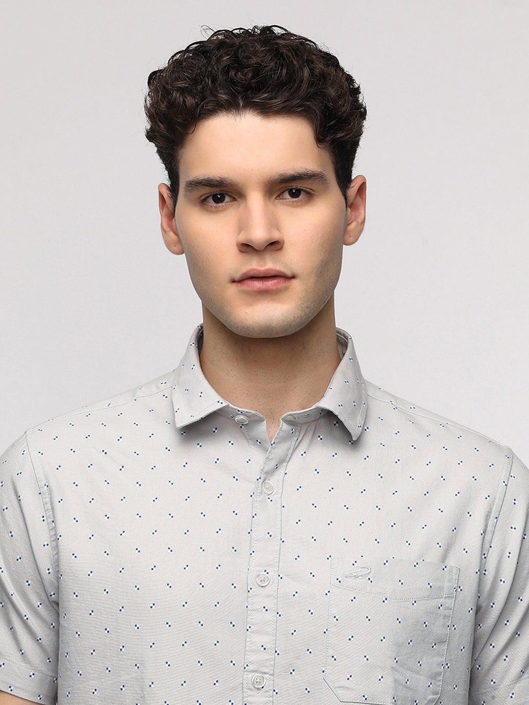 Grey Printed Half Sleeve 100% Cotton Shirt