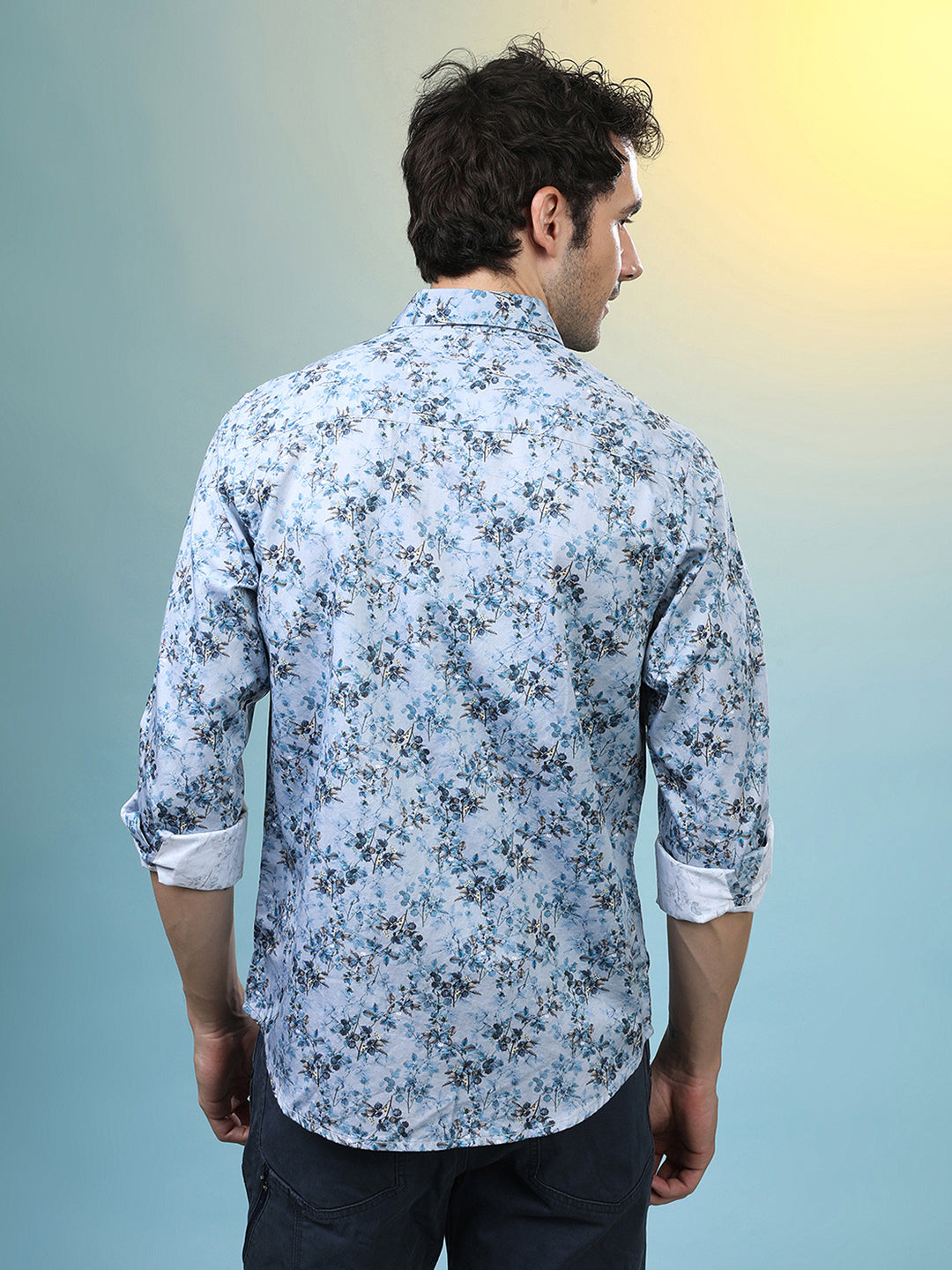 Grey Casual Printed Full Sleeve 100% Cotton Shirt