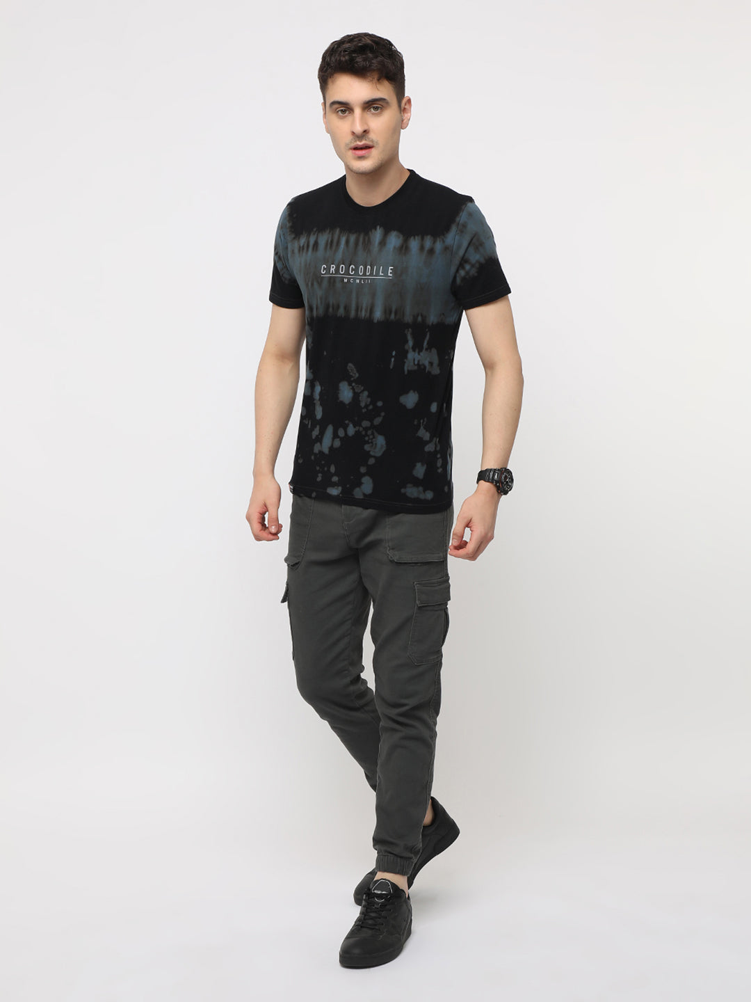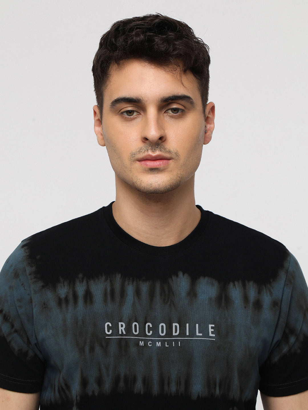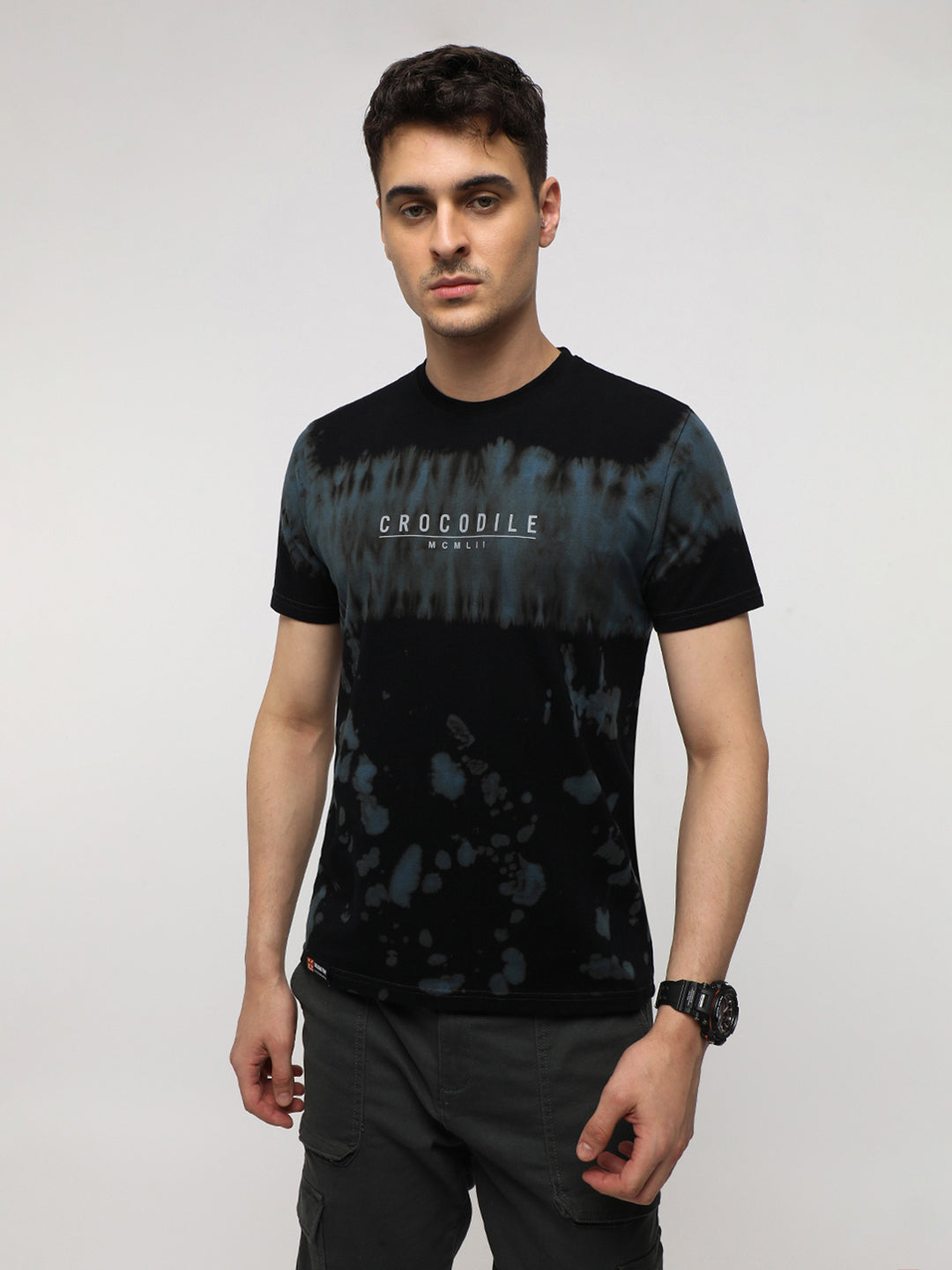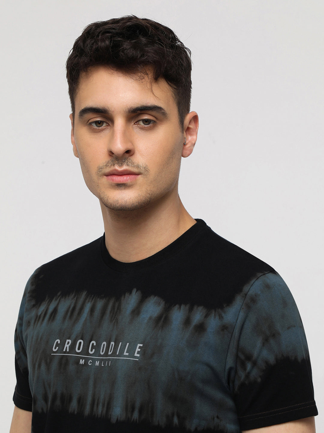 Typography Printed Single Jersey Cotton T-Shirt Black