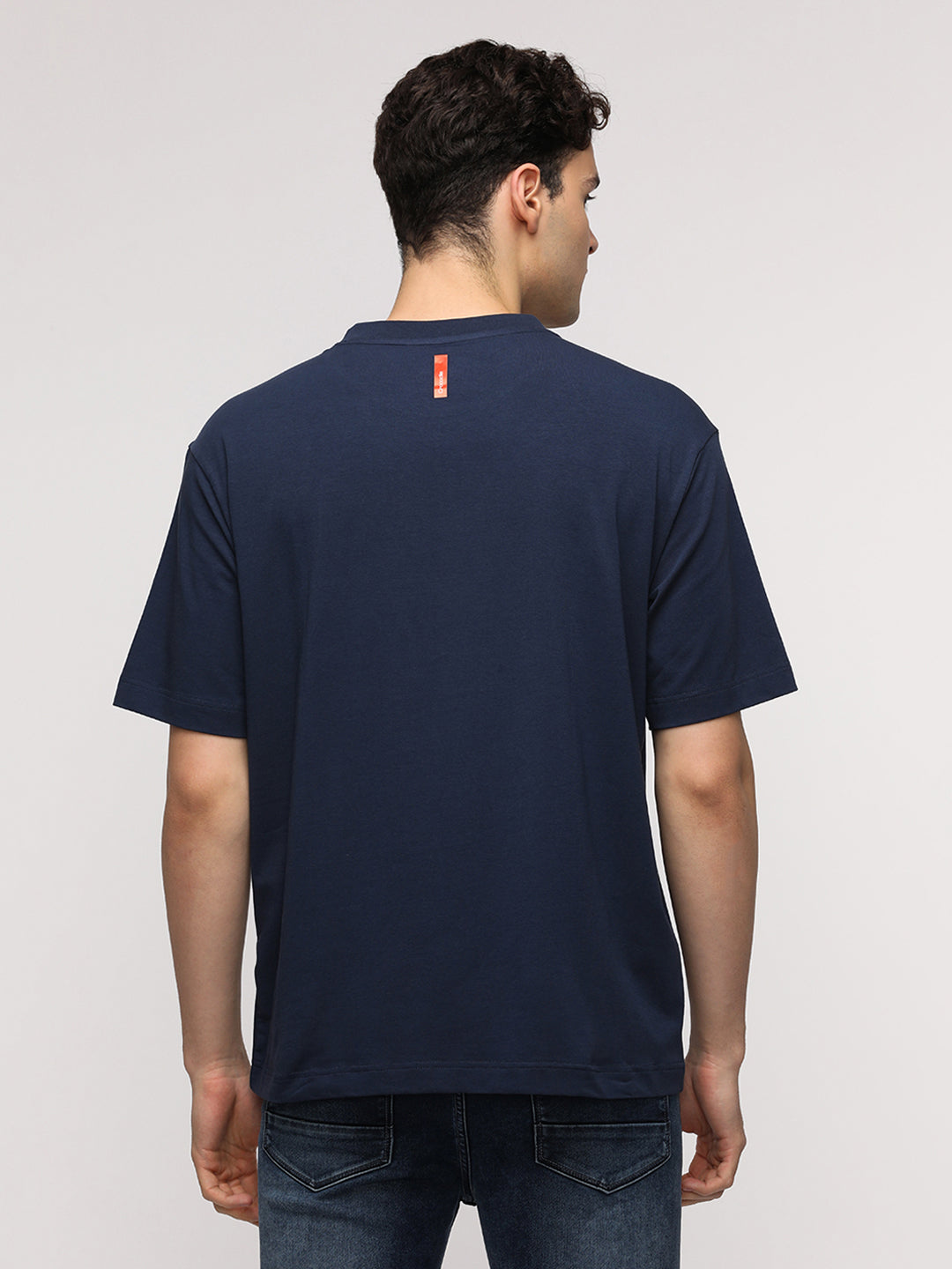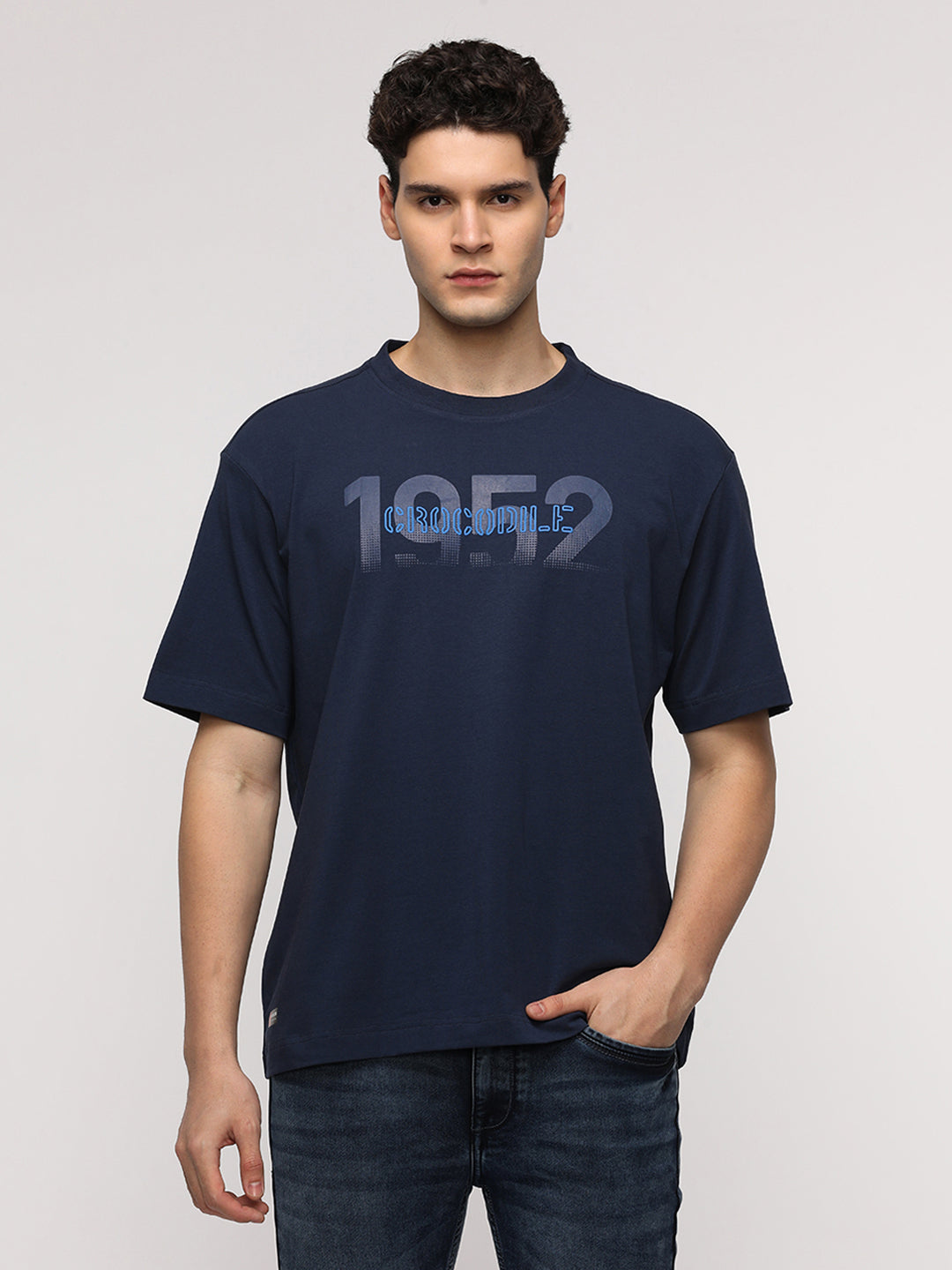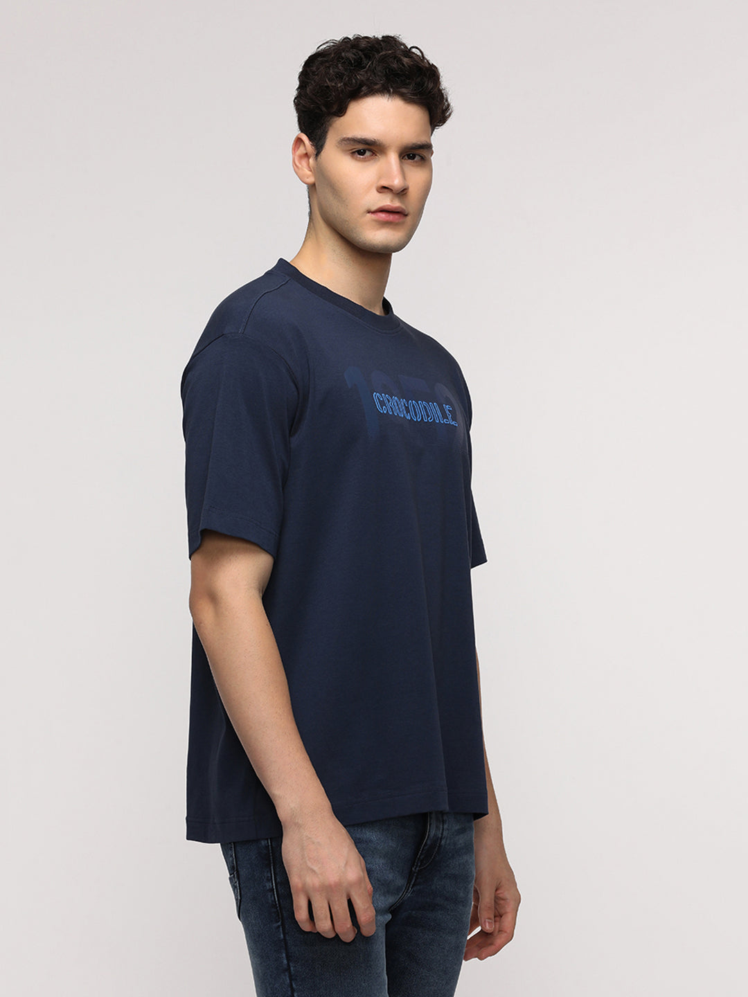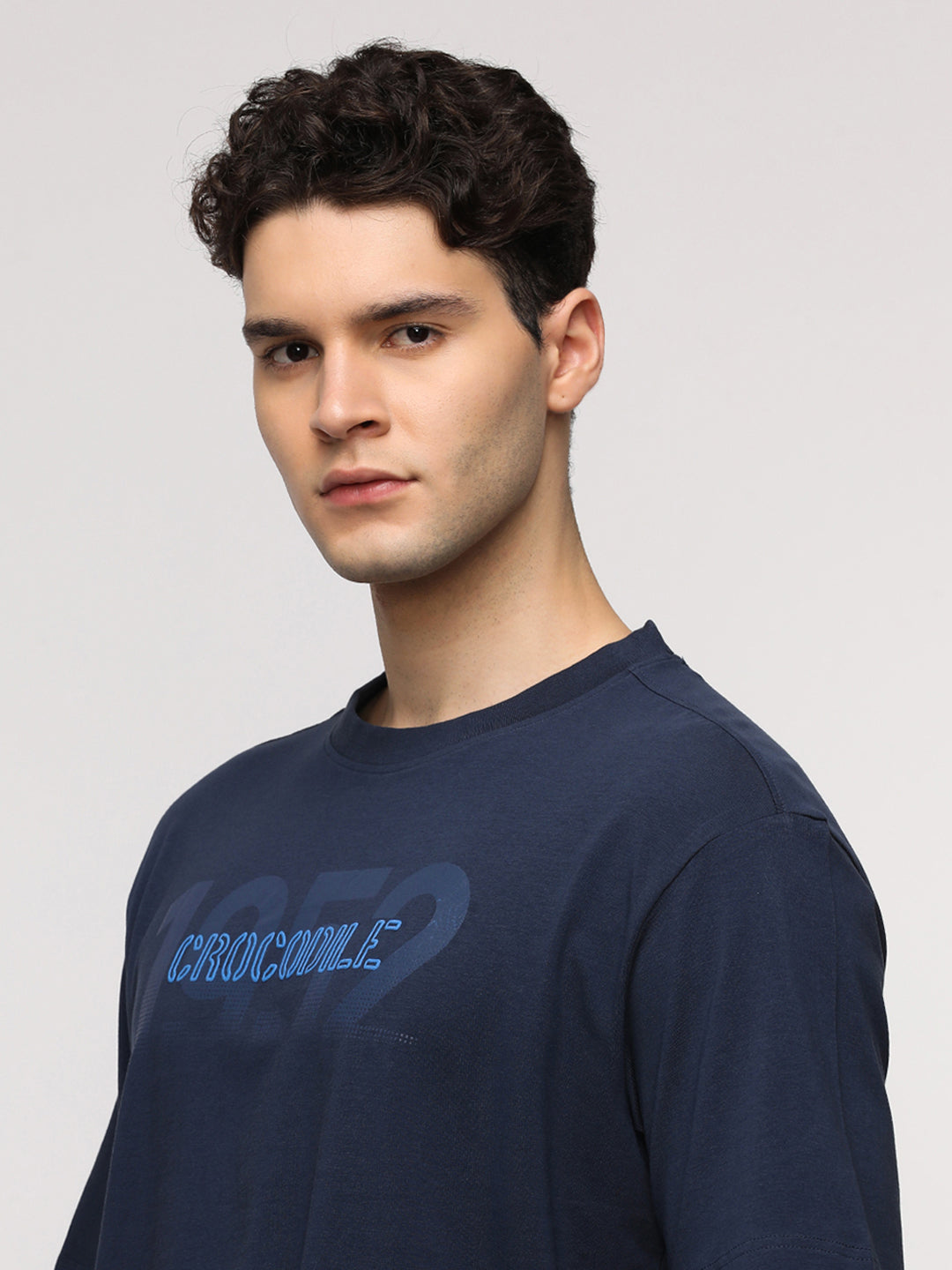 Typography Printed Single Jersey Cotton Blue T-Shirts