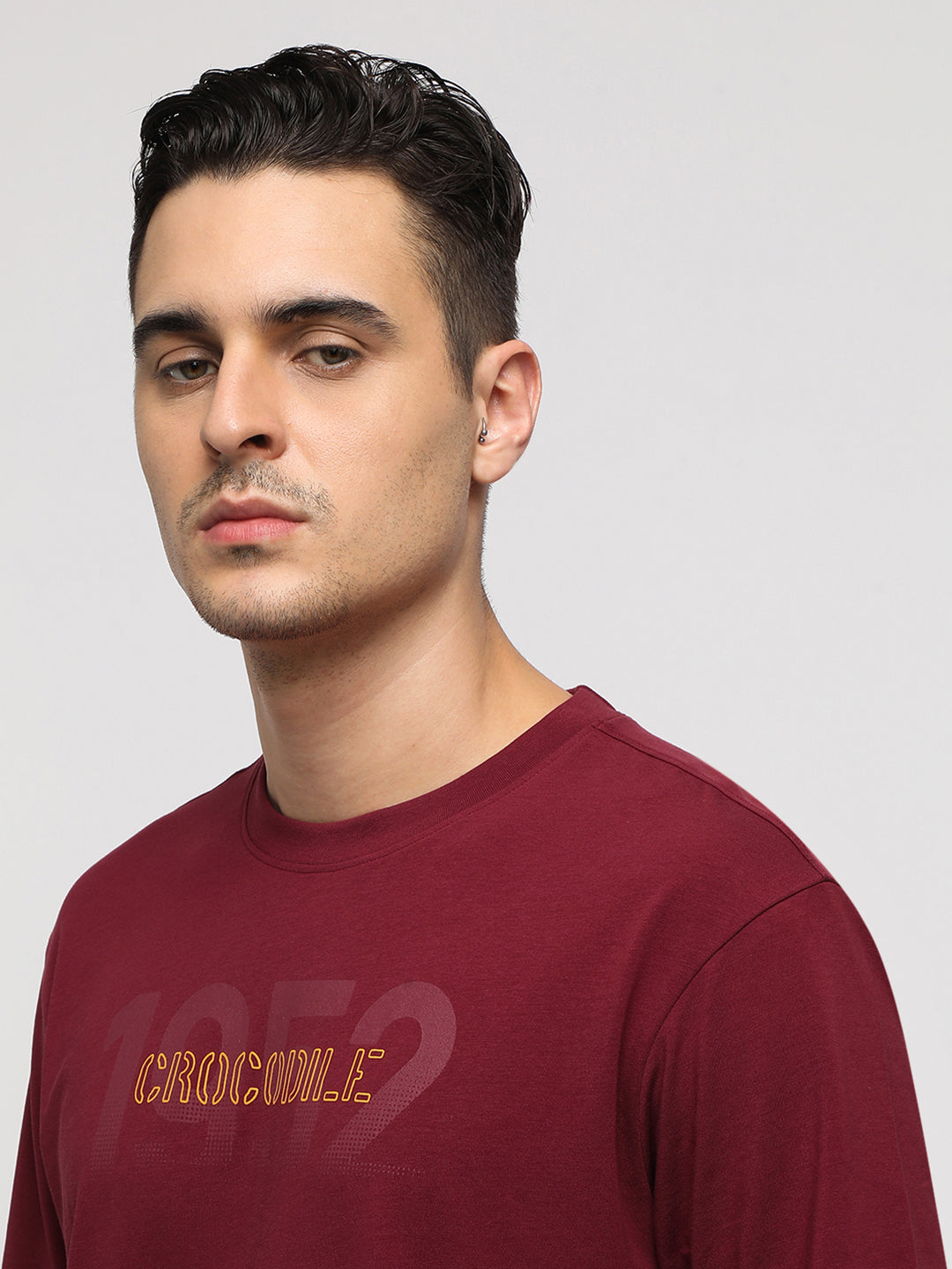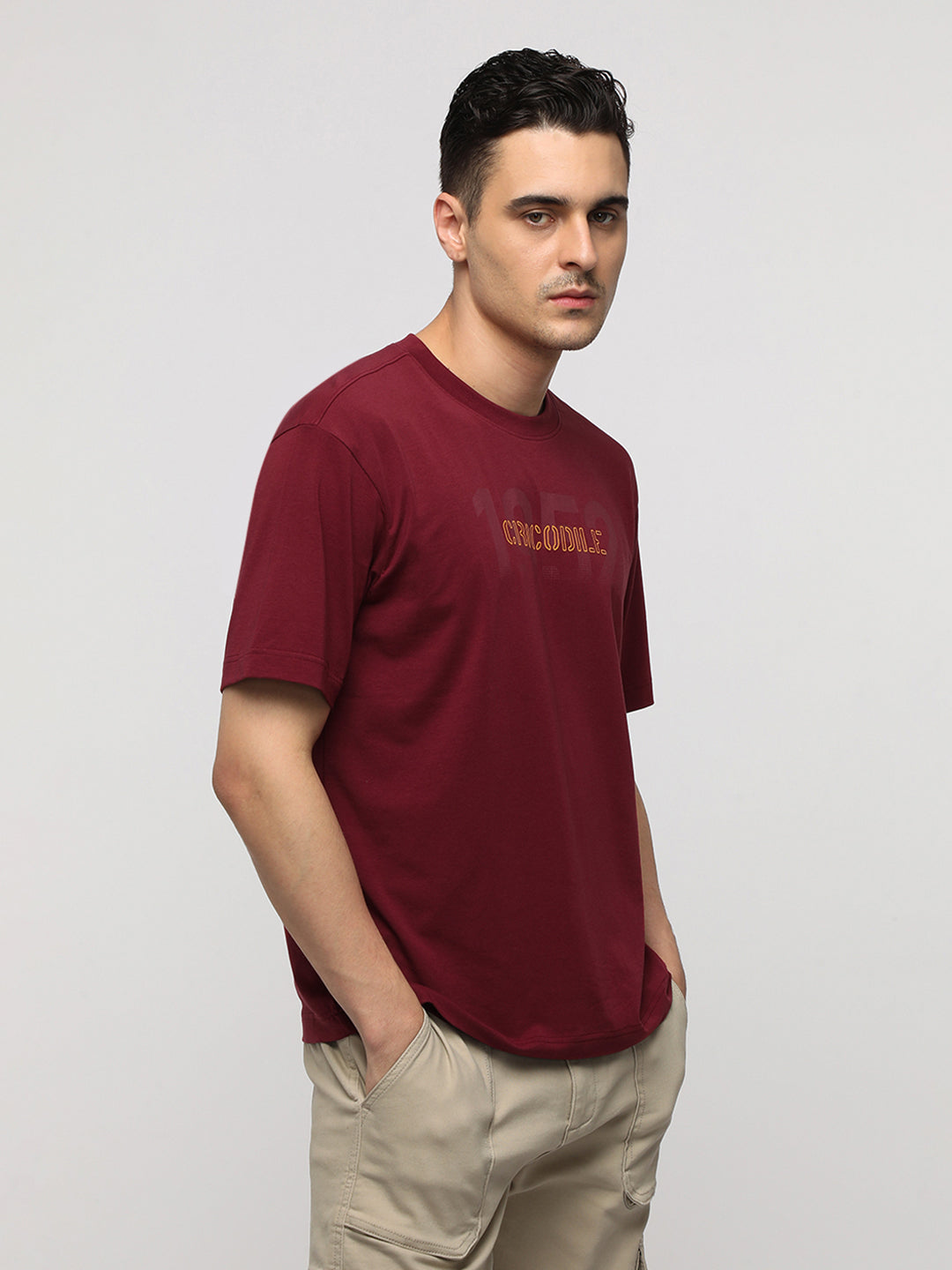 Typography Printed Single Jersey Cotton Brown T-Shirts