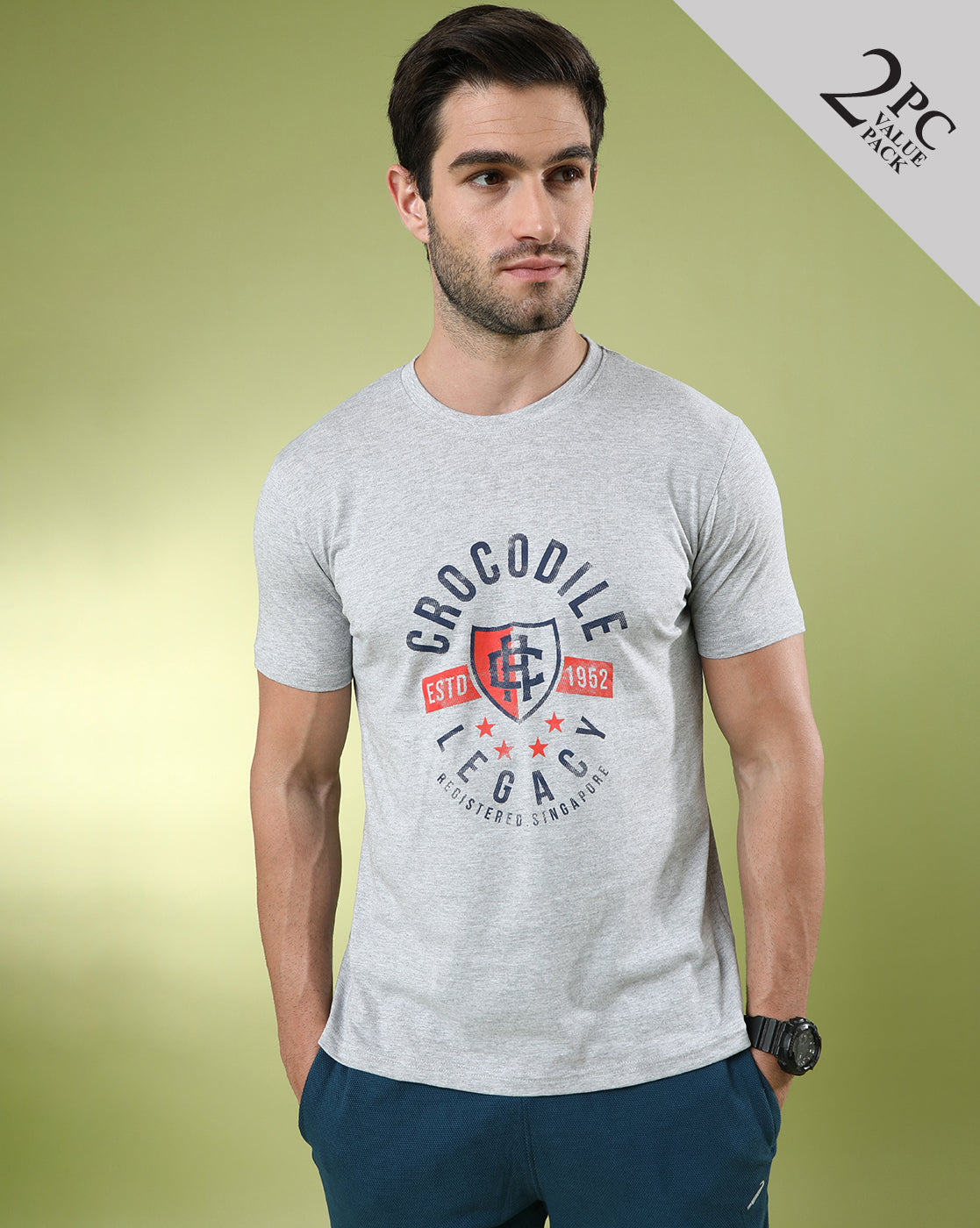 Typography Printed Slim Fit Cotton T-shirts Pack Of 2
