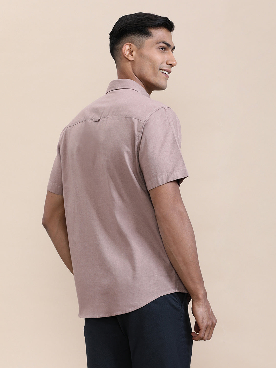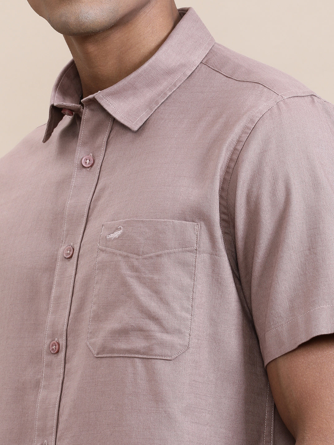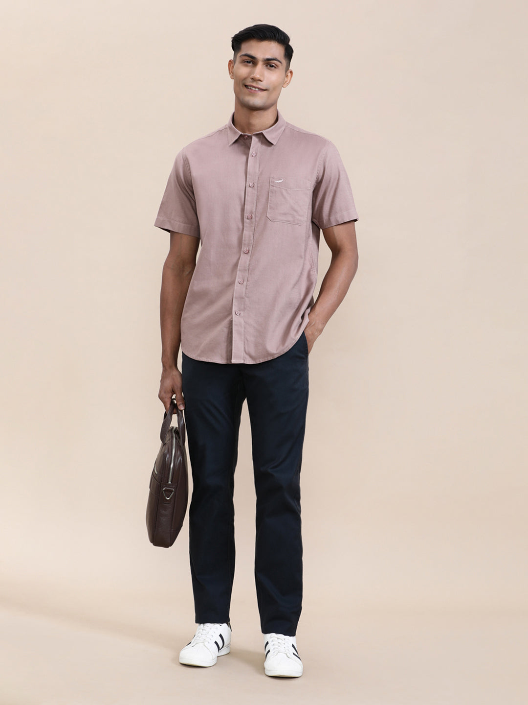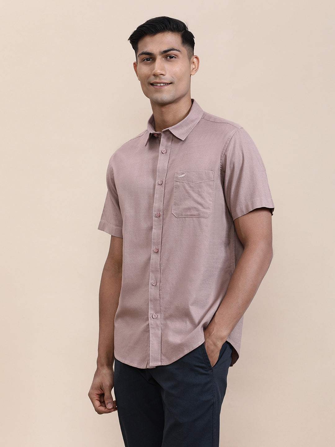 Pure Cotton Textured Half Sleeve Pink Shirt