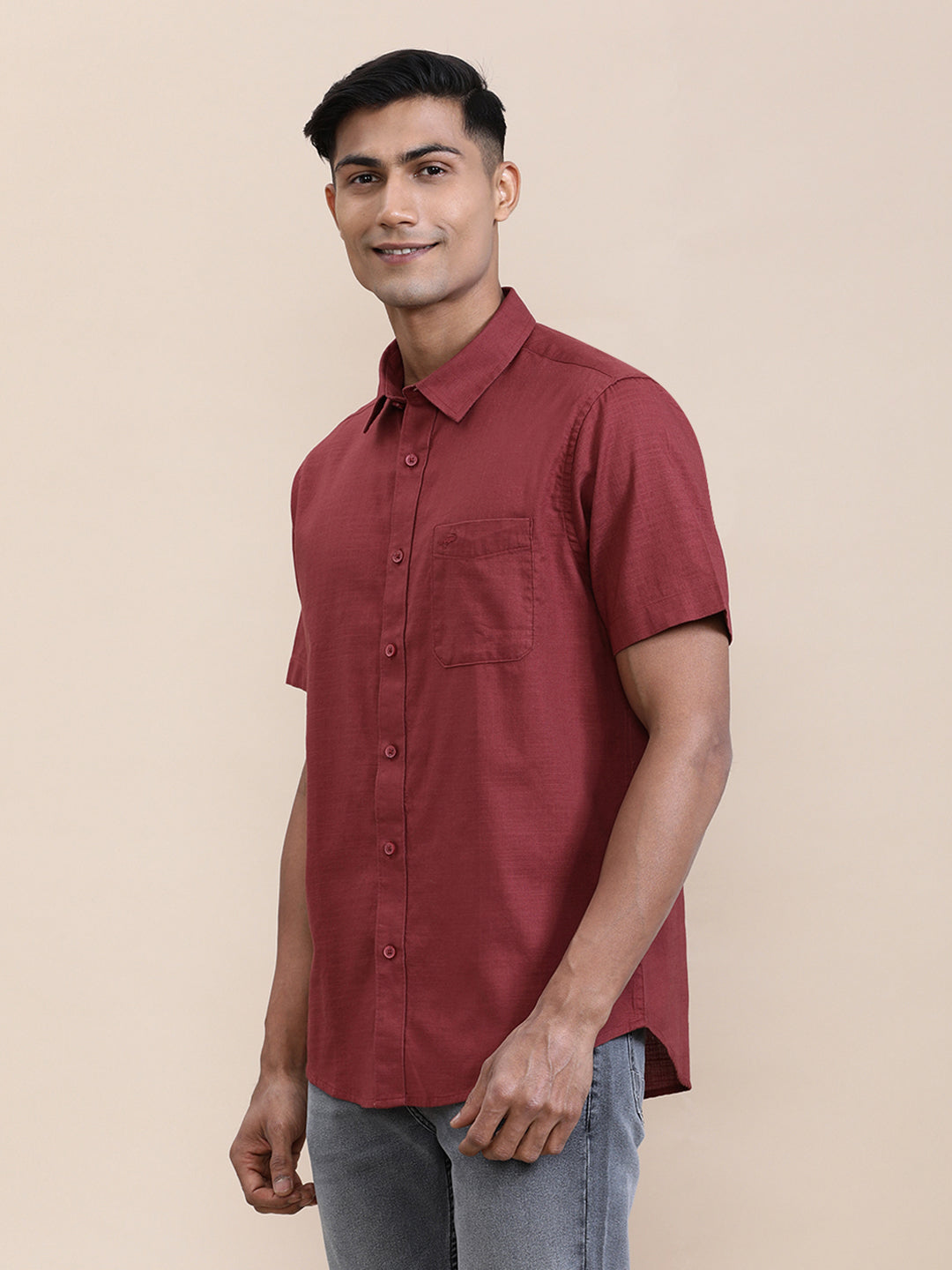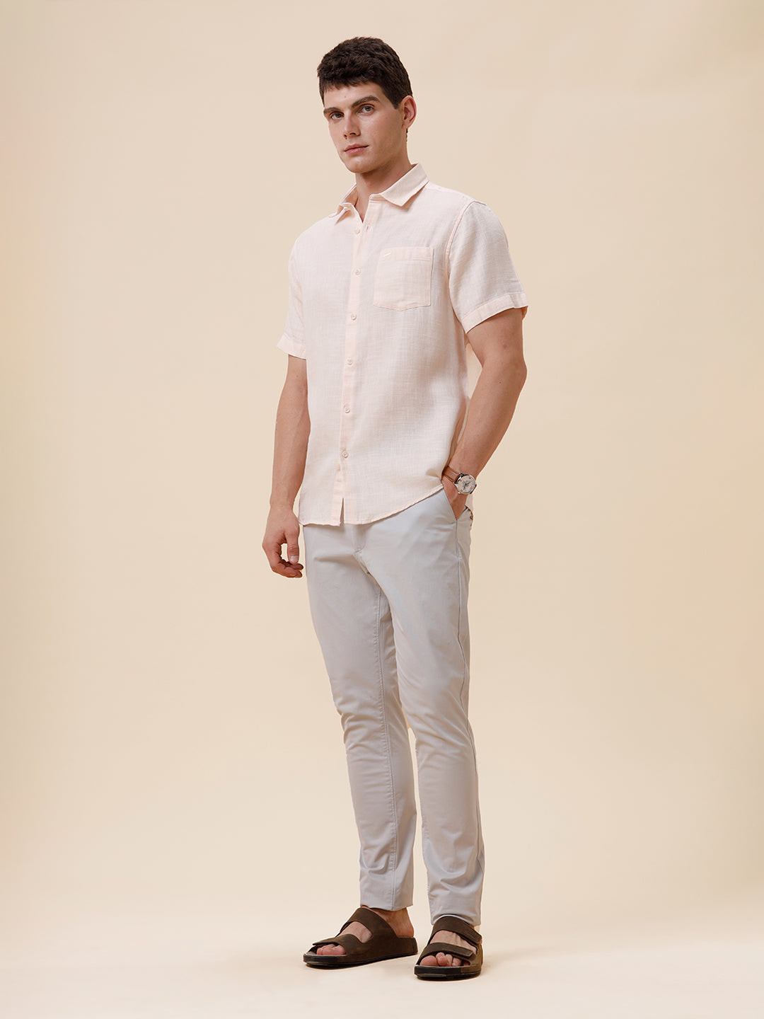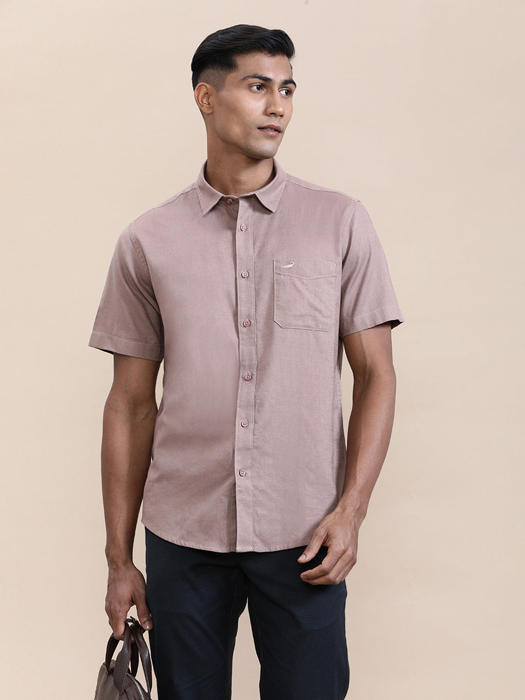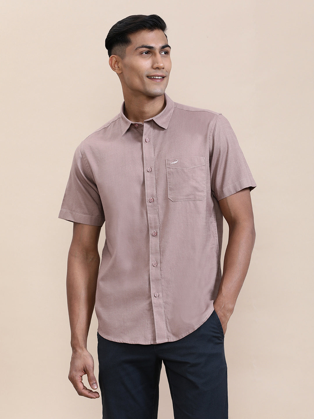 Pure Cotton Textured Half Sleeve Pink Shirt