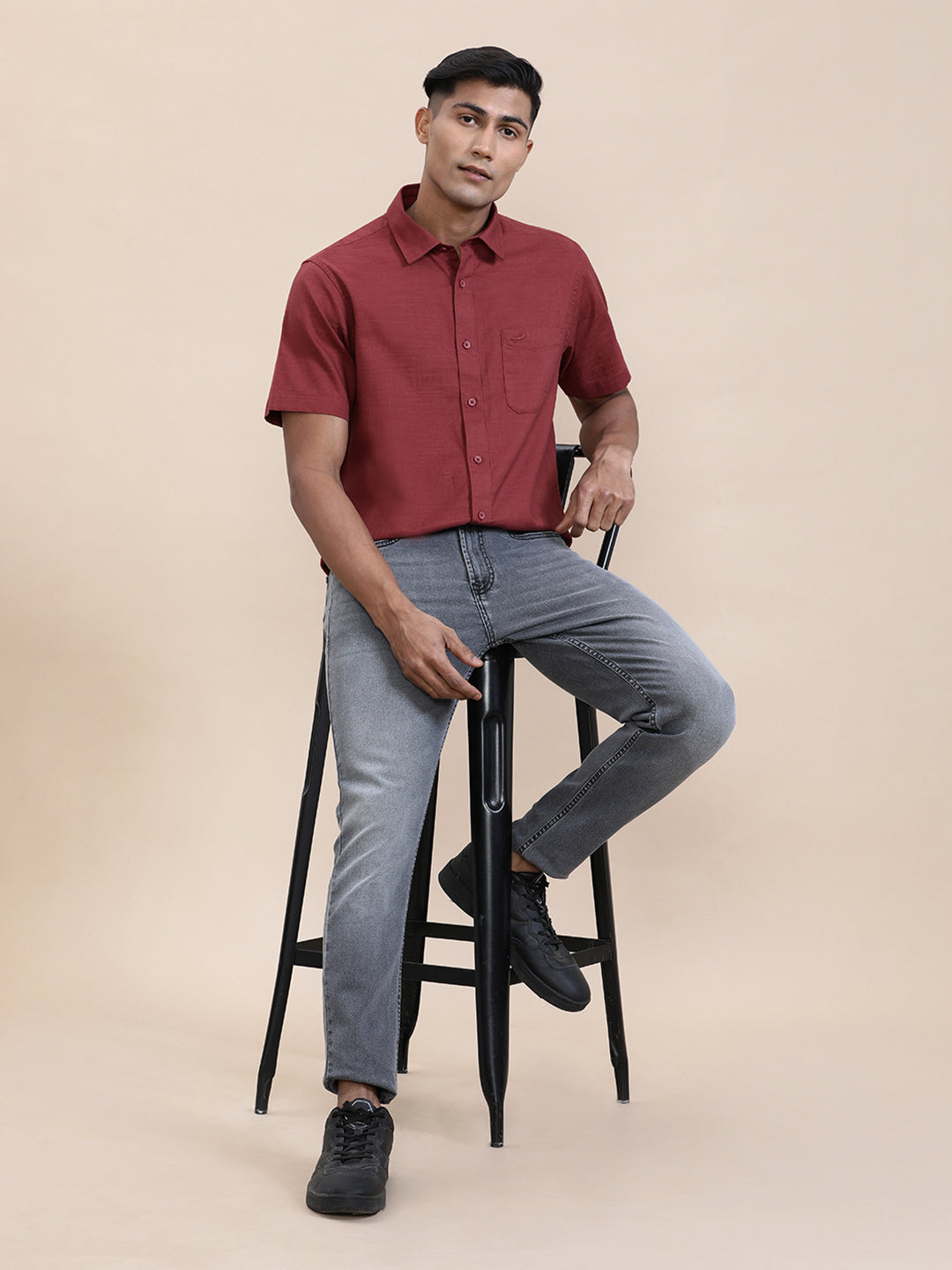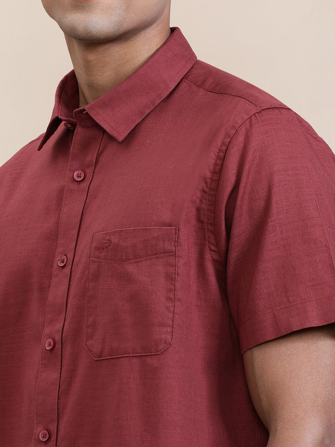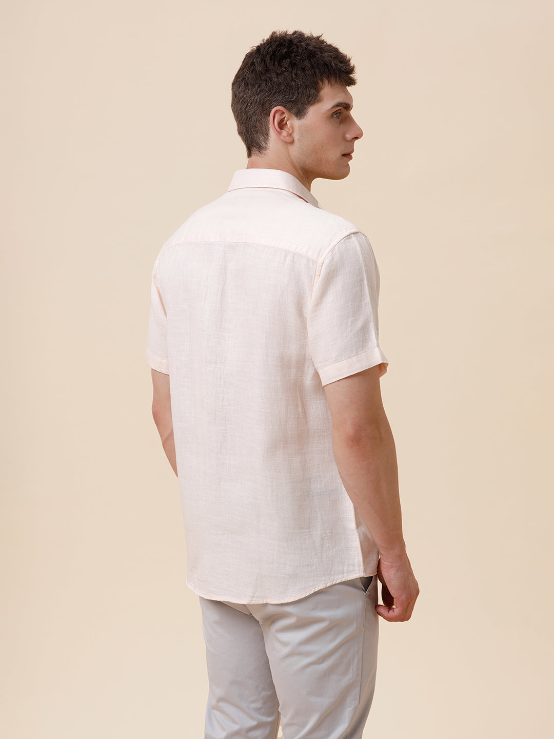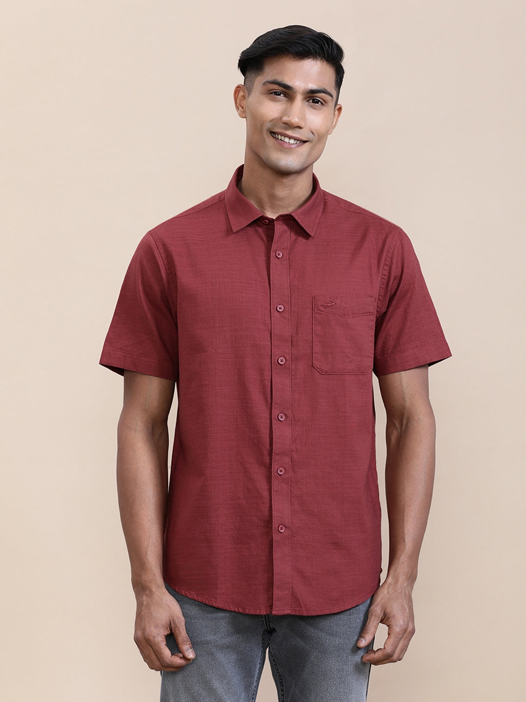 Pure Cotton Textured Half Sleeve Pink Shirt