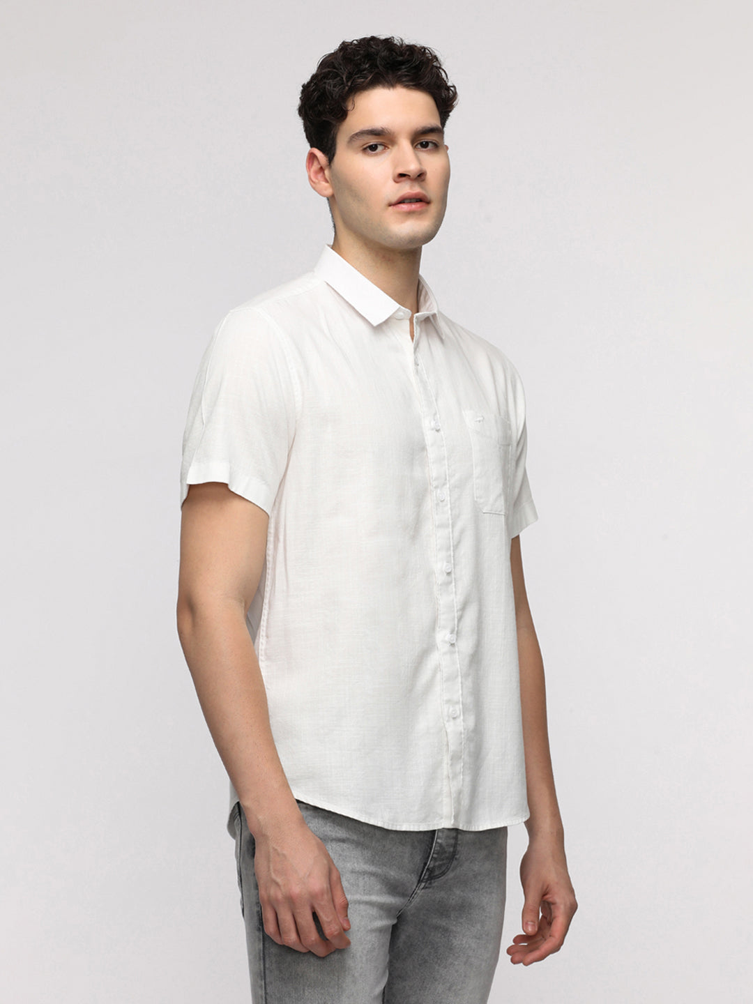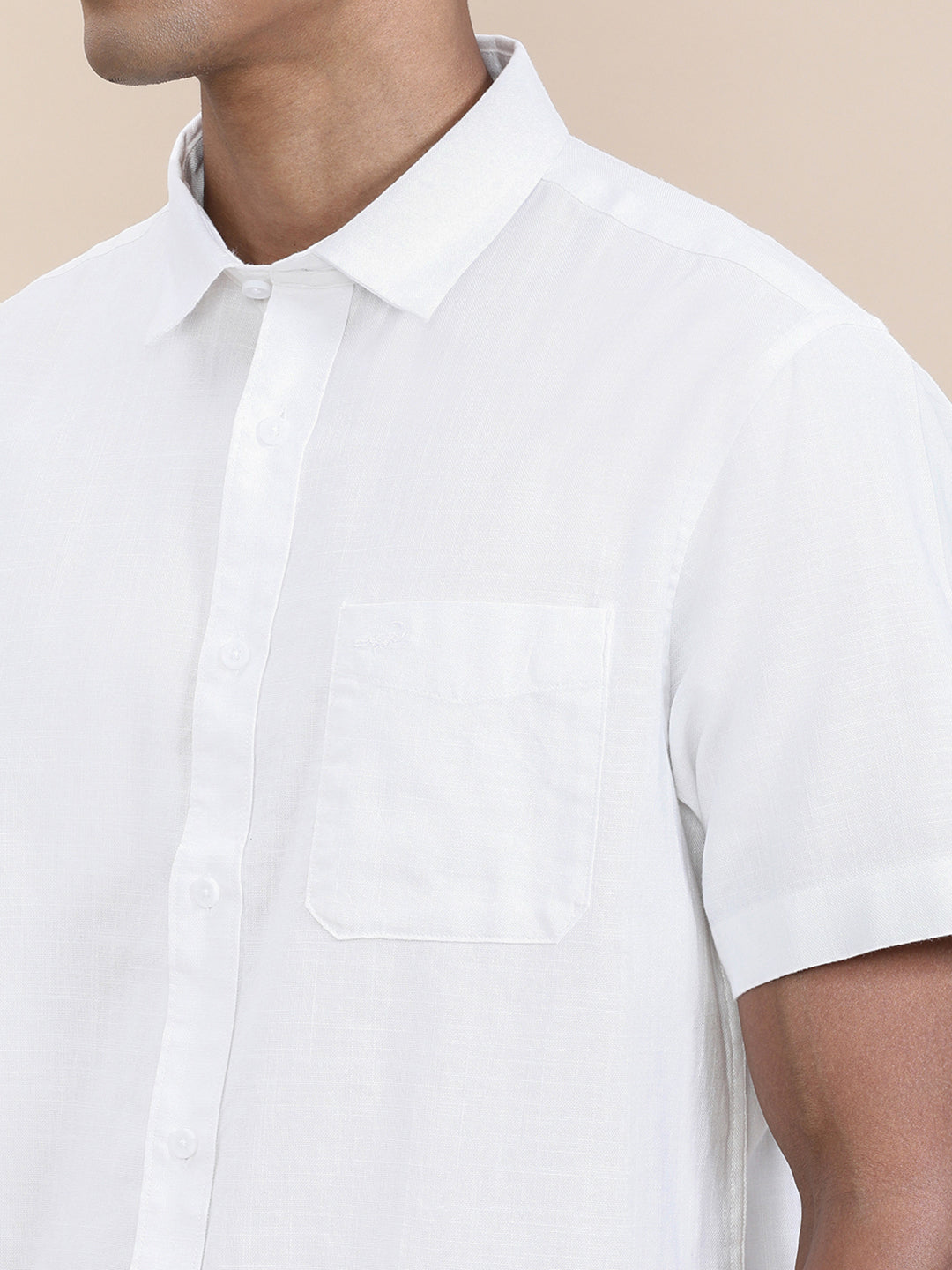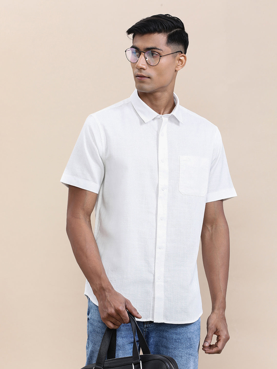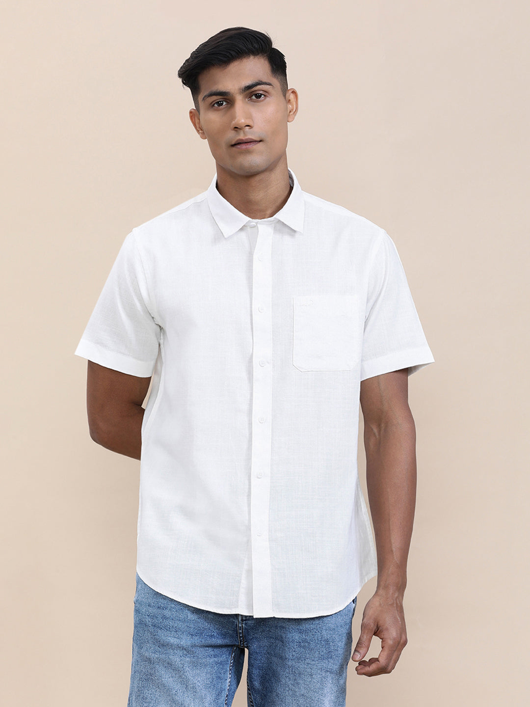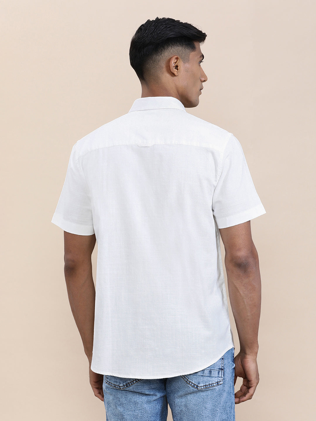 Pure Cotton Textured Half Sleeve Moonstruck White Shirt