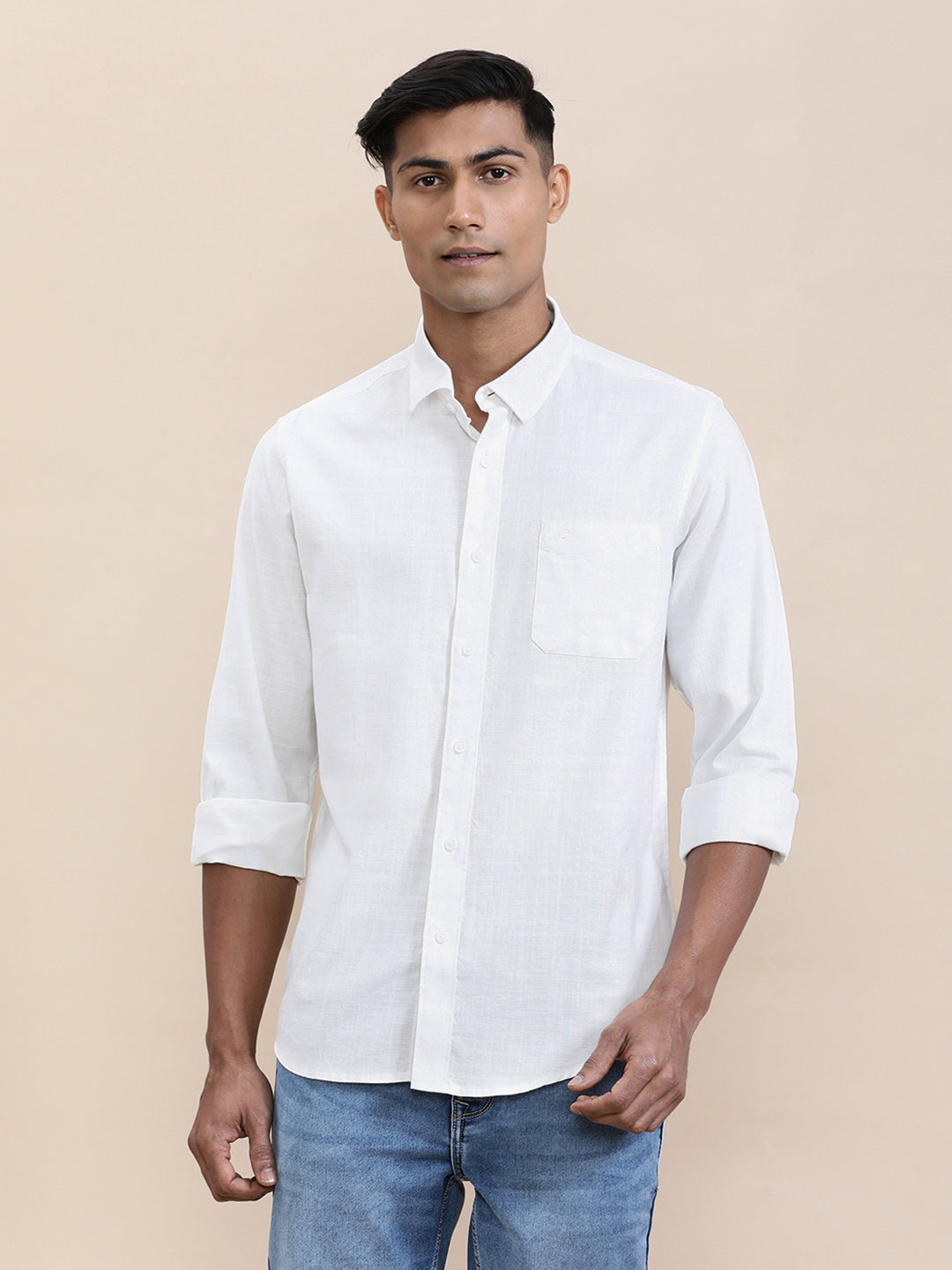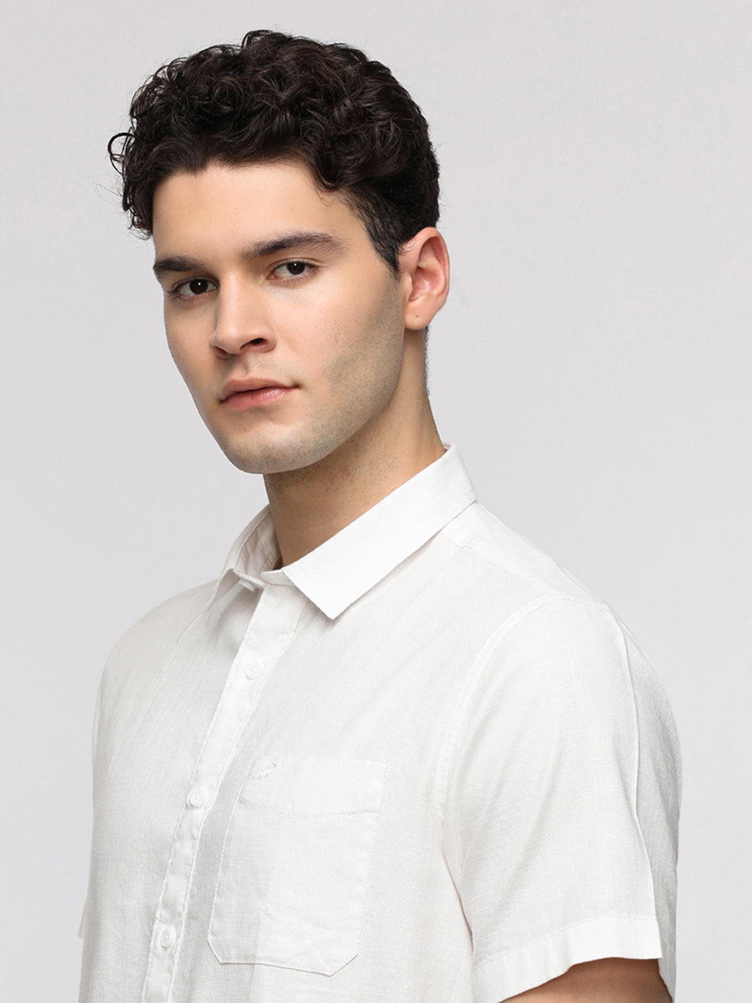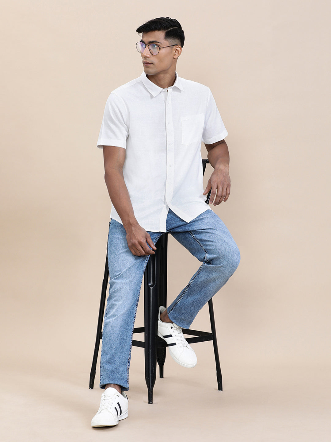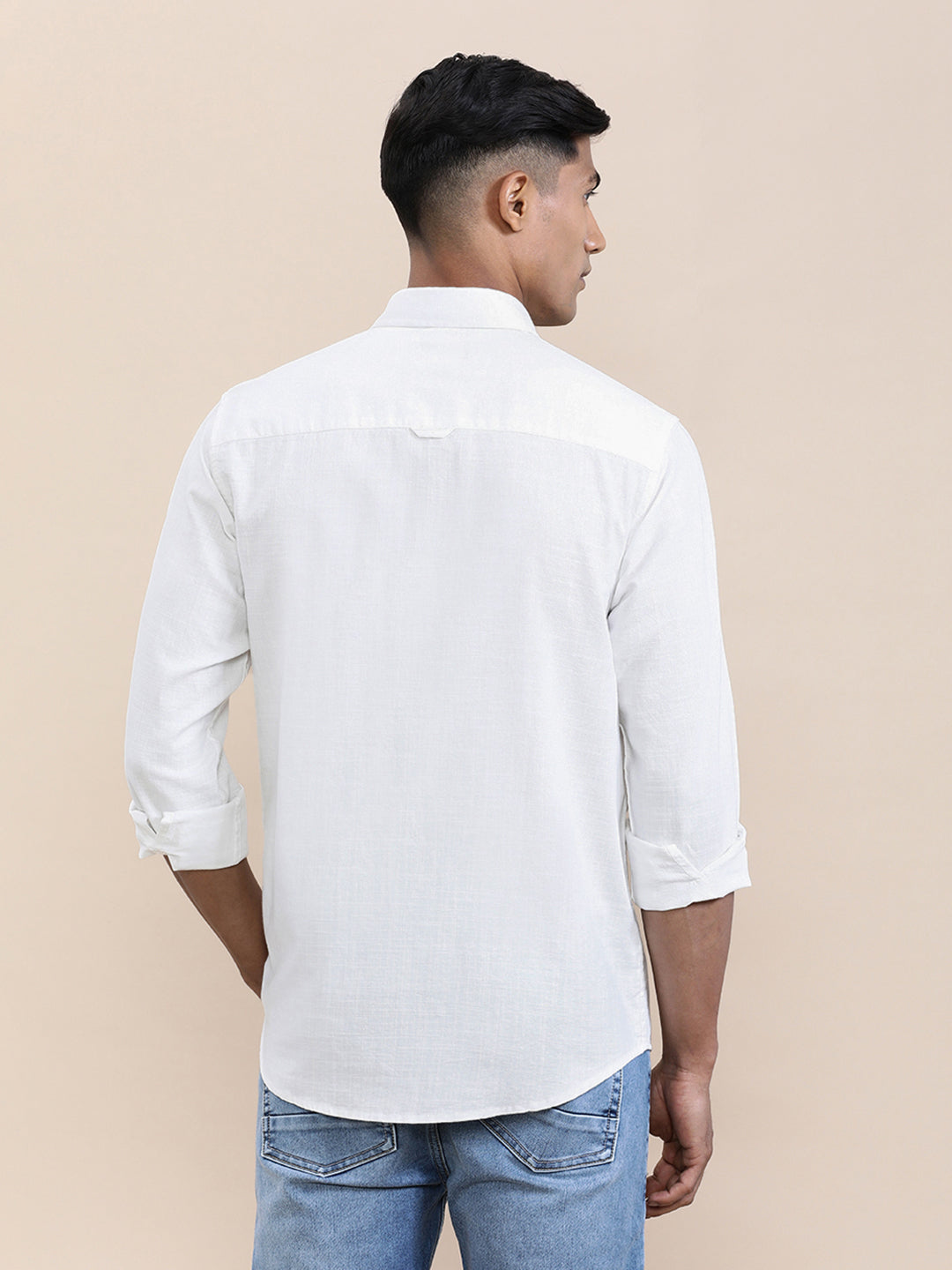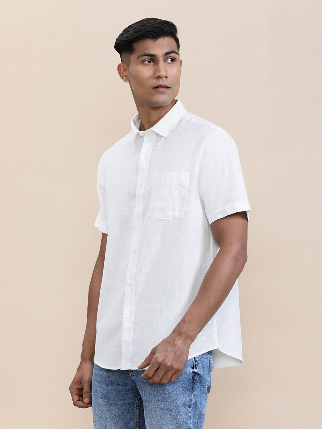 Pure Cotton Textured Half Sleeve Moonstruck White Shirt