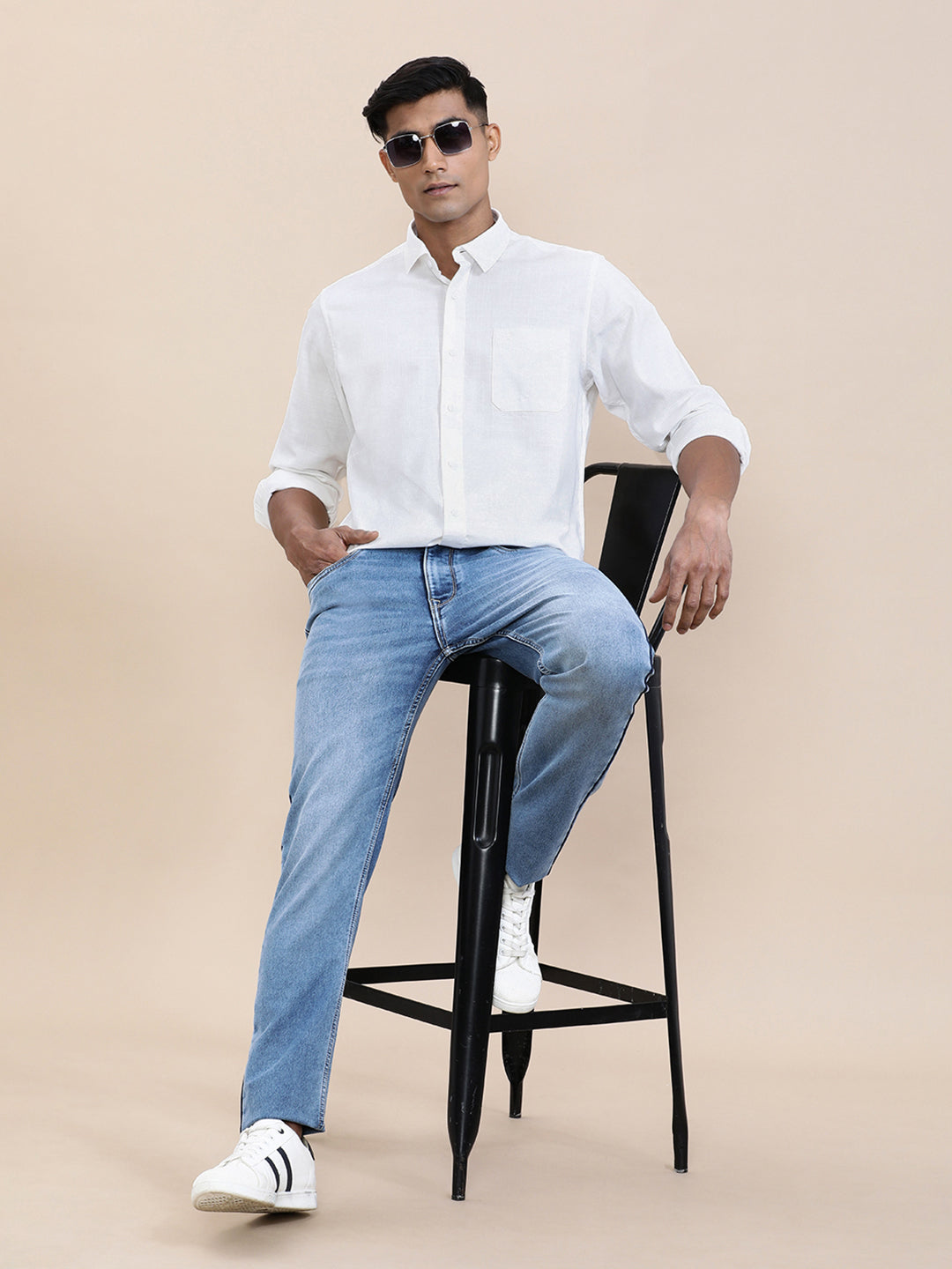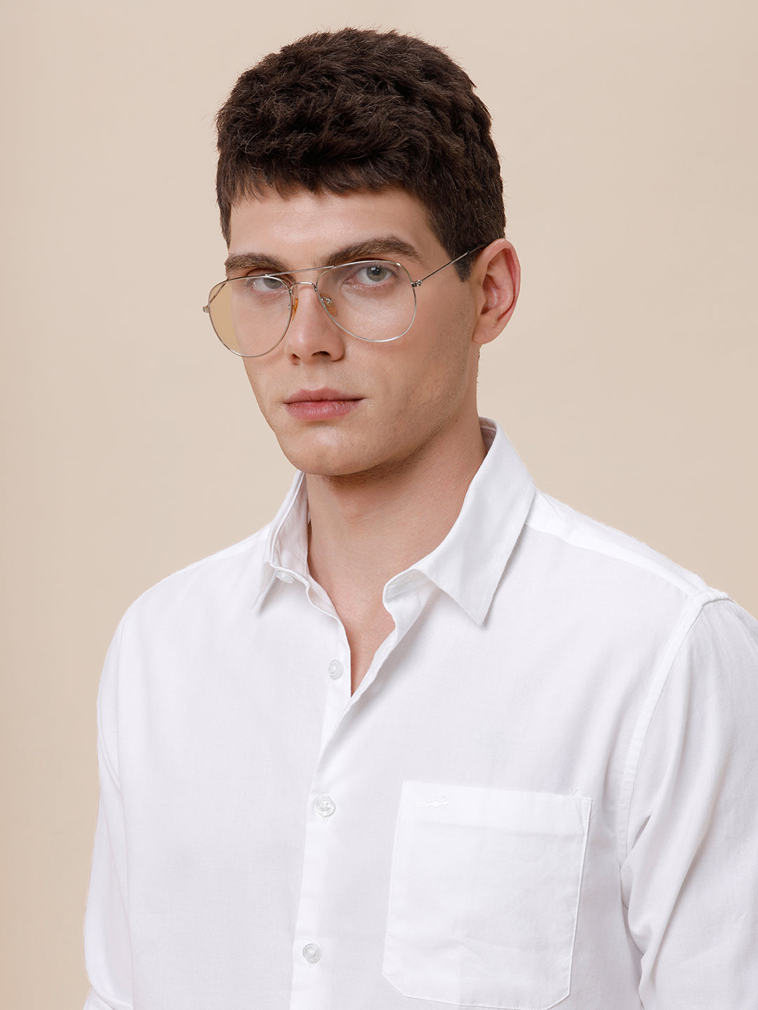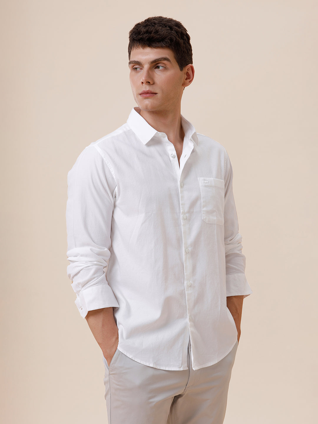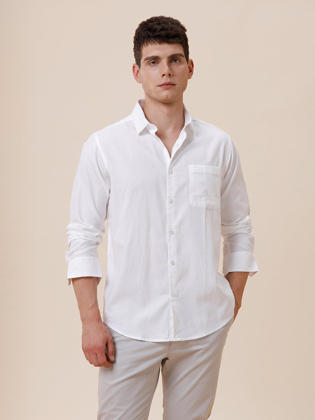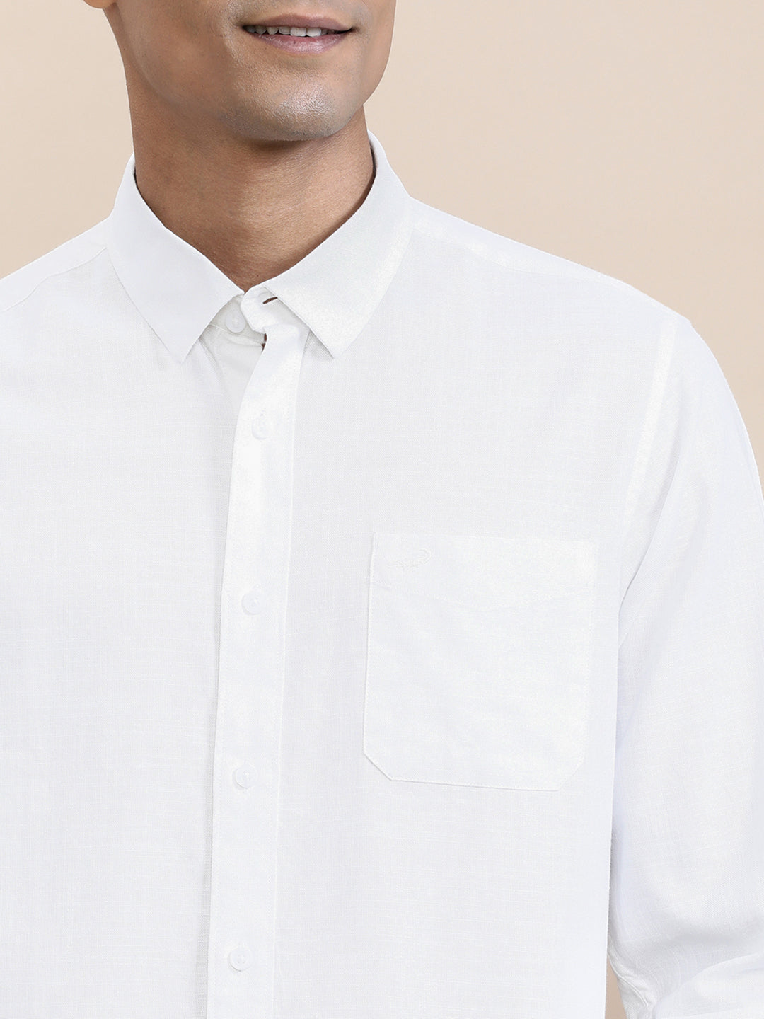 Pure Cotton Textured Half Sleeve Moonstruck White Shirt