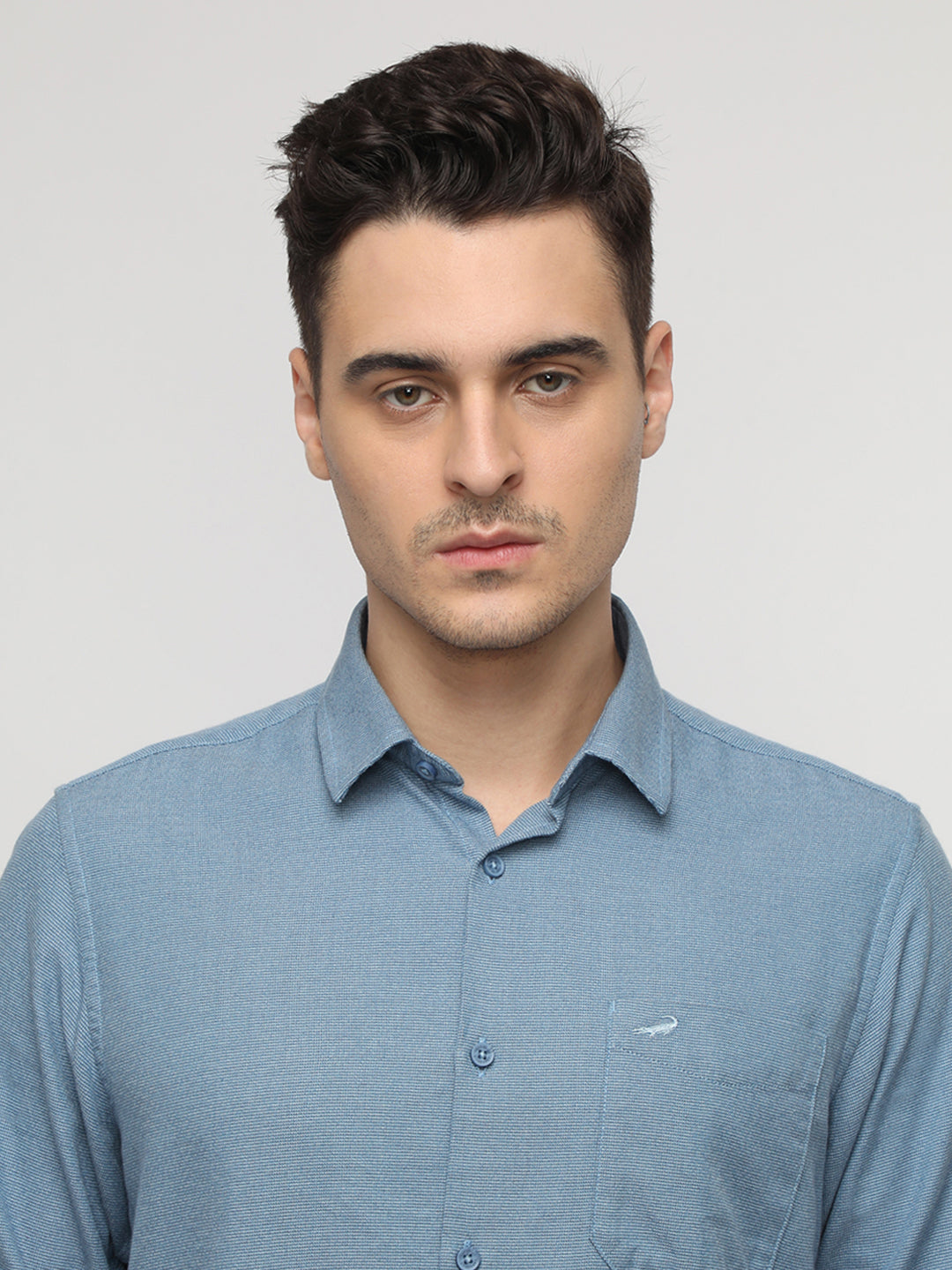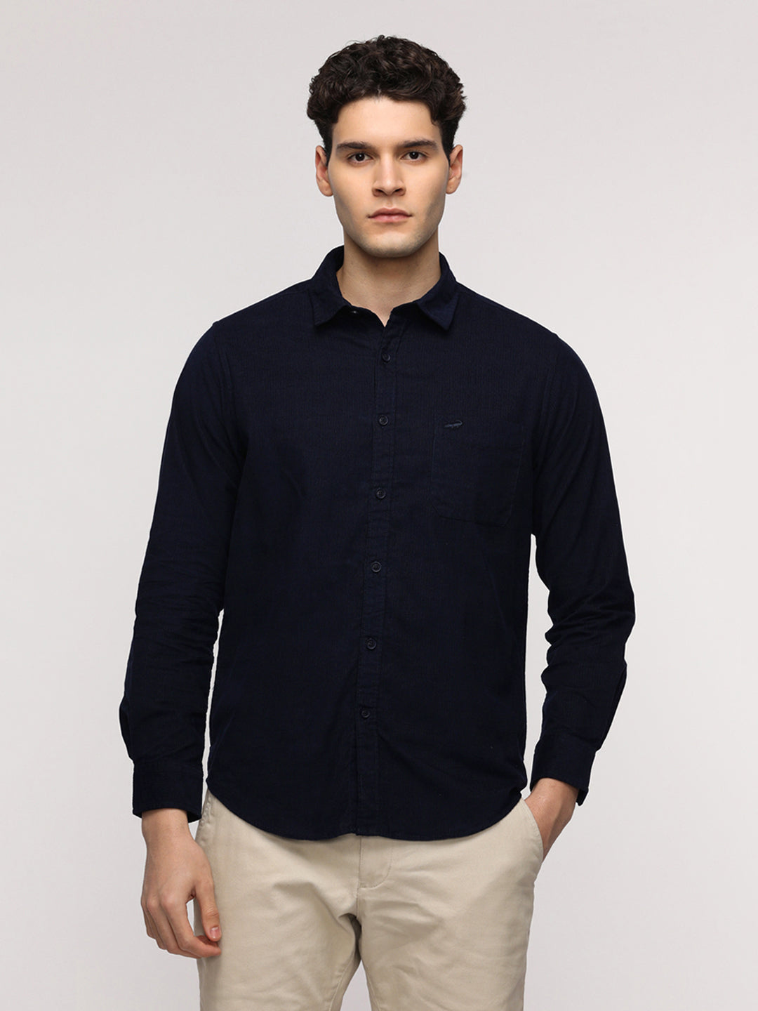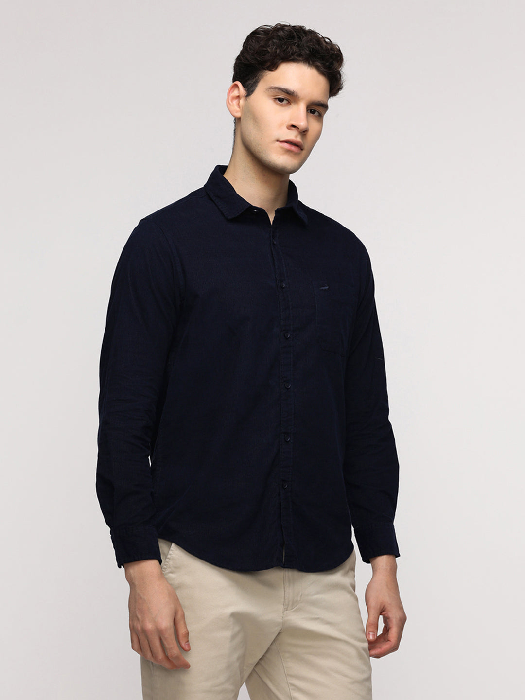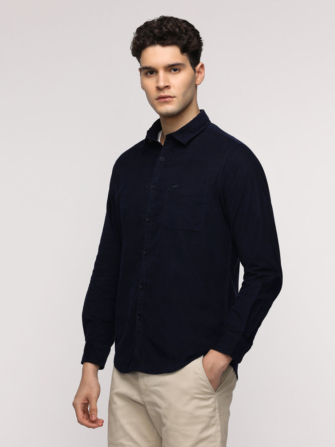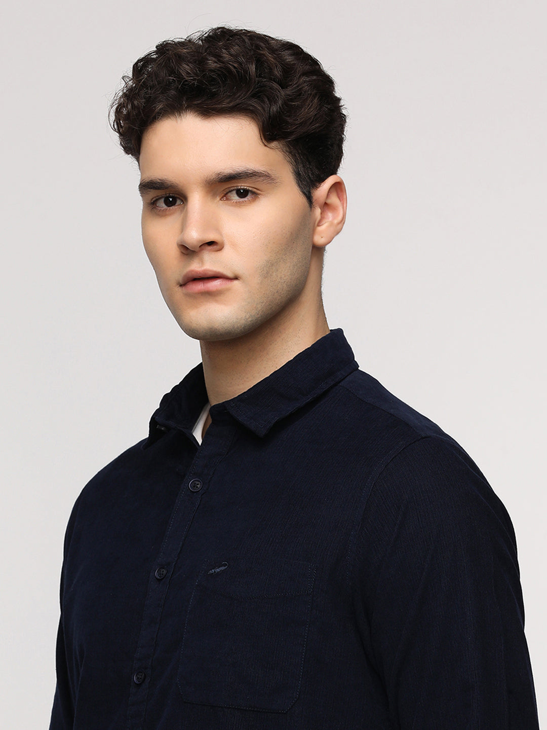 Full Sleeve Sport Blue Shirt in Corduroy for Stylish Comfort