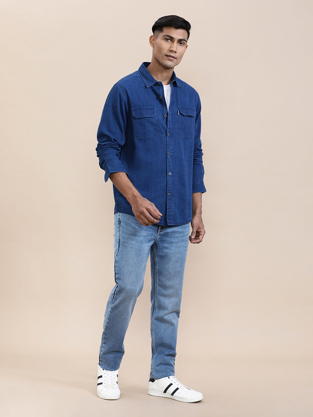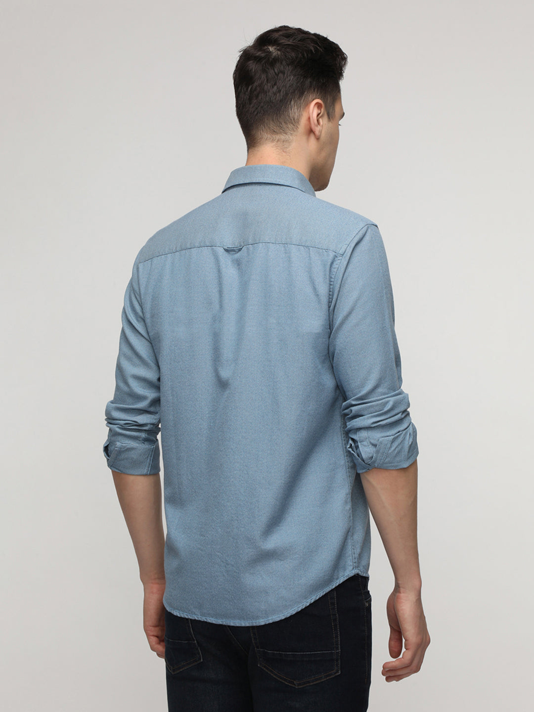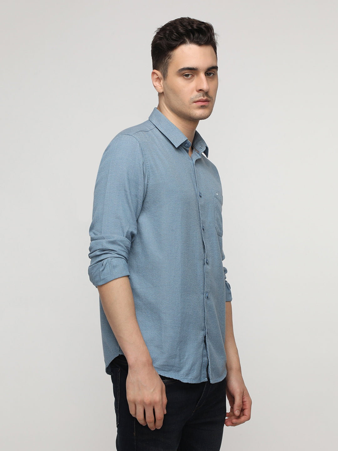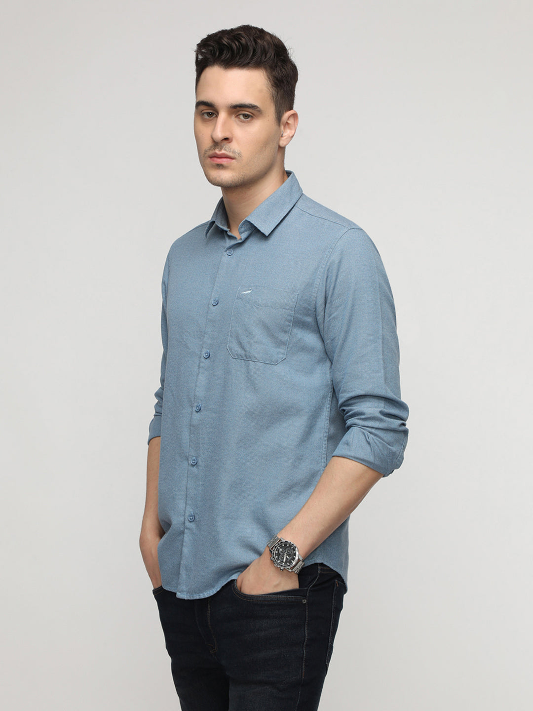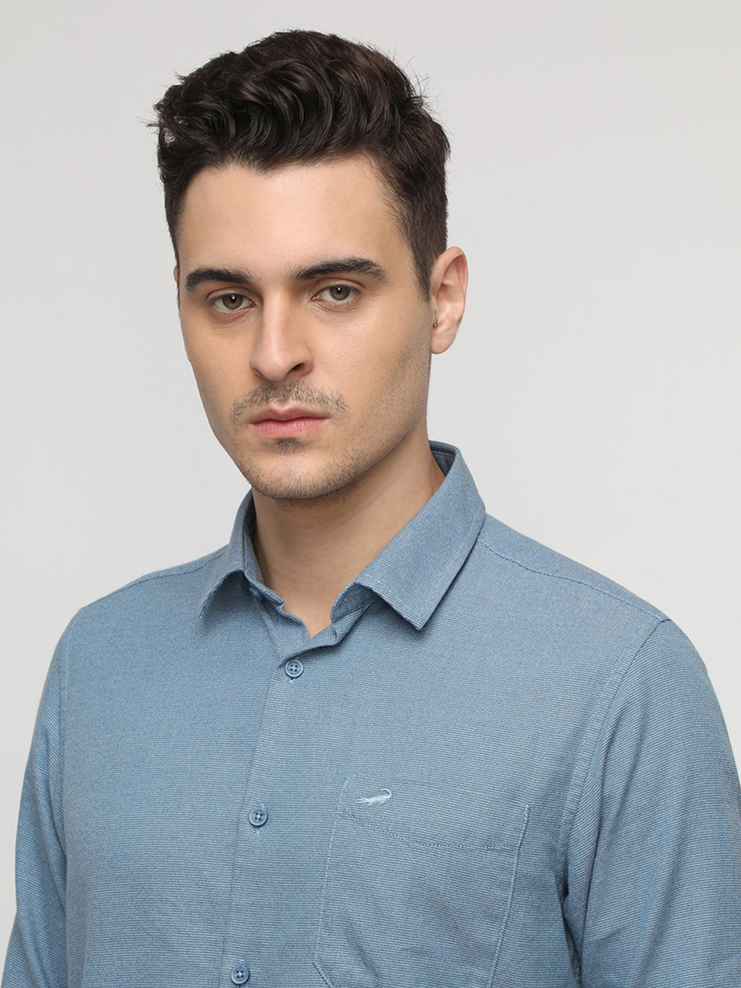 Full Sleeve Sport Blue Shirt in Corduroy for Stylish Comfort