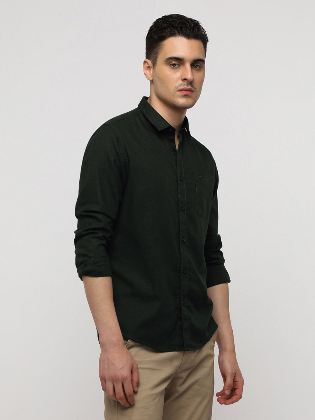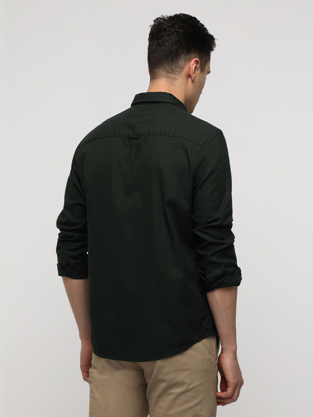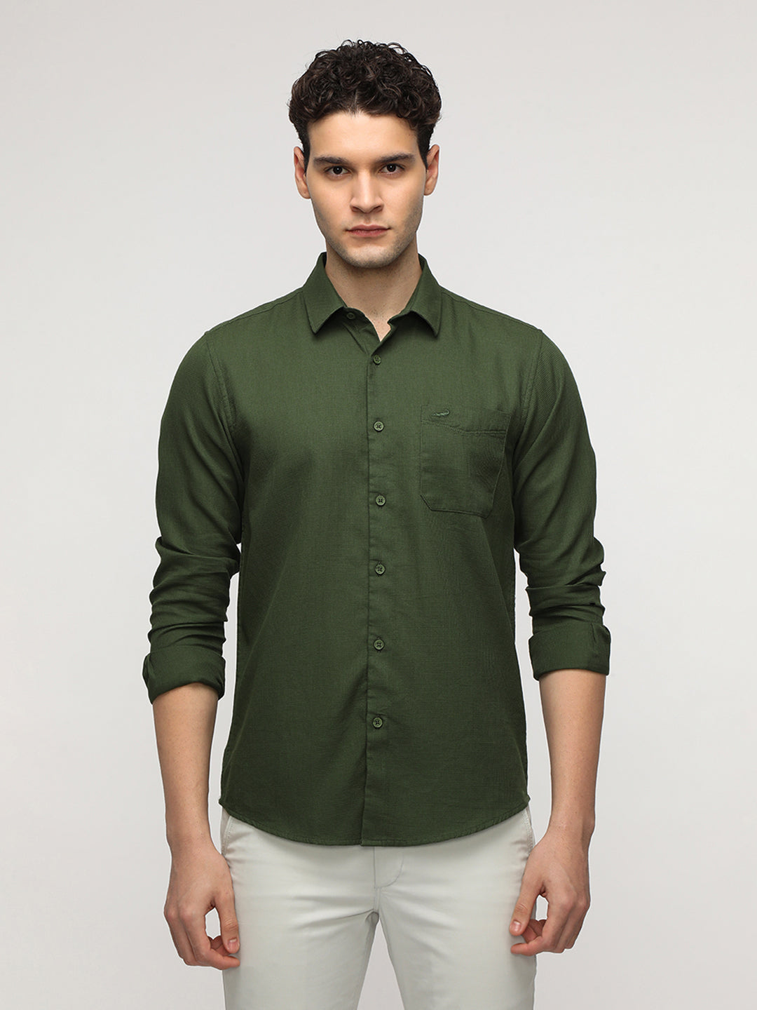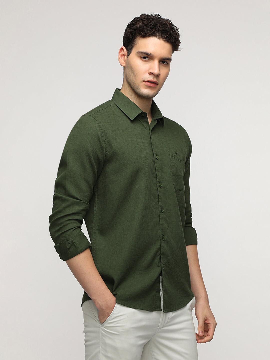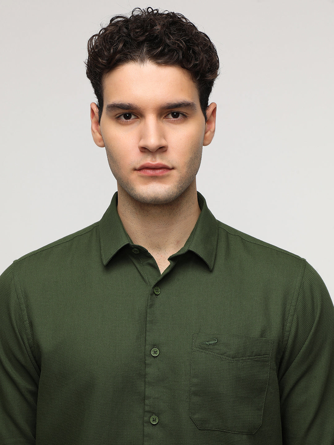 Textured Cozy Feel Cotton Green Comfort Fit Shirts