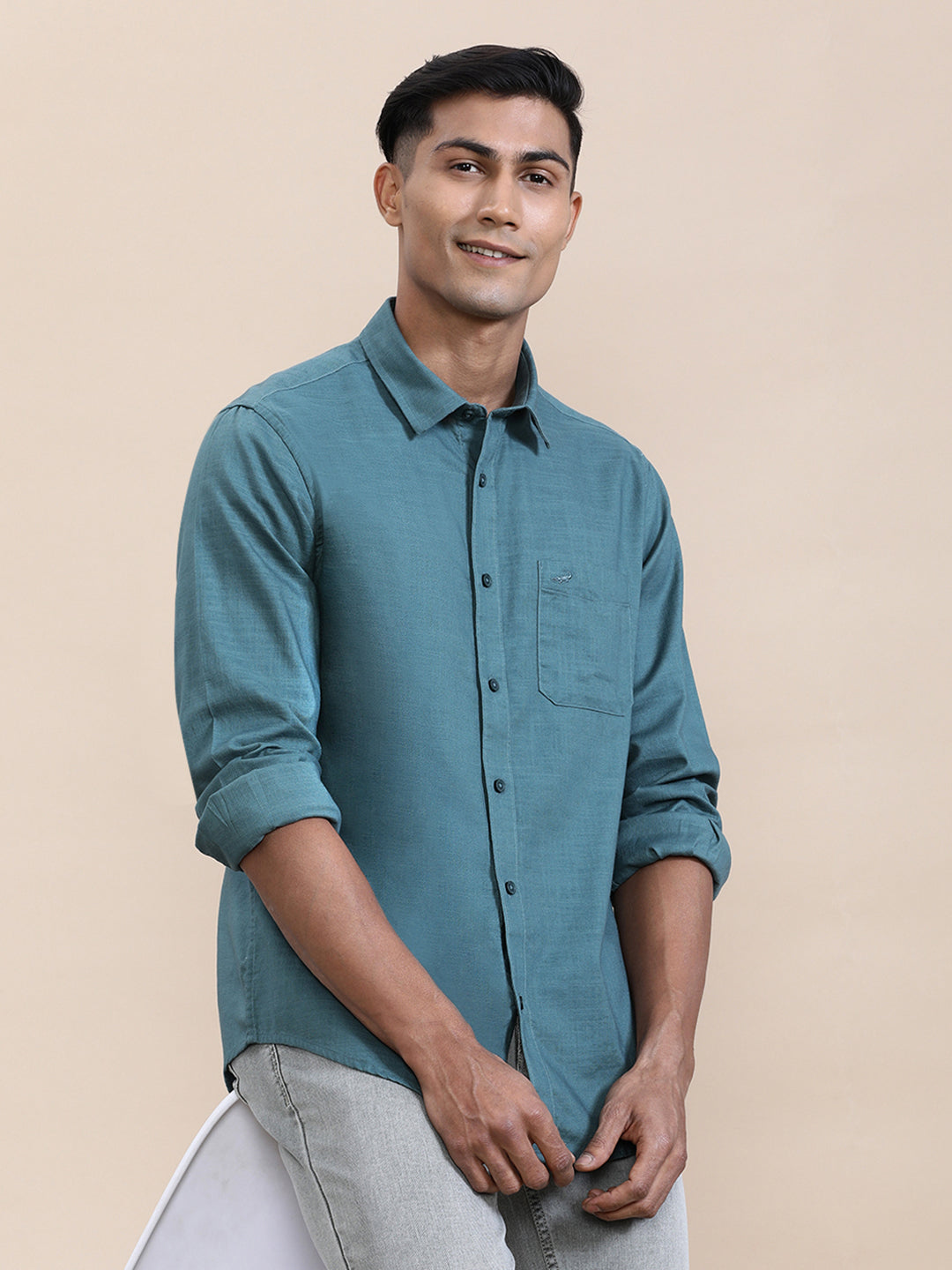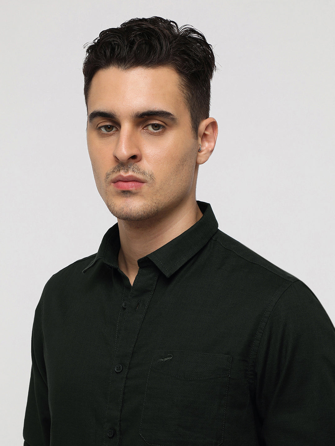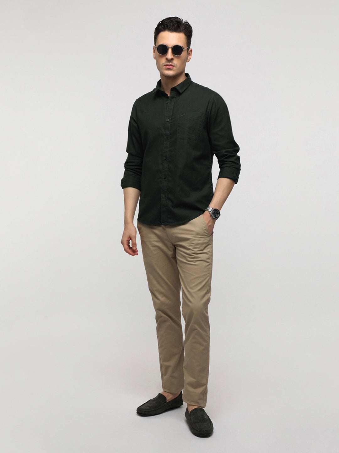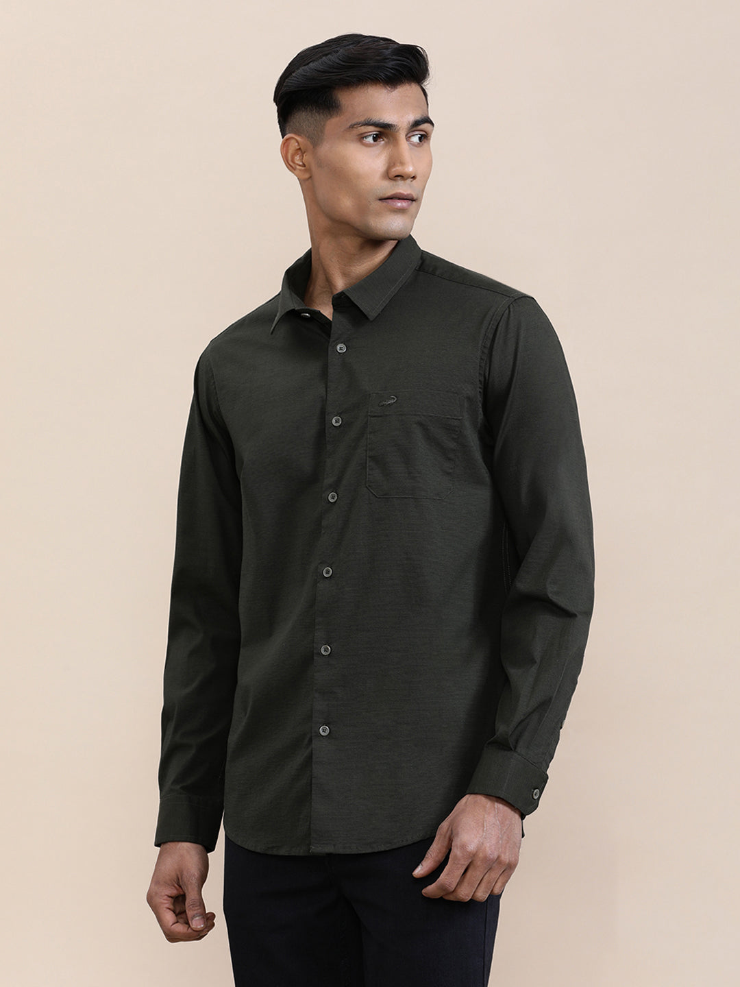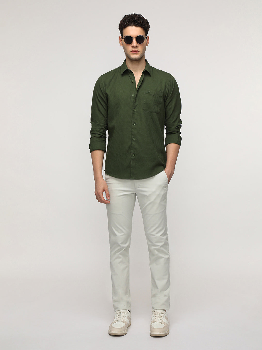 Textured Cozy Feel Cotton Green Comfort Fit Shirts