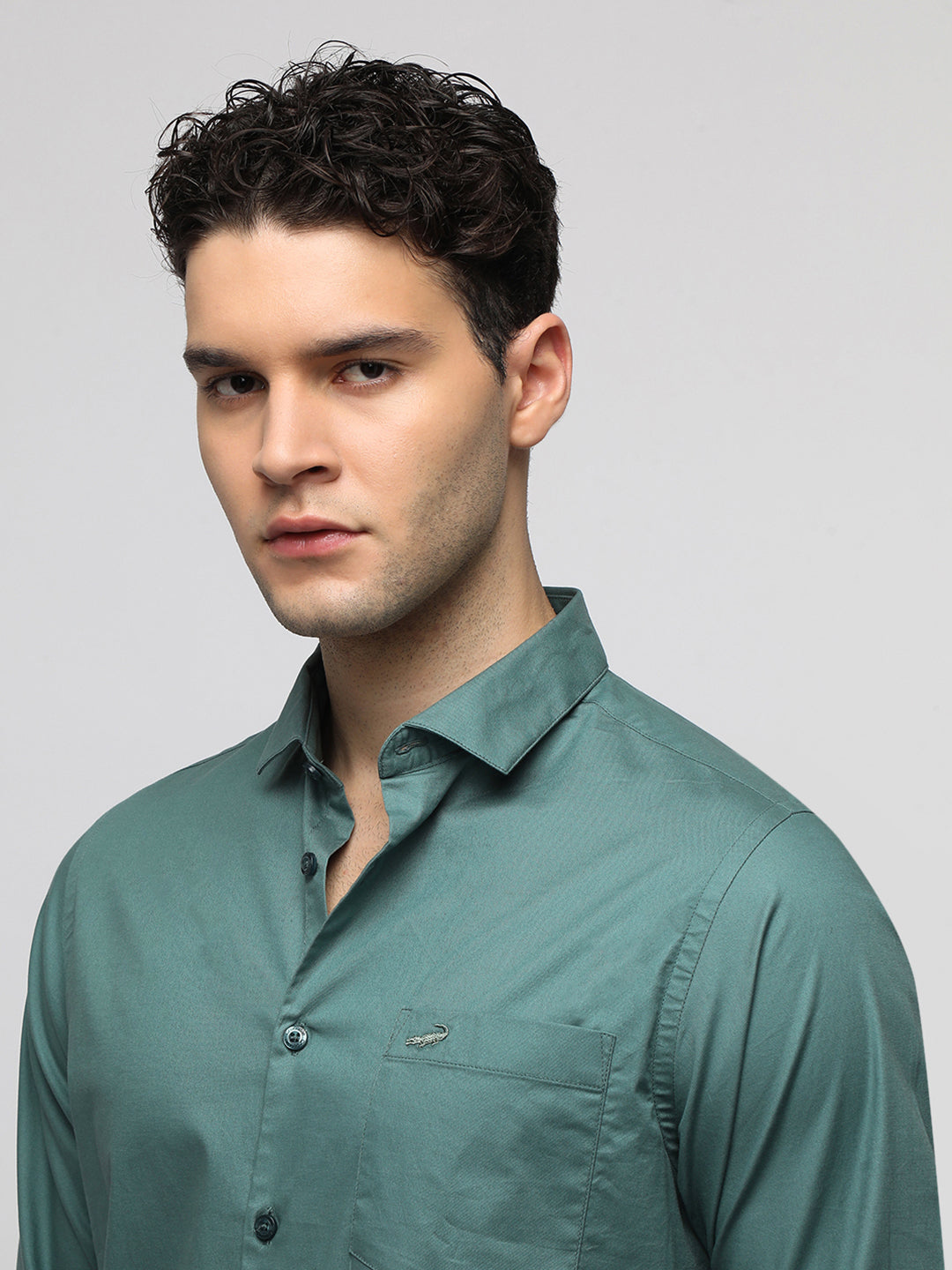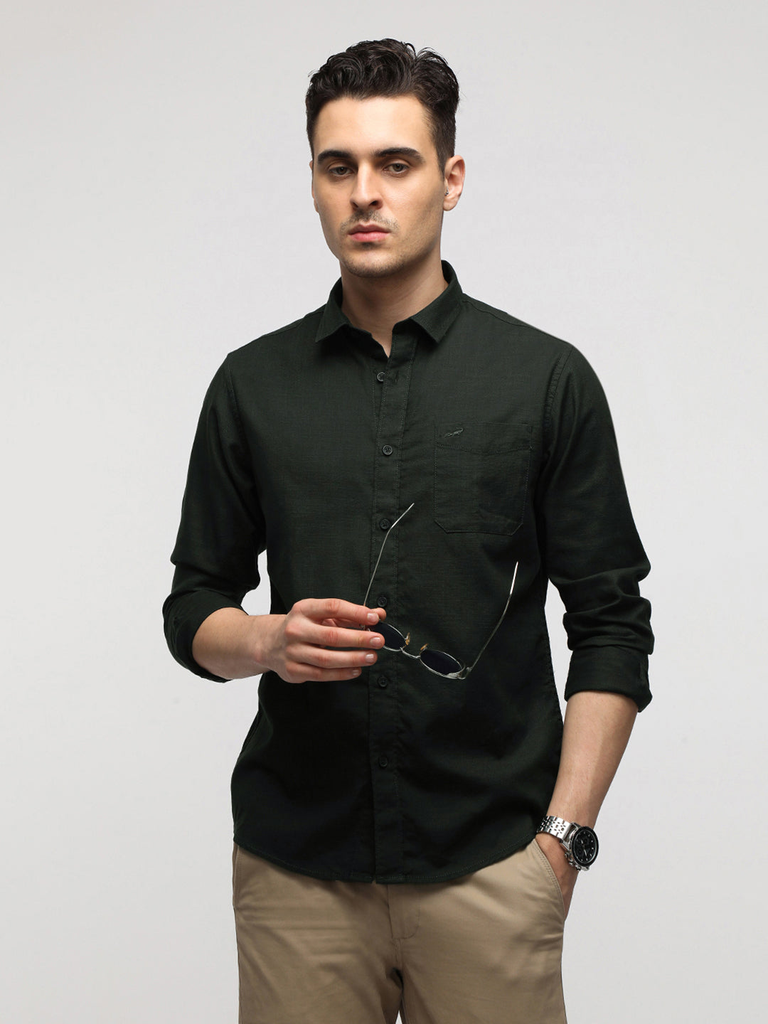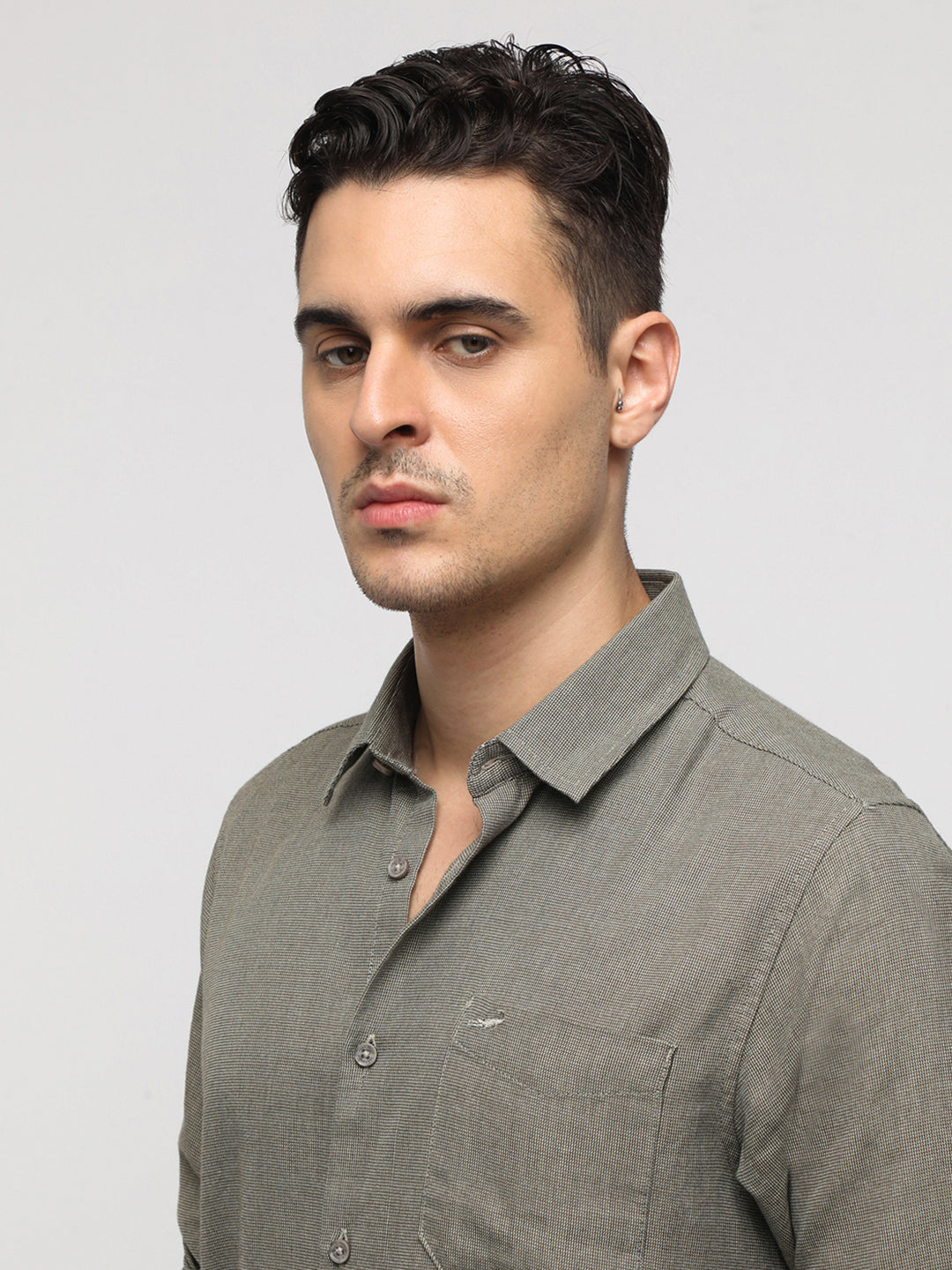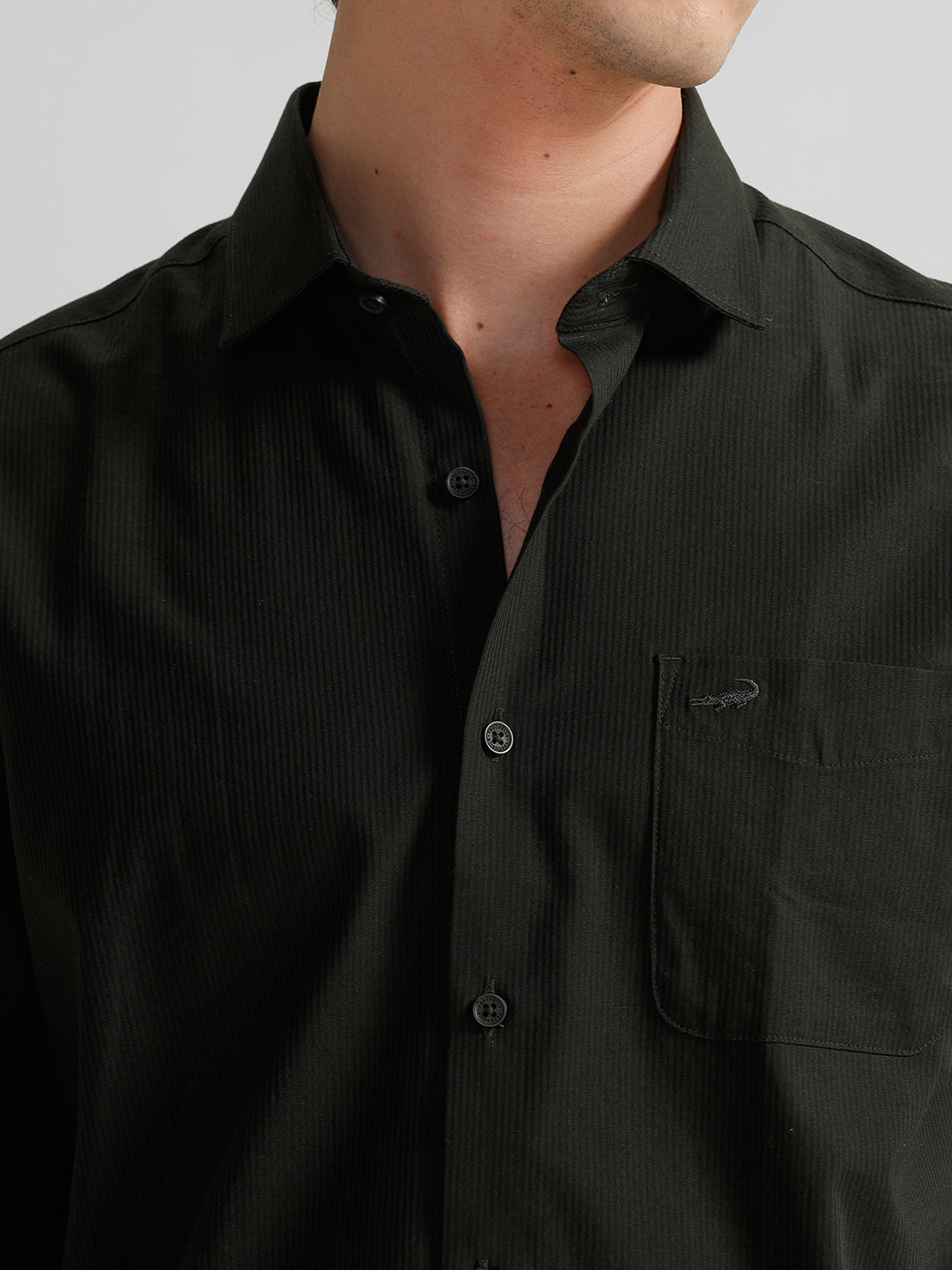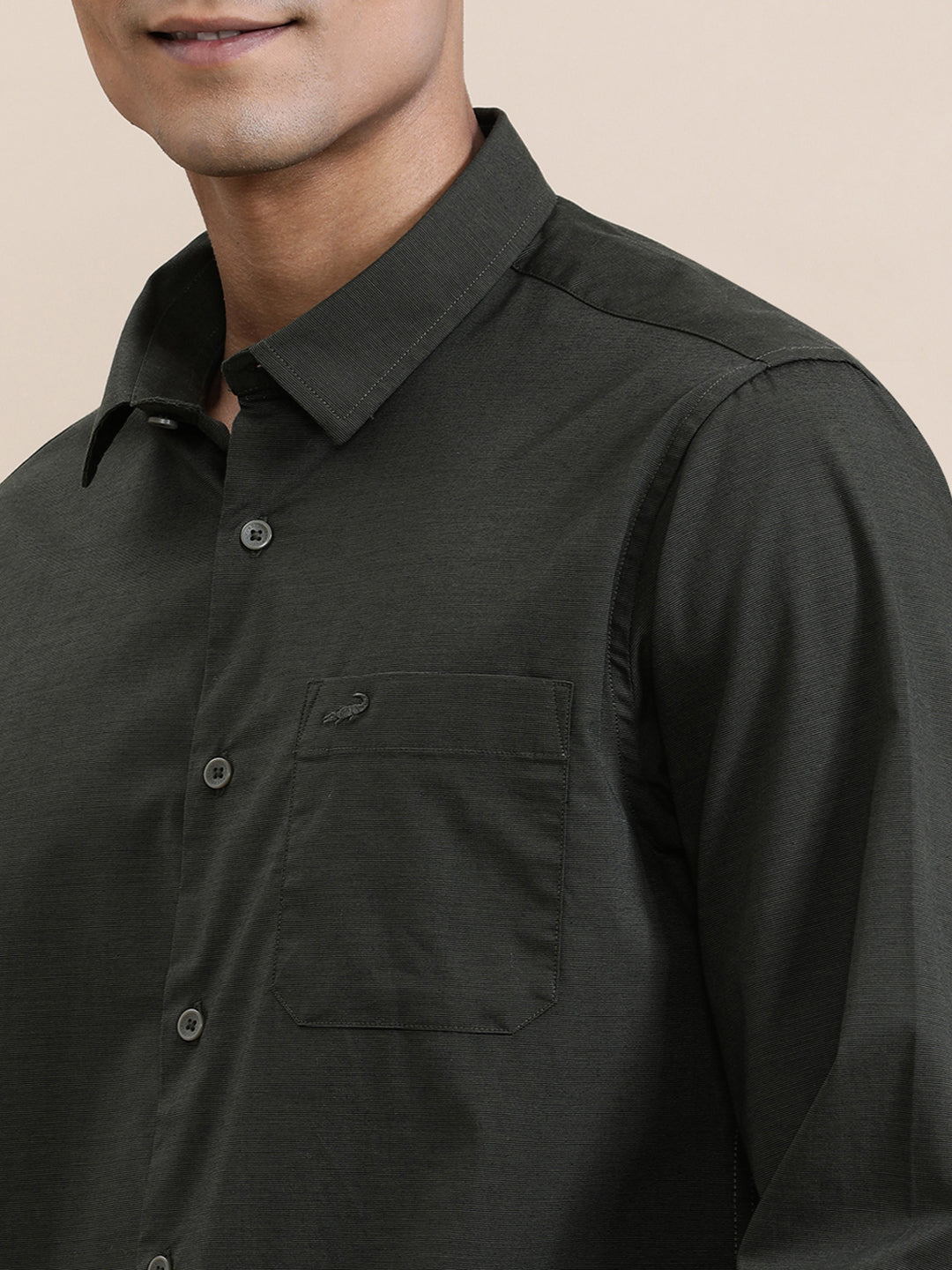 Textured Cozy Feel Cotton Green Comfort Fit Shirts