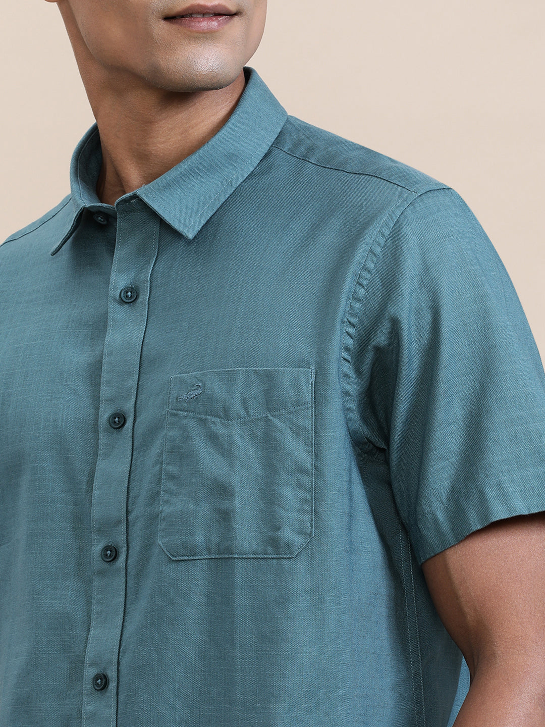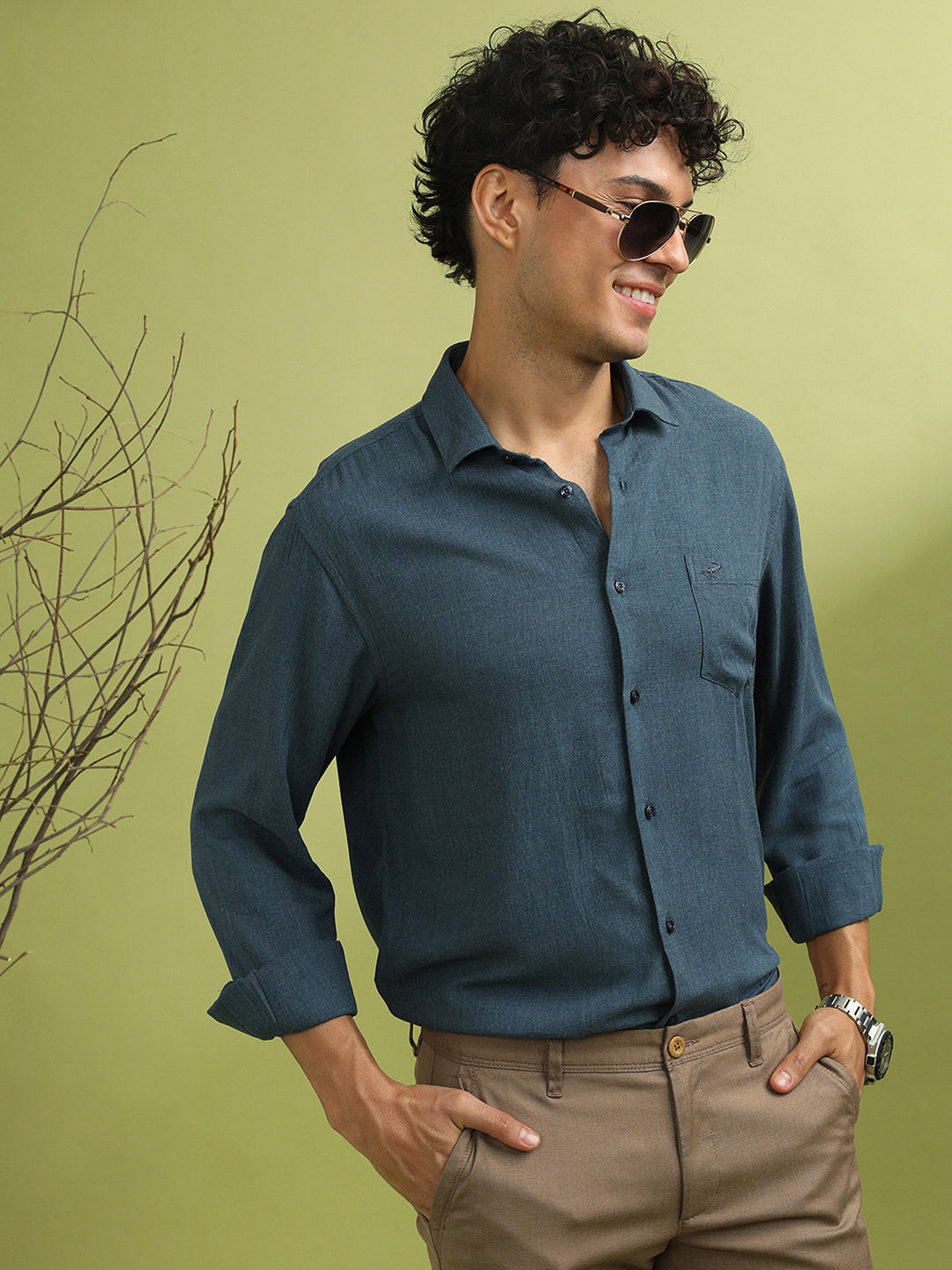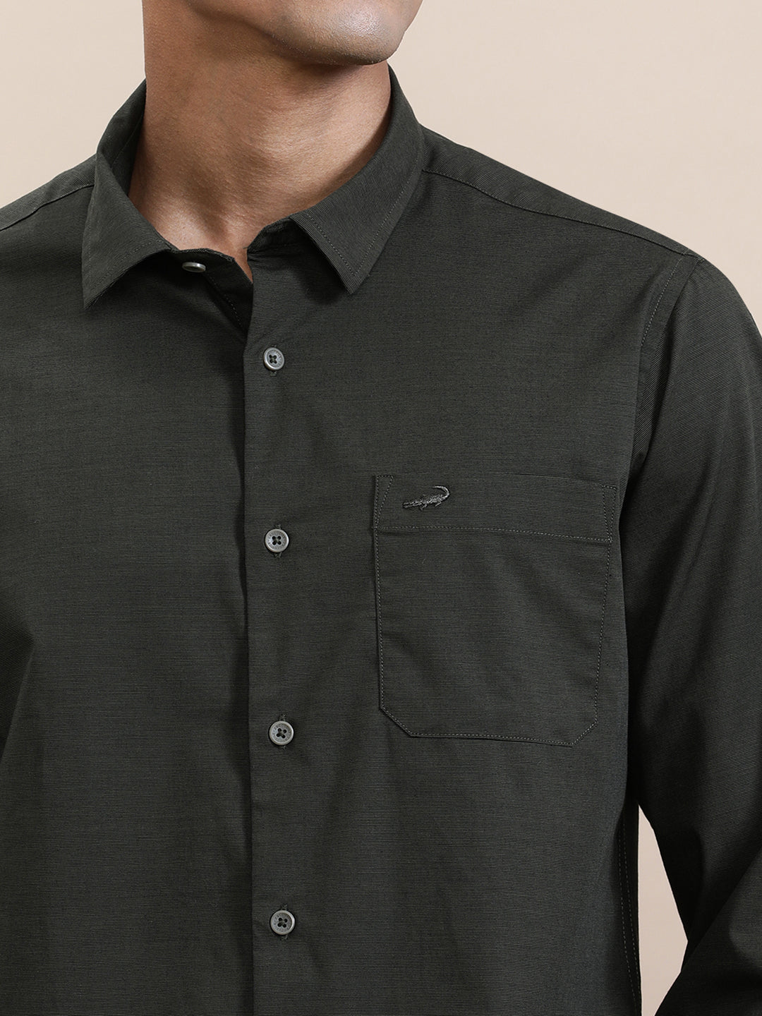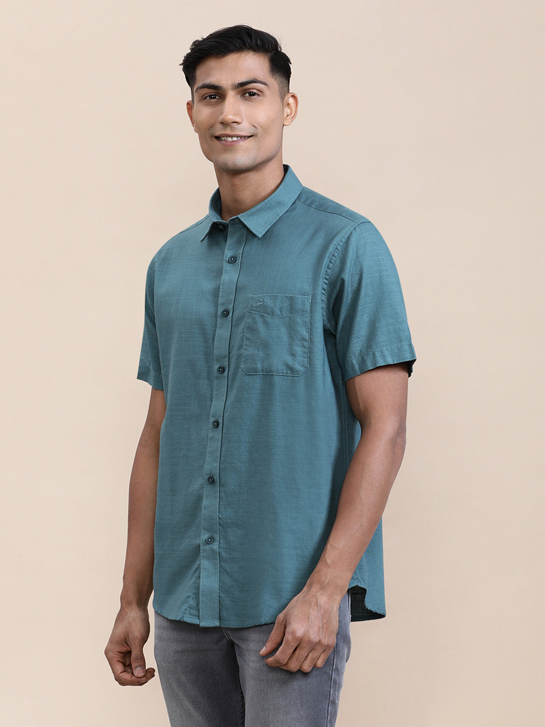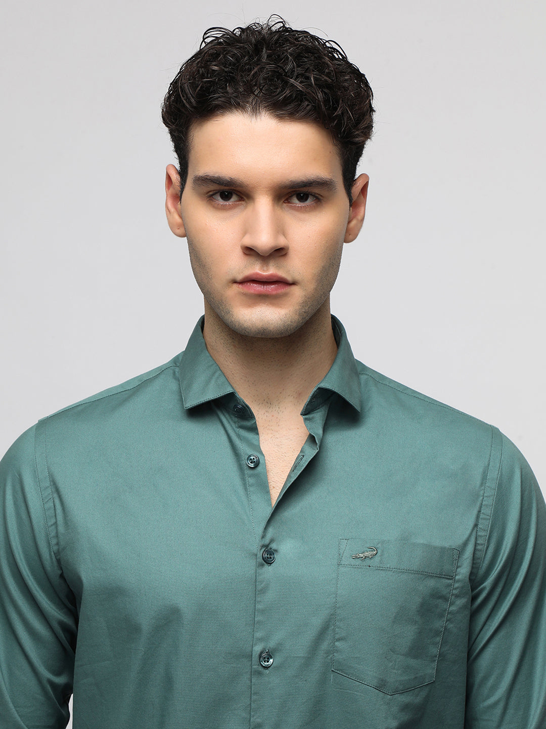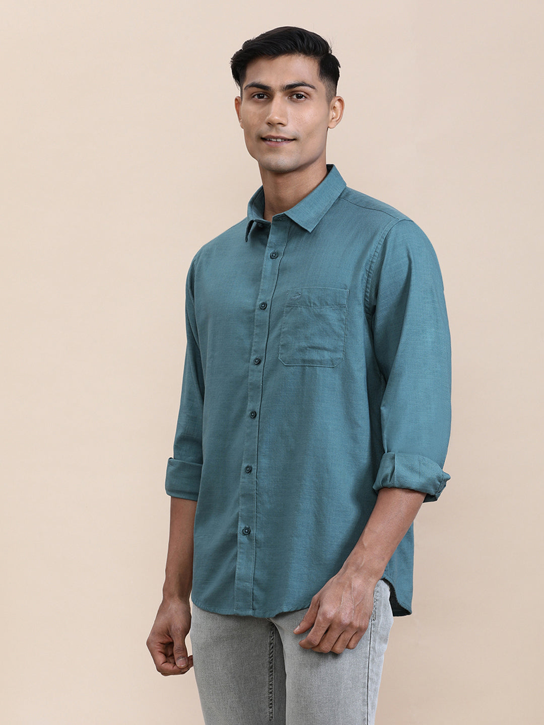 Textured Cozy Feel Cotton Green Comfort Fit Shirts