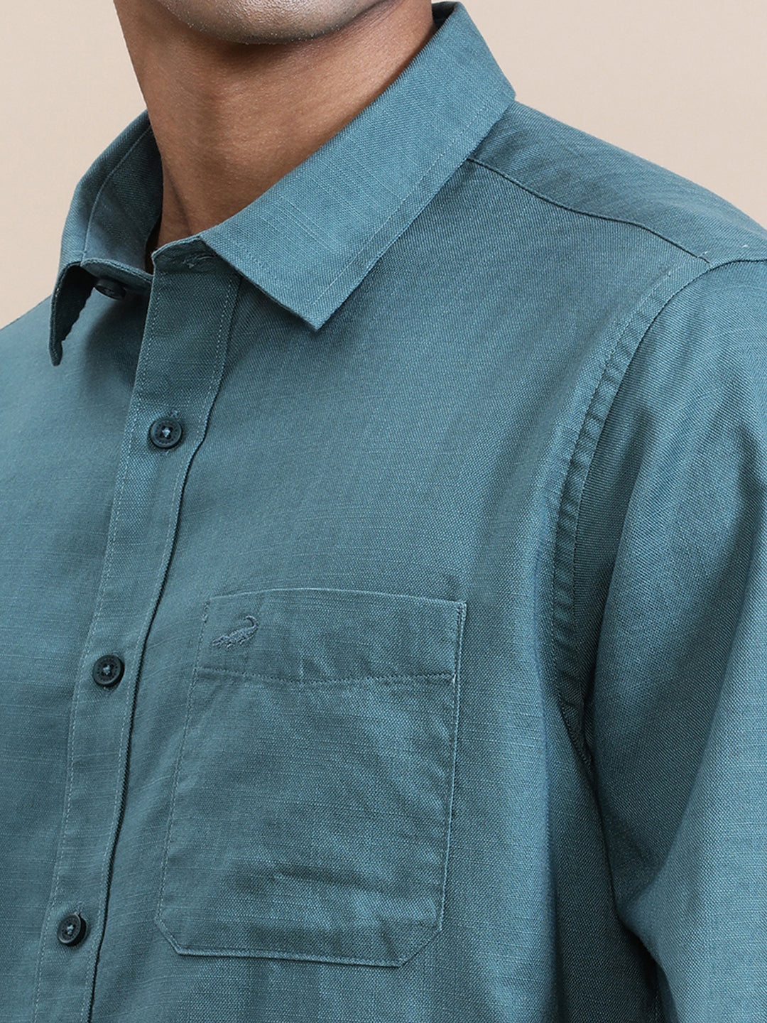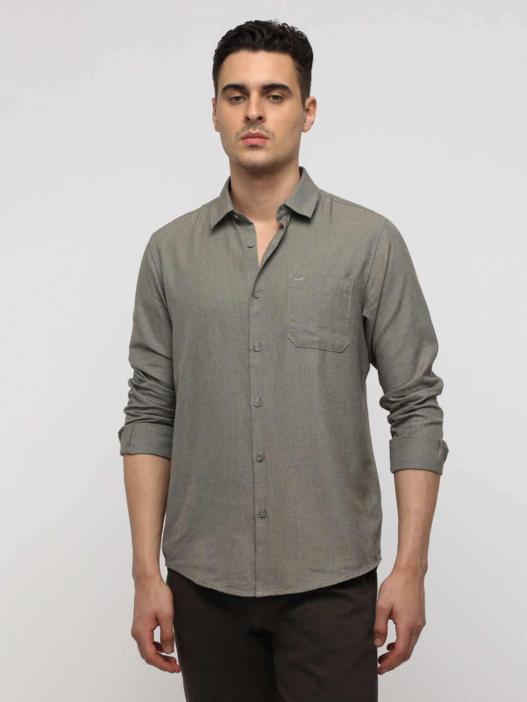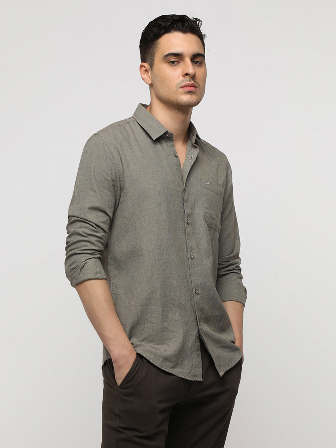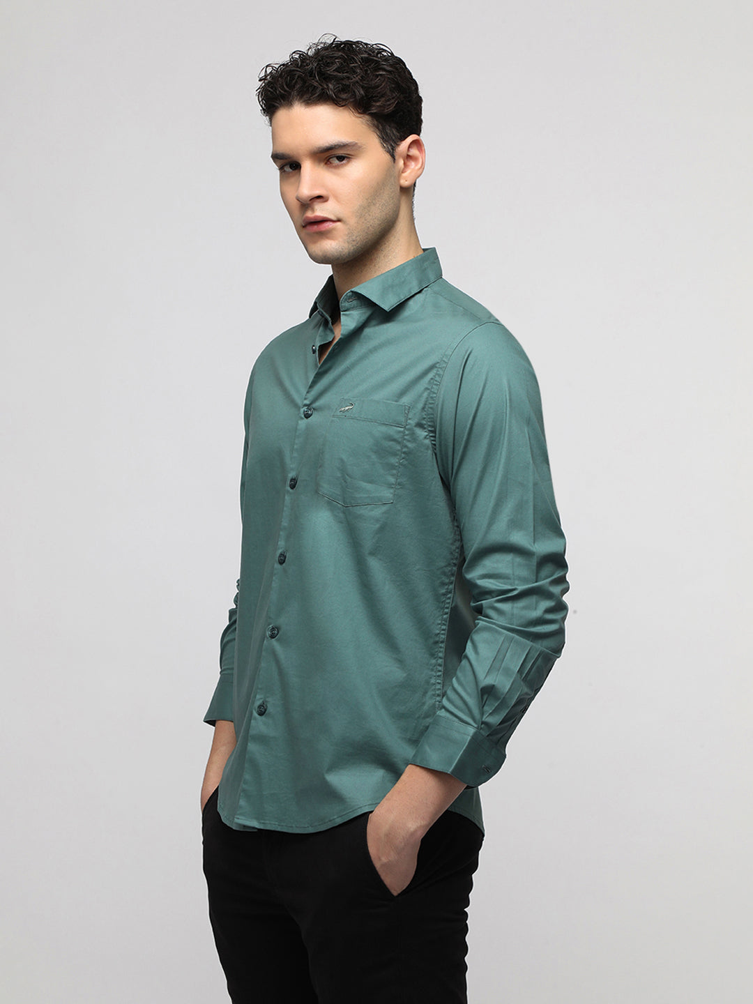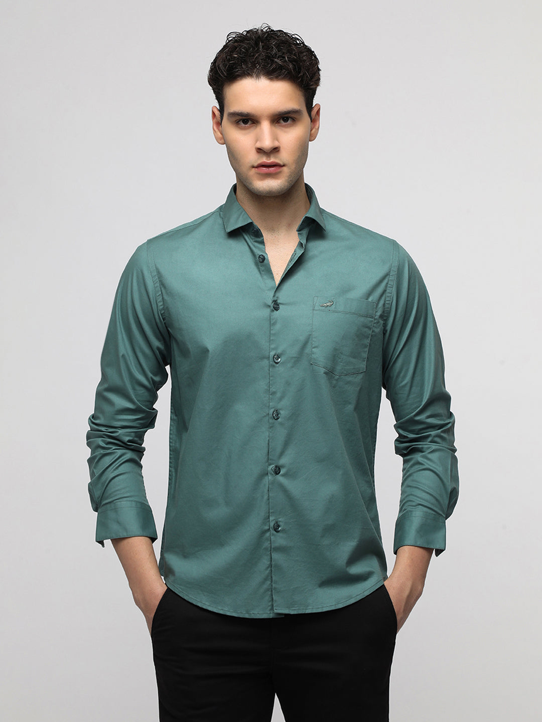 Textured Cozy Feel Cotton Green Comfort Fit Shirts