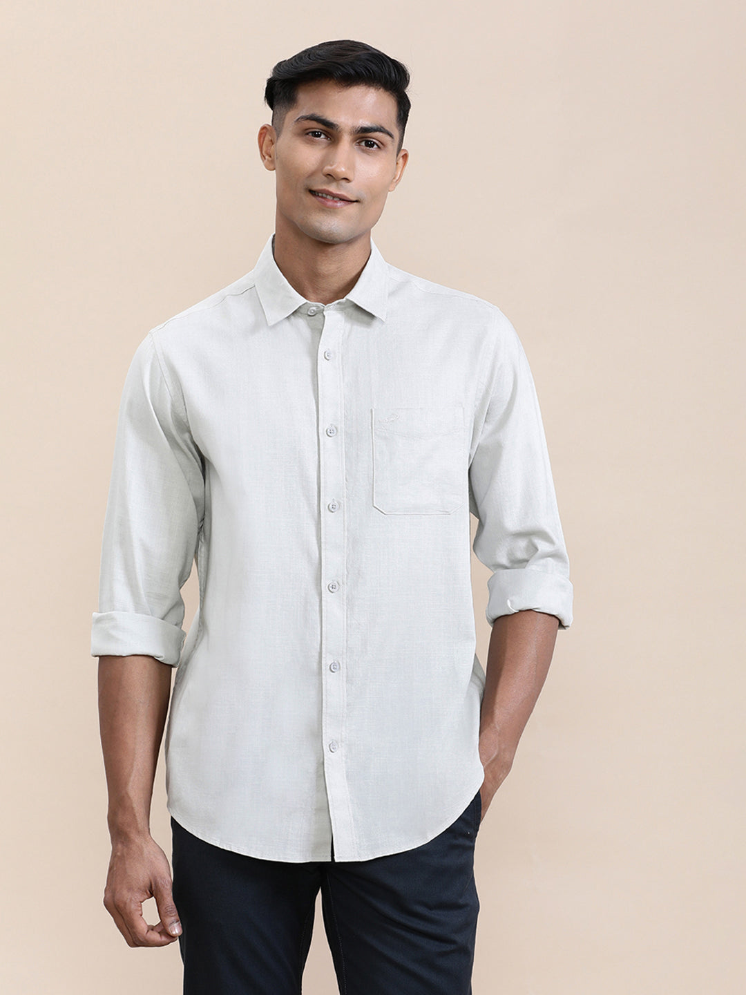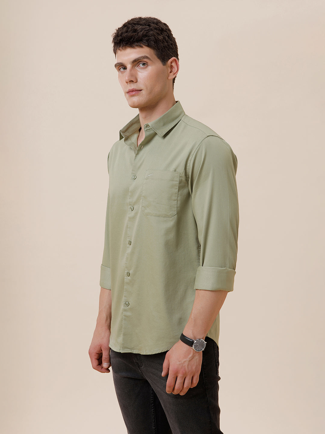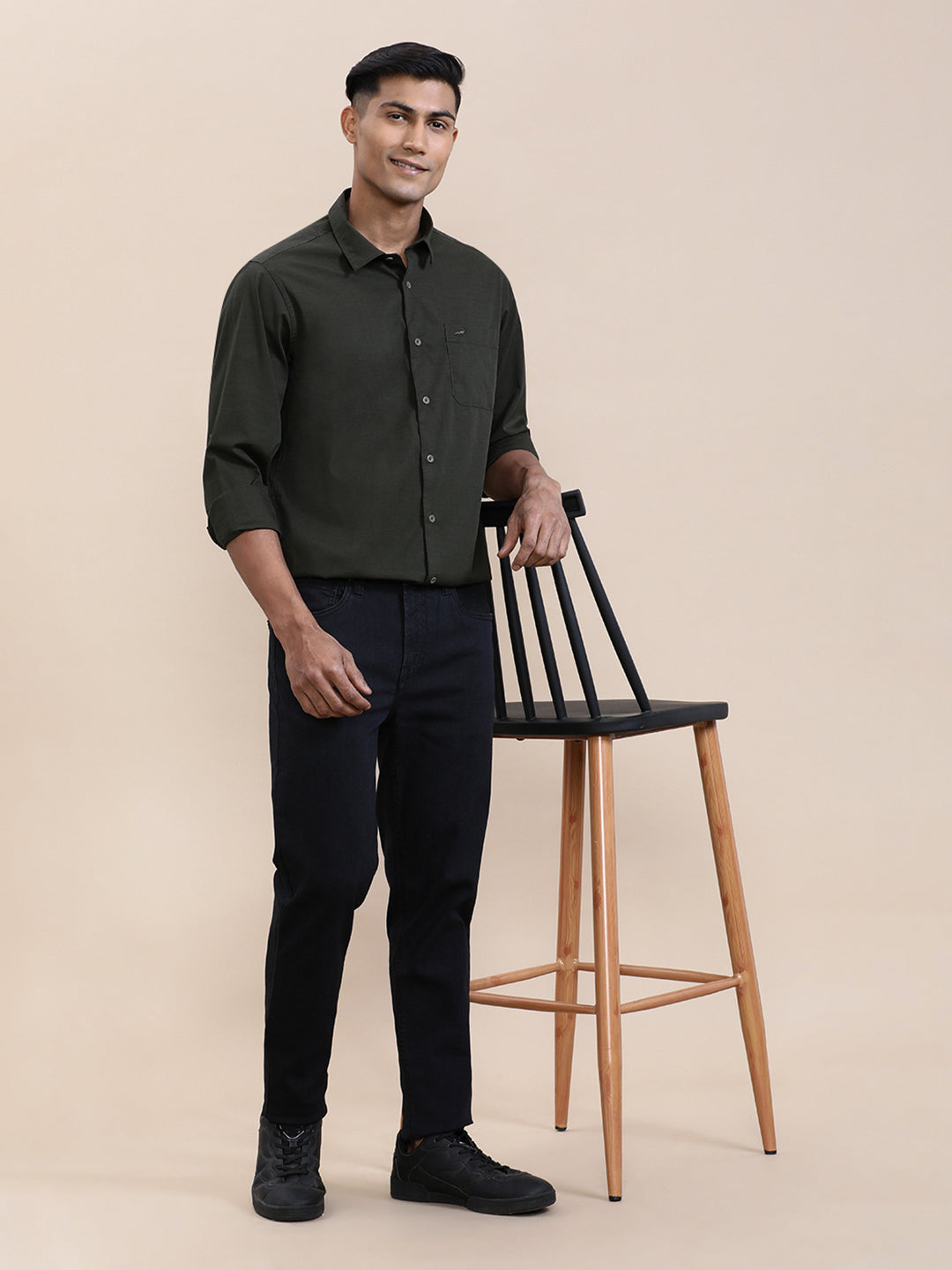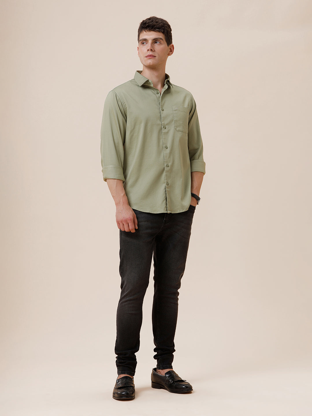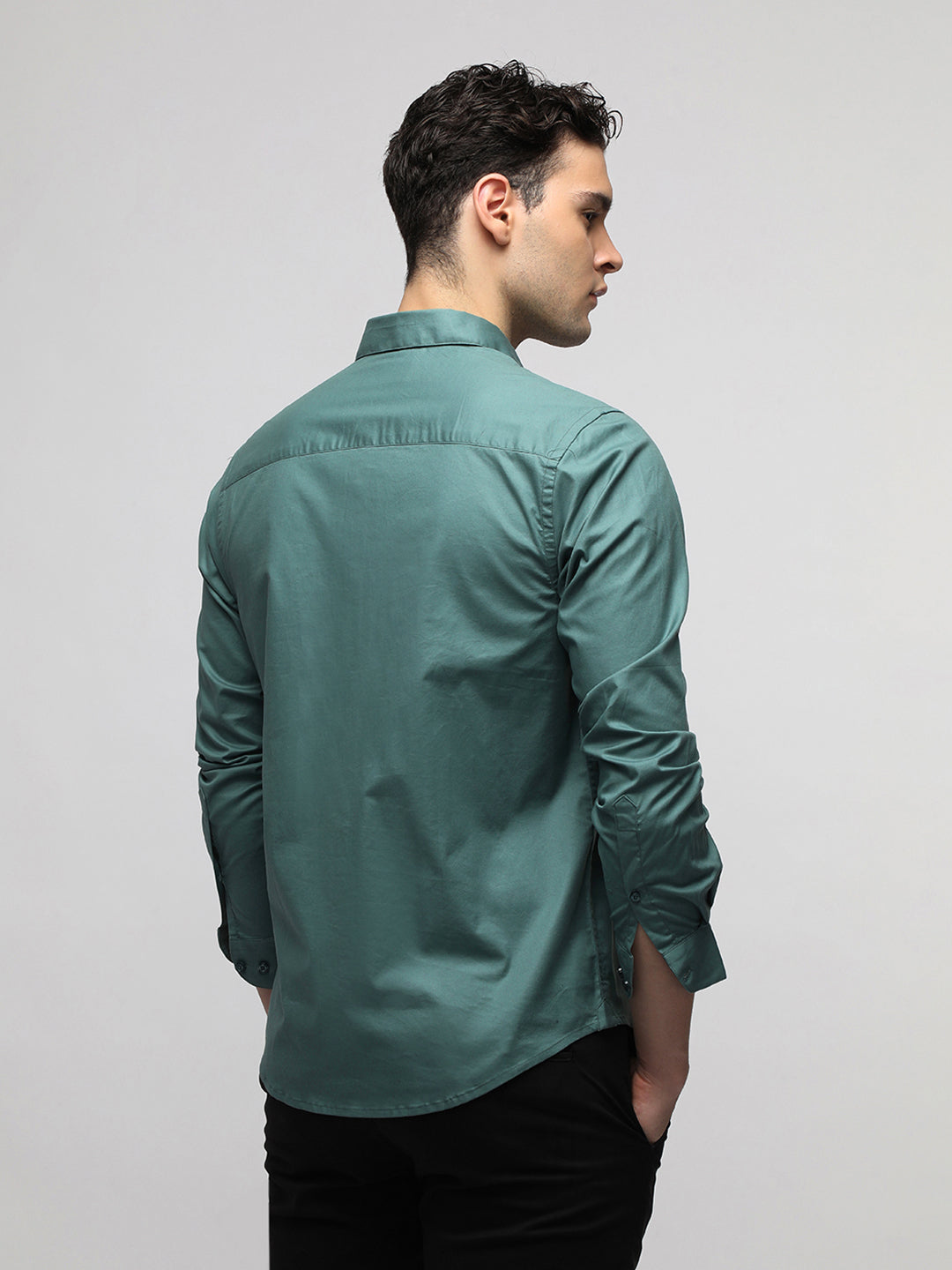 Textured Cozy Feel Cotton Green Comfort Fit Shirts