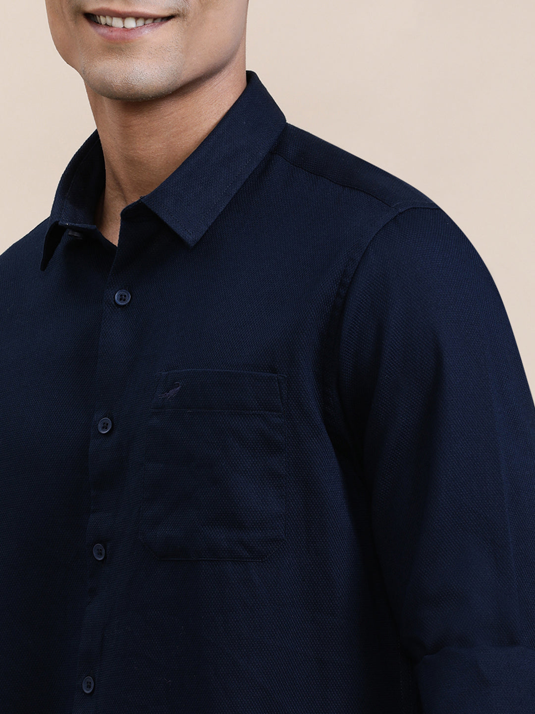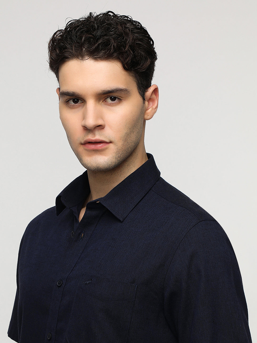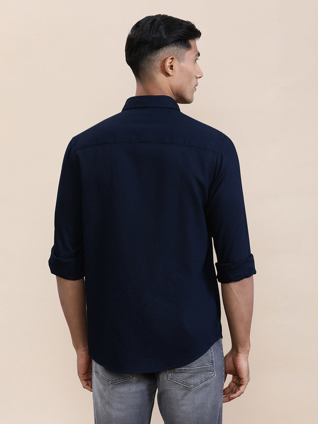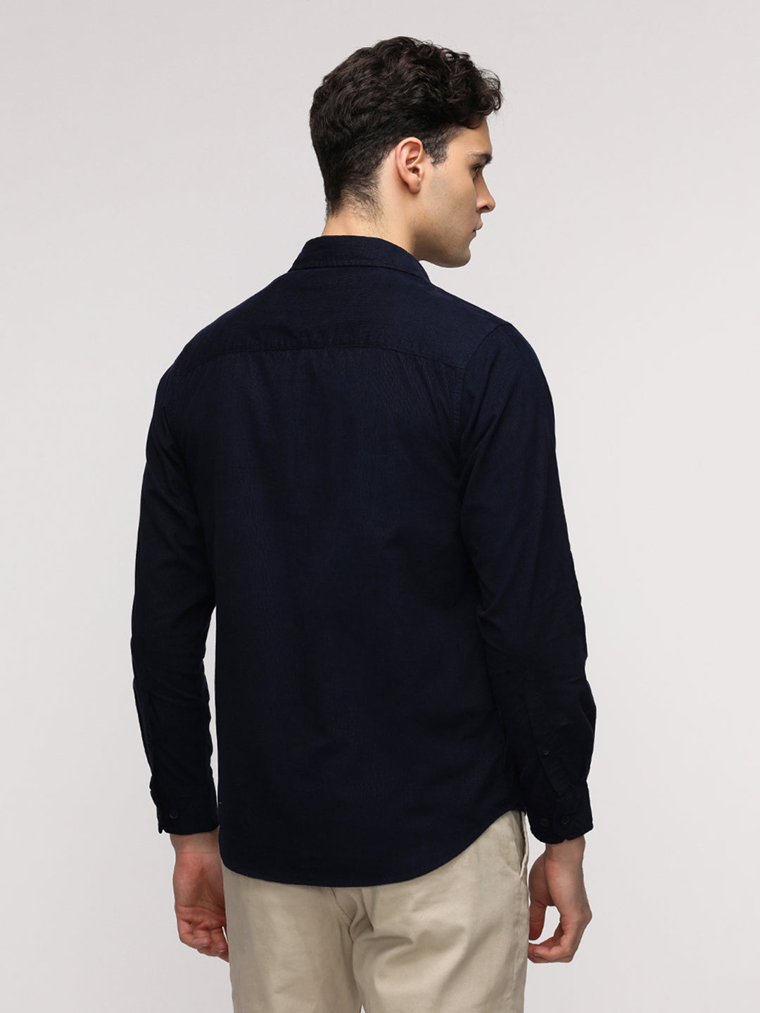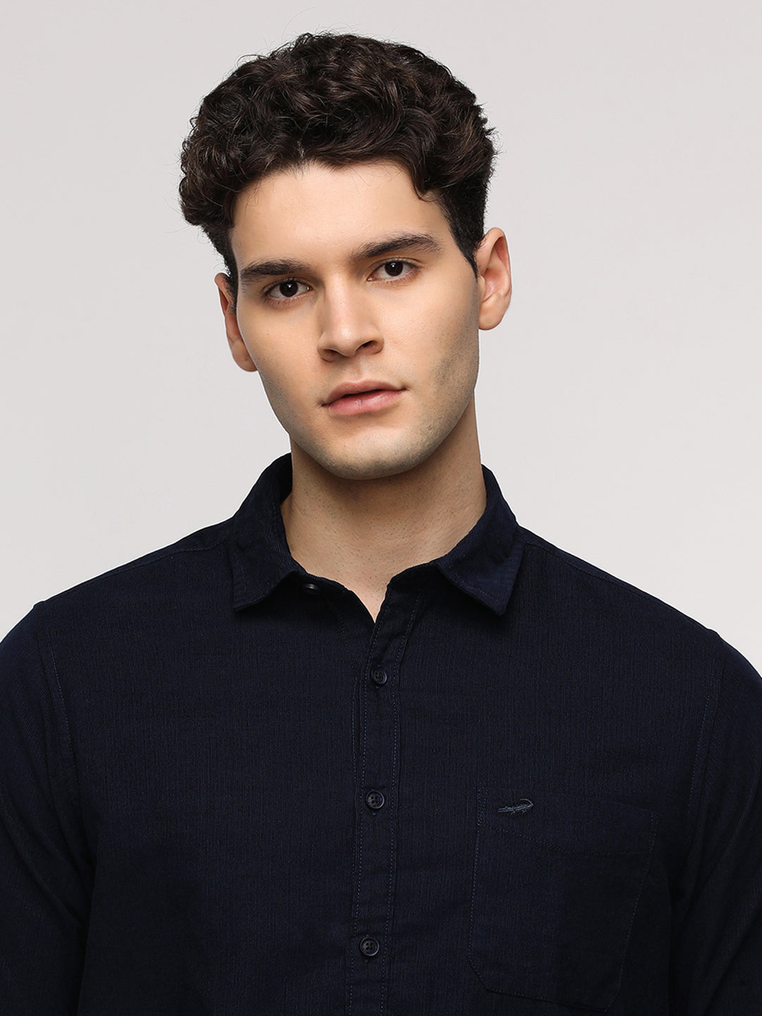 Navy Utility Style Cotton Textured Comfort Fit Shirts