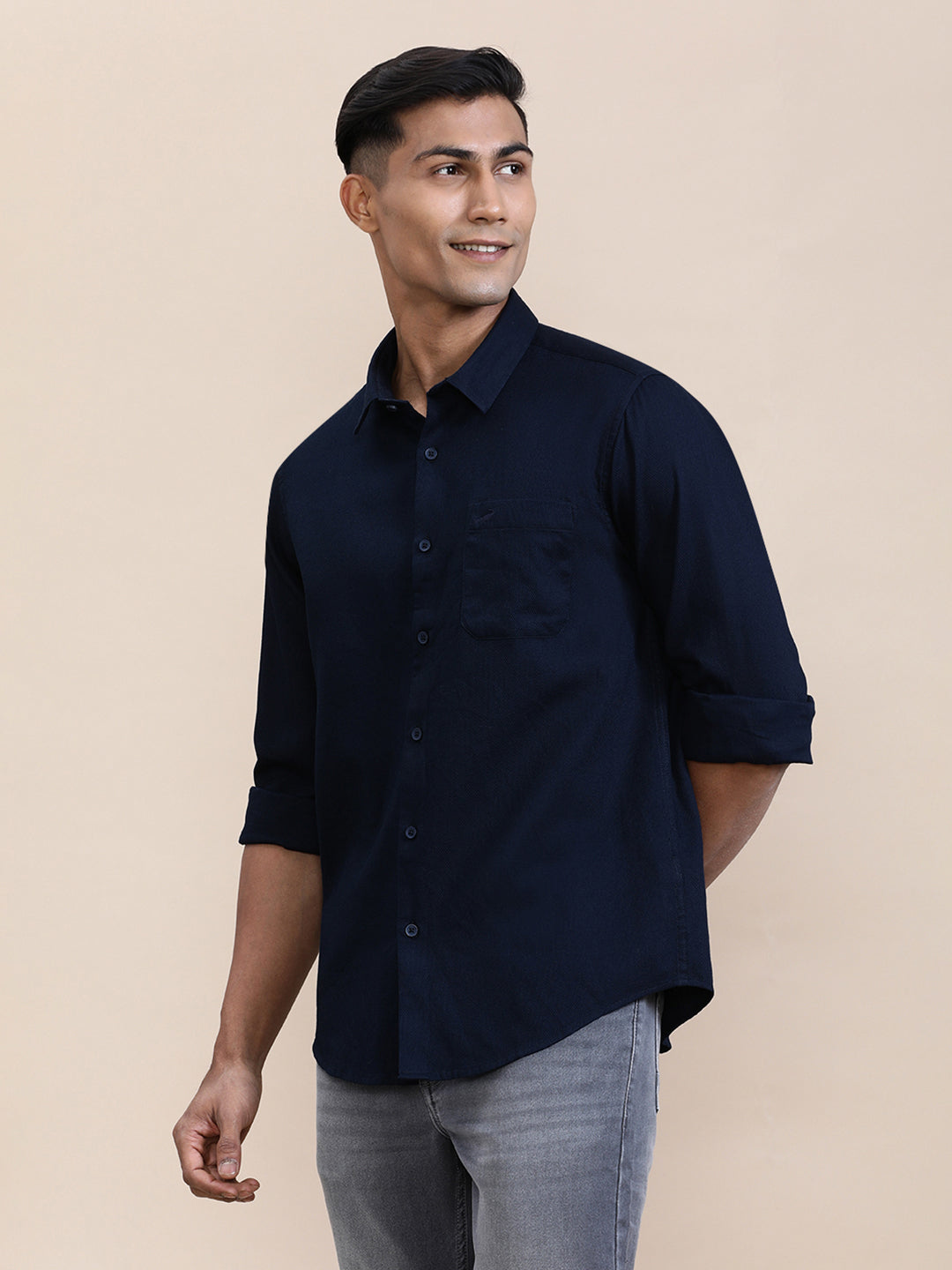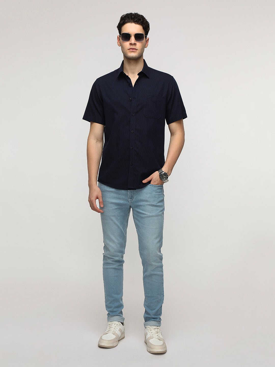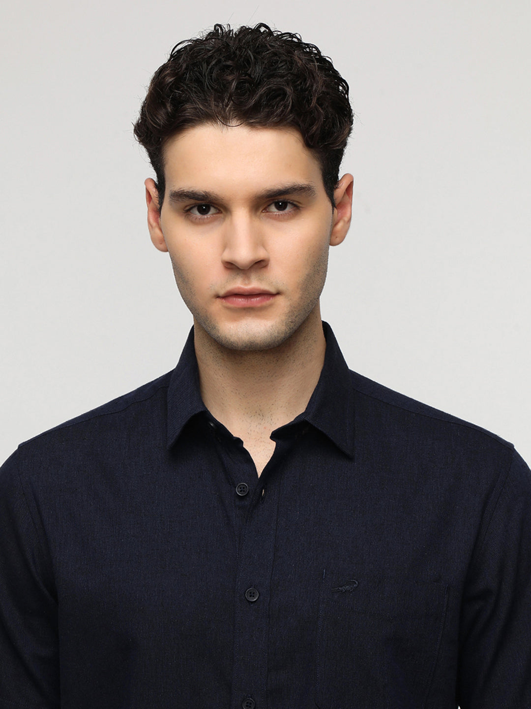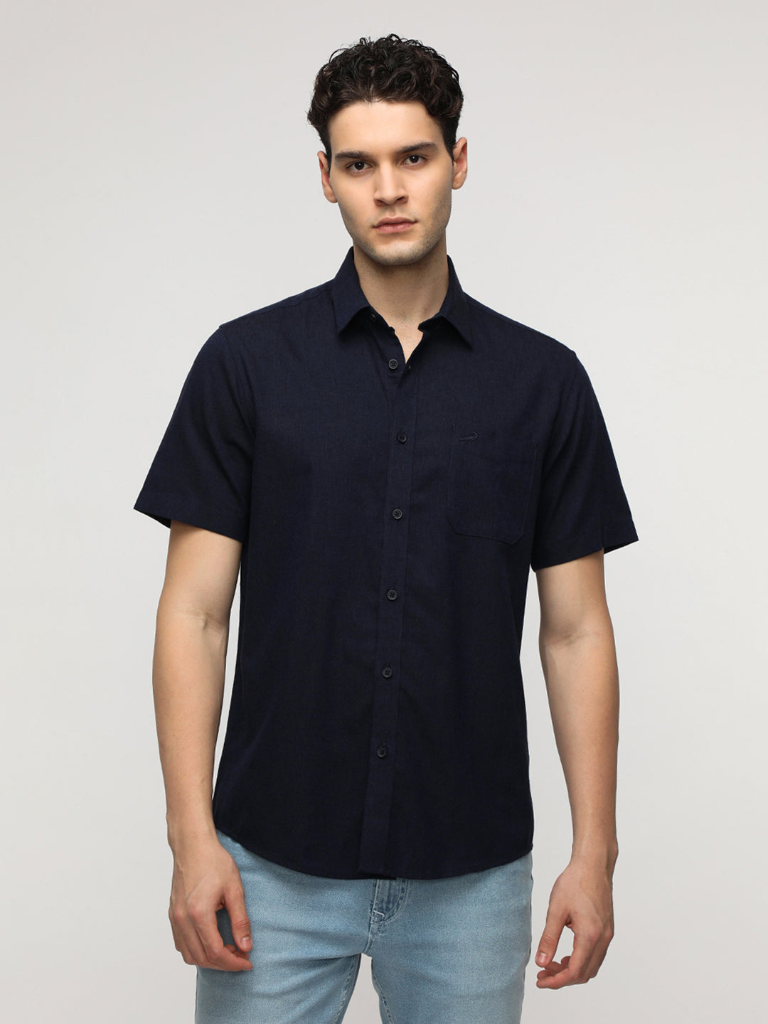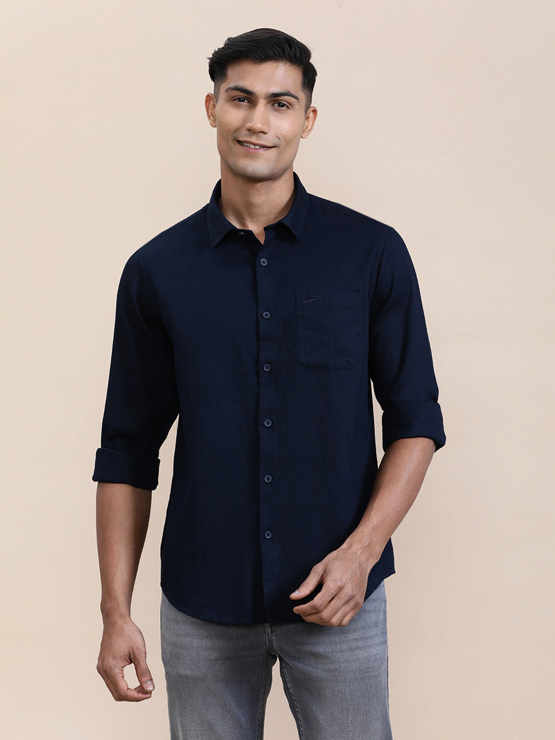 Navy Utility Style Cotton Textured Comfort Fit Shirts